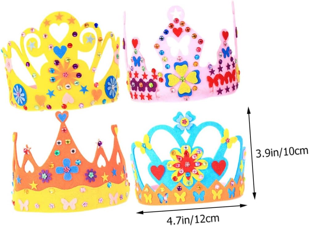 Pacchetti 4 x kit cappello corona fai da te Caratteristiche - Informazioni sul prodotto: Corona cappello compleanno - Dimensioni: 12,00 x 12,00 x 10,00 cm/4,72 x 4,72 x 3,93 Corona compleanno carta - Materiale: tessuto non tessuto per cappello compleanno bambini - Colore: Colori fai da te Corona per bambini - Può essere utilizzato anche come delicato accessorio per capelli per alcuni cosplay per soddisfare le esigenze di gioco di ruolo dei tuoi bambini. Cappelli di compleanno fai da te. - Questo kit per realizzare corone è una corona adorabile e carina per feste di compleanno, bomboniere, decorazioni, usa corone di compleanno. - Il kit per realizzare corone fai-da-te è un accessorio per capelli fai-da-te perfetto per matrimoni, docce, baby shower, Natale, fotografie di famiglia, ecc. Corone di carta. - Realizzato in materiale sicuro e confortevole, può rimanere stabile senza disagio. Materiali fai da te per cappelli per bambini. Descrizione della merce Kit corona per bambini fai da te Perfetto da indossare. Cappello con corone di carta Realizzato con buona fattura, non cadrà facilmente e non è troppo stretto e troppo largo. Corona di carta di compleanno per bambini Puoi completare il look del compleanno del tuo bambino con questa graziosa corona con intestazione. Kit corona di compleanno fai-da-te Questa corona di compleanno fai-da-te è realizzata in buon tessuto non tessuto, sicura e comoda da indossare a lungo.