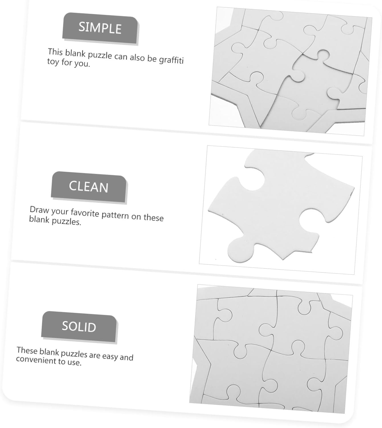 Tavola vuota: presenta una dimensione, offrendo ampio spazio per l'espressione creativa, puoi usare facilmente questi puzzle vuoti, puzzle vuoti, puzzle vuoti fai da te Utilizzo versatile: ideale per casa, scuola o viaggi, offre un intrattenimento per i nell'uso quotidiano, oggetti artigianali, puzzle vuoti su cui disegnare Puzzle vuoto: ispira l'immaginazione e fornisce molti puzzle vuoti per consentire ai di creare i propri capolavori unici, puzzle vuoti craft Disegna puzzle vuoti: semplici puzzle vuoti, che consentono ai di avere abbastanza materiali per le loro creazioni, possono soddisfare i tuoi diversi mestieri fai da te utilizzando i puzzle fai da te Materiali sicuri: questi puzzle vuoti sono realizzati con materiali cartacei, garantendo la sicurezza dei , molto robusti, forniture artigianali fai da te, forniture fai da te