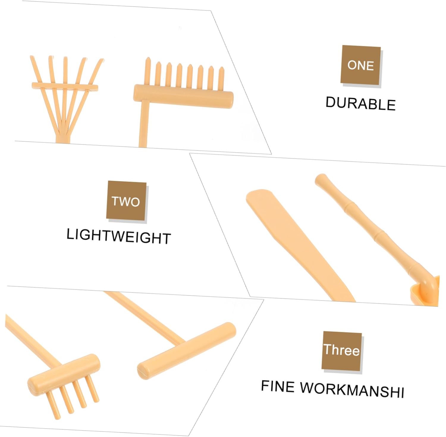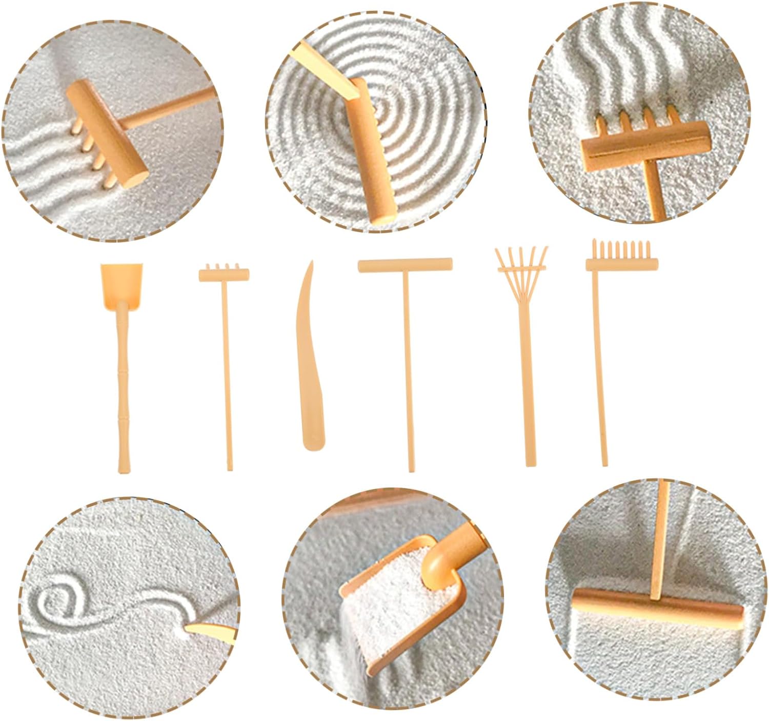 Mini rastrelli per la sabbia artigianali: puoi posizionarli sulla scrivania per renderla più attraente e affascinante, delicata e divertente, piccolo rastrello per la sabbia Rastrello per sabbiera: questi mini rastrelli sono decorativi ed eleganti, con un design accattivante, utensili a spinta per rastrelli per sabbia Mini rastrello per la pulizia: questi mini rastrelli giocattolo ti consentono di creare diversi modelli sul tavolo di sabbia, eccellenti e divertenti, piccoli rastrelli a mano Attrezzi per rastrelli: parti uniche per di sabbia per decorazioni zen, ottimi articoli decorativi per la tua casa, mini rastrello da giardino per sabbia Rastrello da tavolo per sabbia: leggero e di piccole dimensioni, facile da riporre e trasportare, aspetto gradevole e facile da usare, mini rastrello per sabbia
