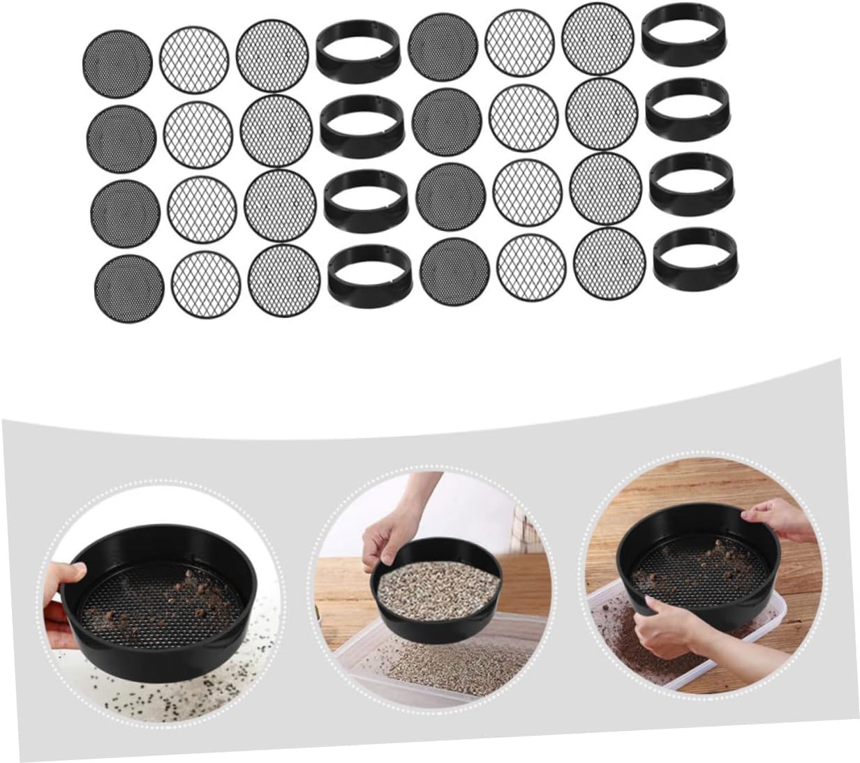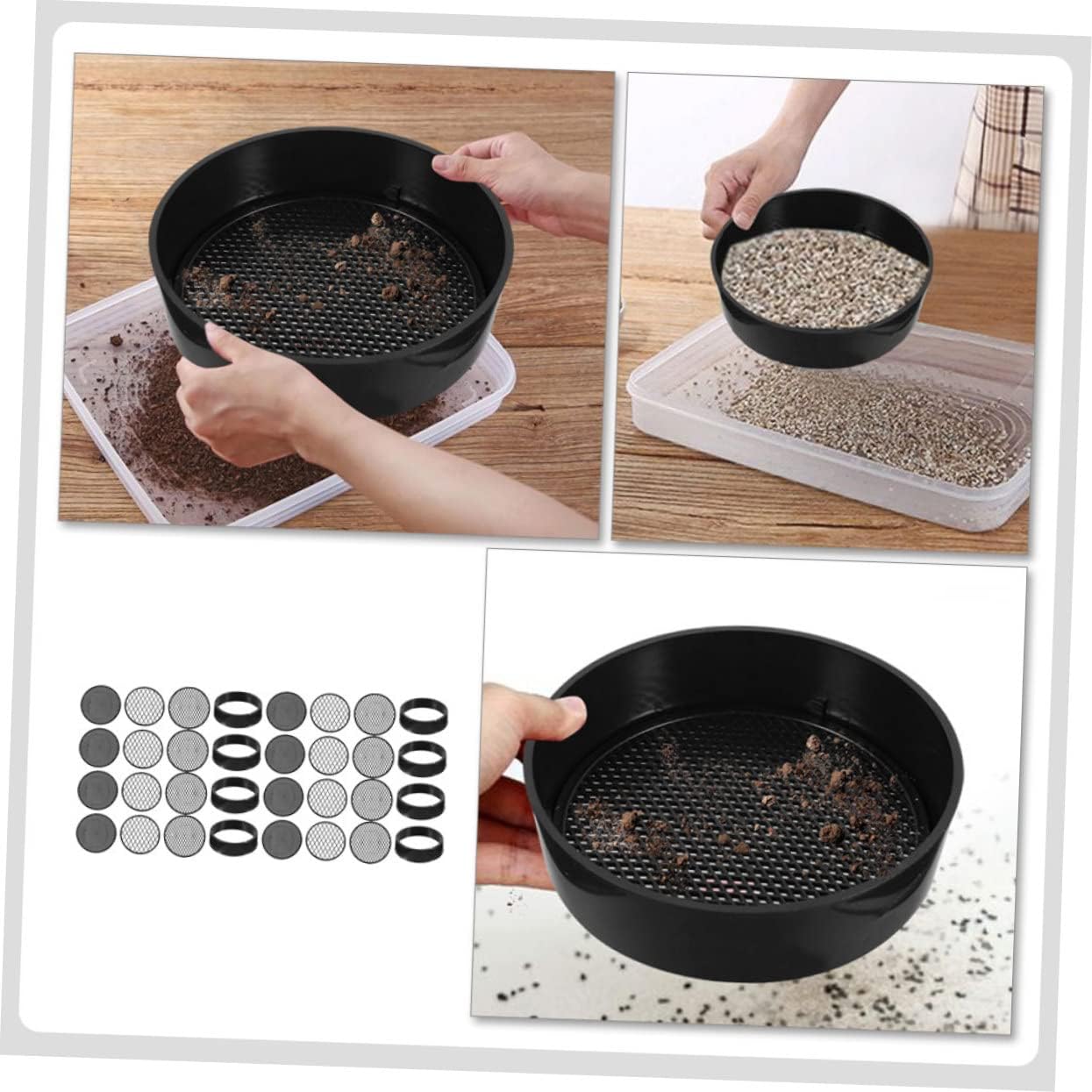 Setacci per terreno: facili da pulire e manutenere, sono un valido aiuto per i giardinieri nella filtrazione della sabbia, strumento per il compost Attrezzatura sperimentale: superficie liscia senza sbavature, non ferirà né graffierà le , setaccio per giardinaggio Mini setacci: con questo strumento, puoi portare molta comodità alla tua vita quotidiana, kit setaccio da giardino Setaccio portatile: con design a maglia fine, ottimo per filtrare sabbia, piccole pietre e altre cose, setacci portatili Setacci da giardino: sono utensili da giardinaggio essenziali per una migliore esperienza di piantagione e migliorano l'efficienza lavorativa, rete di setacciatura in plastica