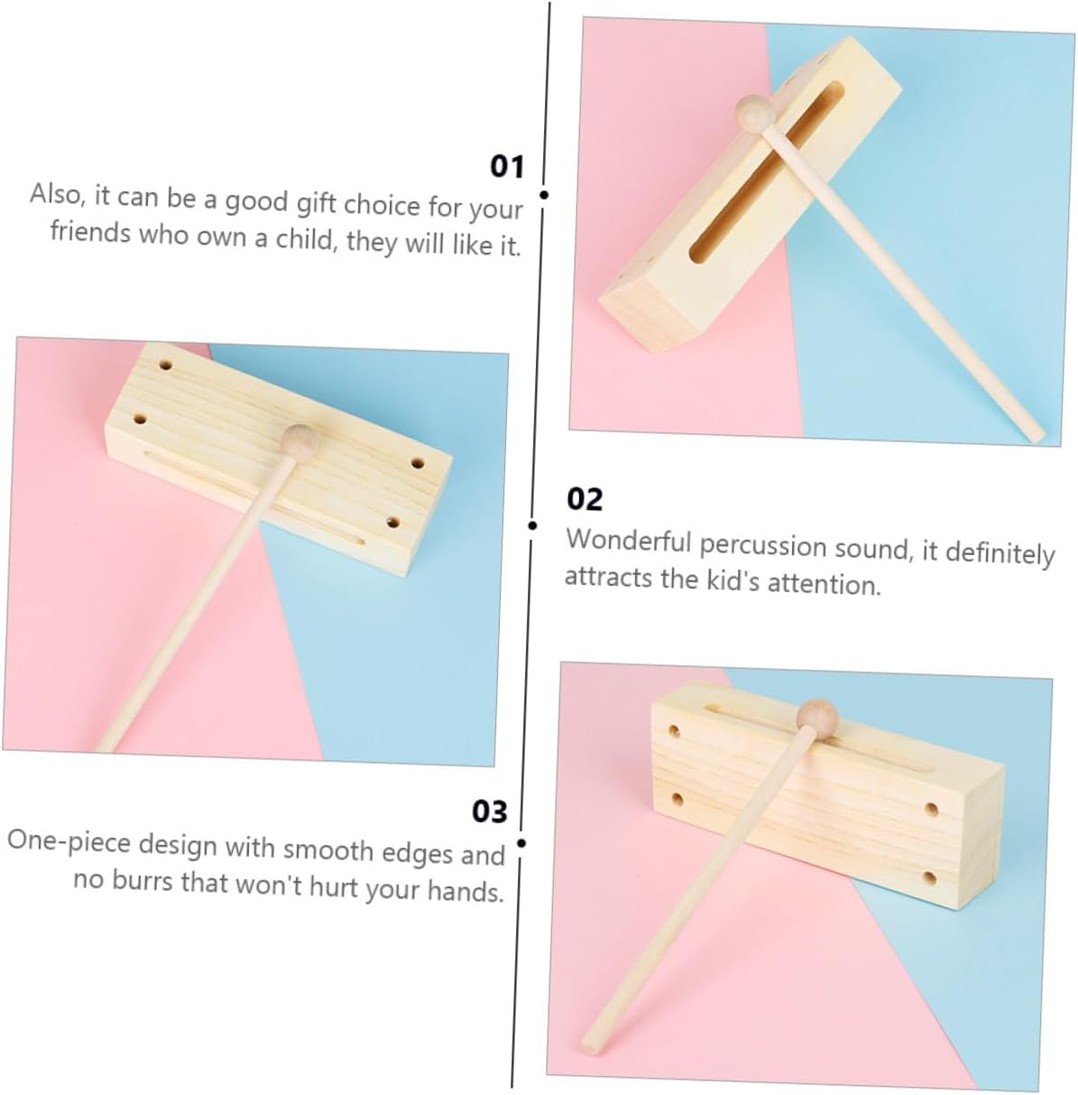 Blocco percussioni in legno: design , può facilmente attirare l'attenzione dei e renderli felici, giocattolo ricreativo Strumento musicale bitonale: favorisce la coltivazione dell'interesse musicale dei e rapporto genitore-figlio, strumento a percussione bitonale Giocattolo educativo musicale: design monoblocco con bordi lisci e senza sbavature non feriranno mani, giocattolo educativo musicale Giocattolo musicale per : può anche essere una buona scelta regalo per i tuoi un , gli piacerà, rhythm block con martello Forniture per l'insegnamento della : è coltivare la capacità creativa e la coordinazione occhio-mano dei , strumento a percussione