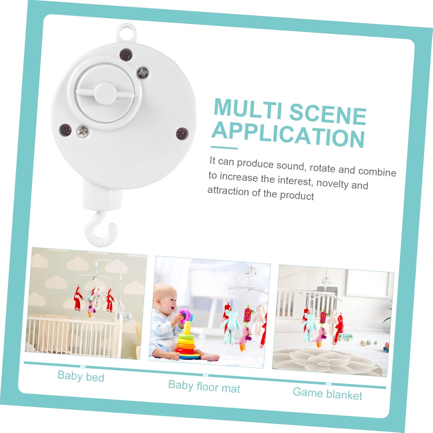 Gancio ruota durante la riproduzione della , è possibile mettere in durante la riproduzione Carillon è utilizzato per promuovere l'interesse infantile per la , sviluppo delle capacità visive e uditive Supporto viene fornito completamente assemblato e per l'uso Supporto musicale per cellulare, da te