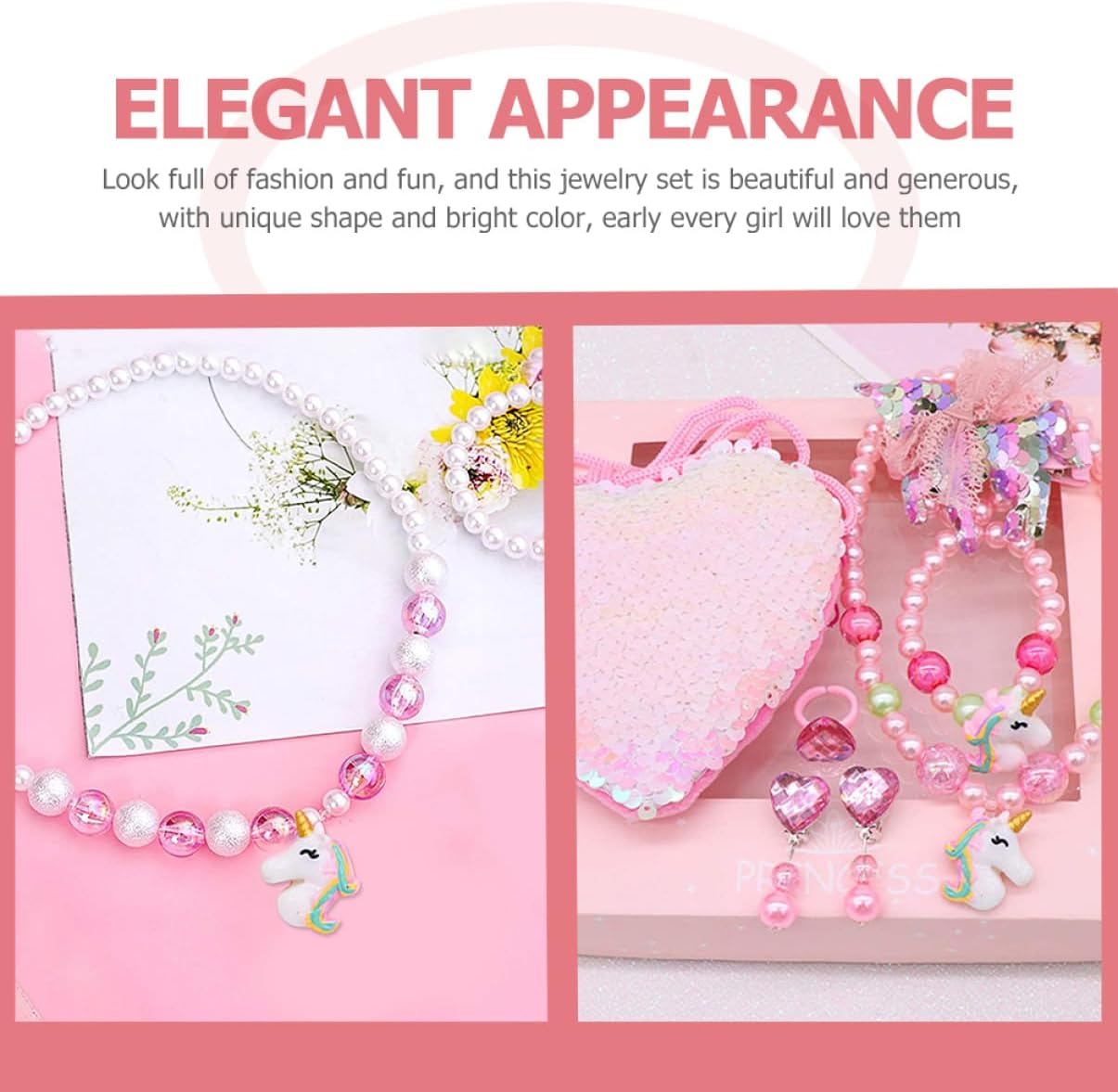 Braccialetto di perline: questo set di collana e bracciale può essere utilizzato a lungo ed è facile da riporre, piccolo di gioielli Collana per bambini: questo grazioso ed elegante set di gioielli sarà un meraviglioso per le tue bambine o per altri bambini, collana decorativa per ragazze di gioielli per bambini: questo set di gioielli per bambini vanta colori bellissimi, lucentezza duratura e ti farà brillare tutto il , kit di gioielli per bambini Collana per bambina: con uno stile unico e un design squisito, una bambina aumenterà il suo temperamento indossando questo set di gioielli, bambini Collana per ragazze: puoi usarla facilmente per abbinarla ai vestiti dei tuoi bambini, come , gonne, pantaloni e altro ancora, adorabili gioielli per bambini