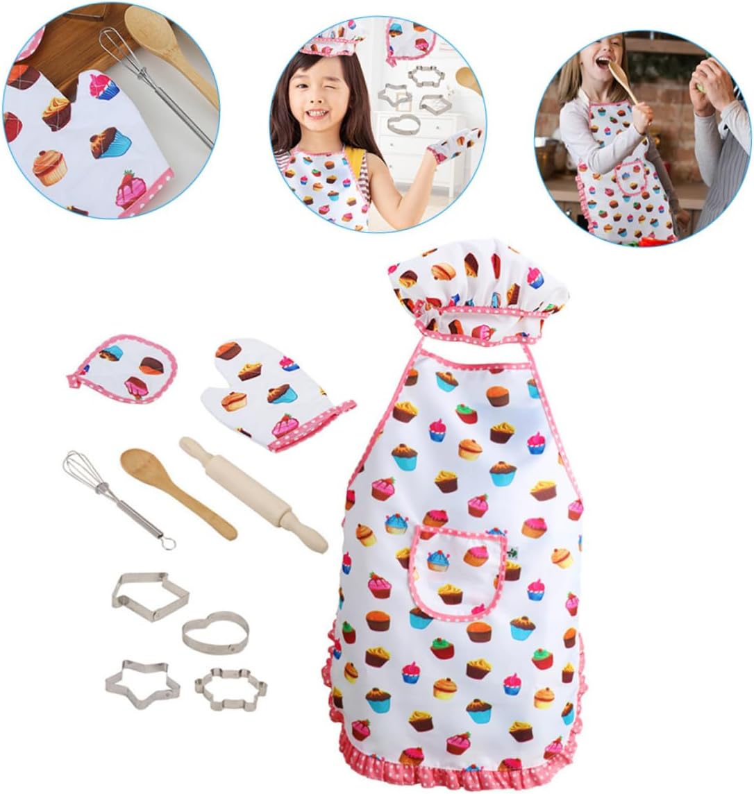 Grembiule per bambini piccoli: giocattoli da casa molto interessanti che regaleranno ai tuoi bambini un'infanzia felice, giocattoli da cucina Bambini che cucinano: materiale e lavorazione eccellenti, non devi preoccuparti che possa ferire le dei tuoi bambini, costume da chef Grembiule e cappello da cuoco per bambini: realizzati in tessuto di alta qualità, legno e metallo, sicuri per un uso duraturo, grembiuli per bambini per cucinare Vestito da cuoco per bambini: ha un design divertente e creativo, che ne garantisce la popolarità e la praticità tra i bambini, kit da cucina per bambini Kit di costumi da cucina per feste, compleanni e natale per bambini, porta divertimento e allegria, giocattoli per bambini