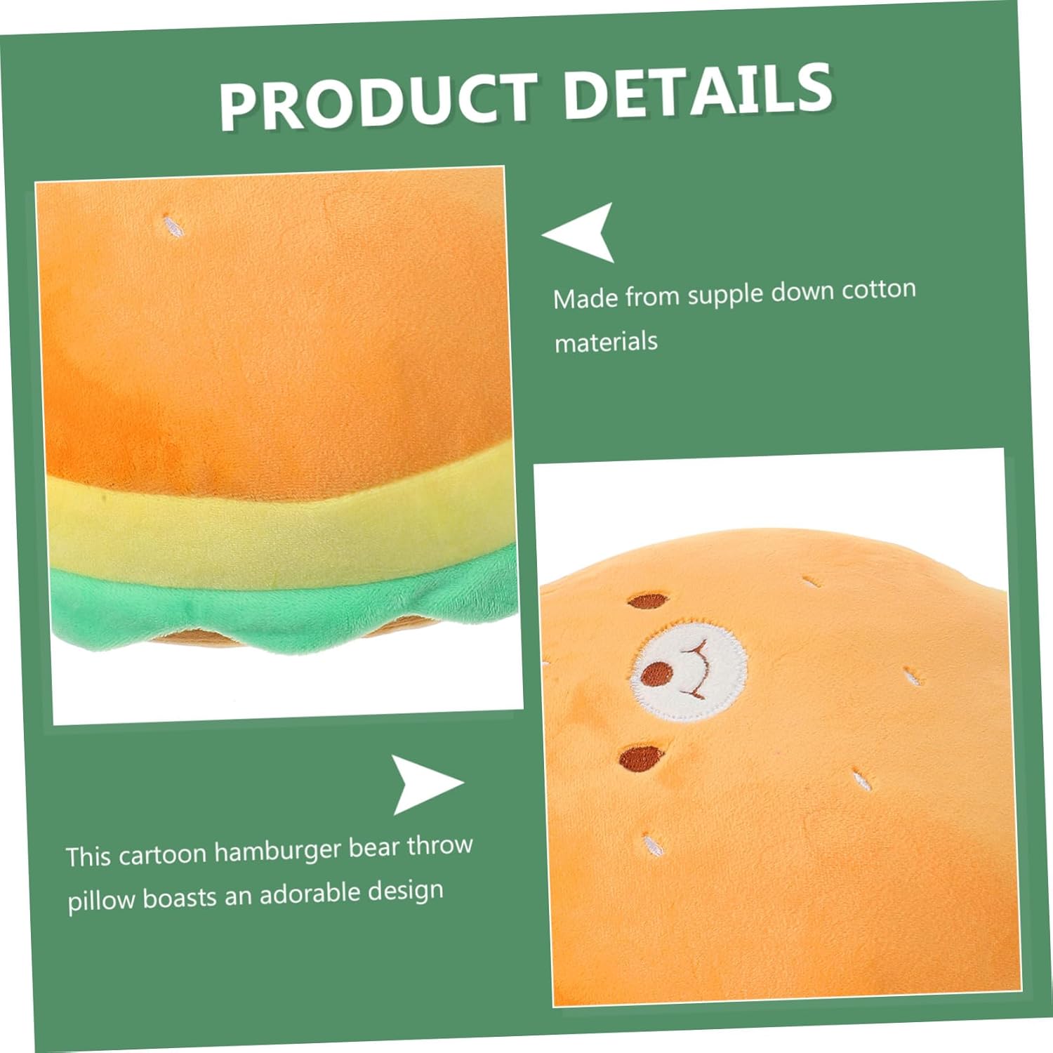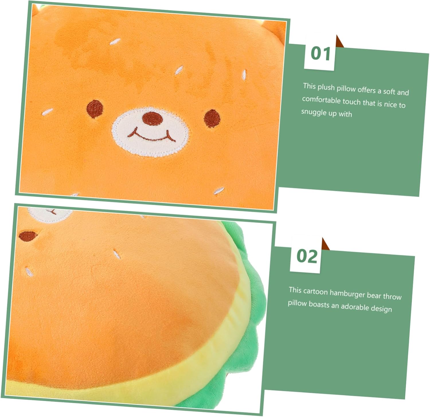 Cuscino da divano: questo cuscino da divano a forma di hamburger dei cartoni animati vanta un design adorabile che catturerà sicuramente l'amore di bambini e adulti, adorabile giocattolo per hamburger Cuscino giocattolo per bambini: l'aspetto adorabile di questo cuscino da lancio a forma di cartone animato aggiunge un'atmosfera più interessante e alla vita, cuscino da lancio a forma di hamburger Cuscino imbottito a forma di hamburger: ispirato al fast food preferito persone, questo cuscino a forma di hamburger con la faccia di un orso dei cartoni animati delizierà e intratterrà sicuramente, giocattolo a forma di hamburger dei cartoni animati Cuscino divertente a forma di hamburger: misurato alla misura perfetta per tutti, questo cuscino di peluche è ideale per giocare che per riposare, cuscino da lancio a forma di cartone animato Cuscino per snack simulato: un adorabile e morbido cuscino di peluche per il tuo letto e il tuo divano, alla maggior parte delle persone piacerà abbracciarlo, cuscino da lancio imbottito a forma di hamburger