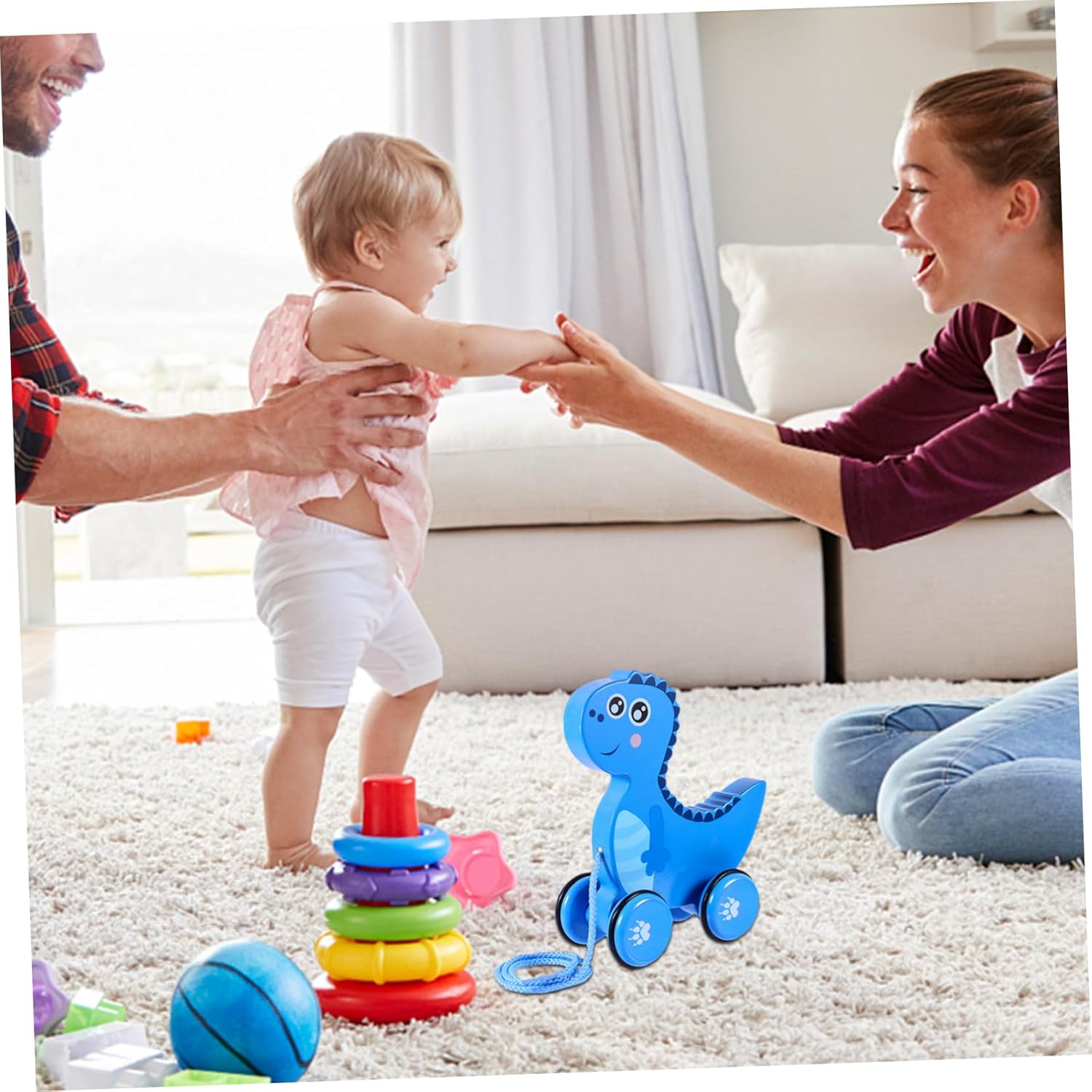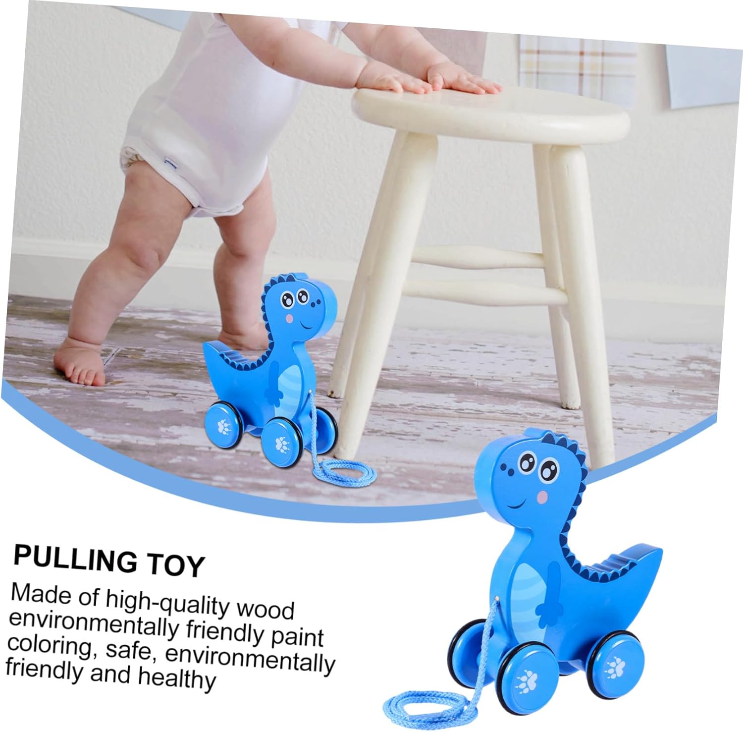 Giocattolo in legno per - superficie lucida e liscia, senza angoli e bordi, non fa male alle mani del bambino, dinosauro giocattolo da trascinare in legno da tirare - ideale per baby shower, miglior compleanno, regalo di Natale e Capodanno, giocattolo da tirare da passeggio - questo interessante è pratico per le vacanze come Natale e compleanni. Giocattolo da trascinare in legno Divertente per i più piccoli - con un adorabile design di animali dei cartoni animati, si divertirà anche molto con questo prodotto, rimorchio giocattolo in legno - il giocattolo da traino può insegnarti a camminare ed è un giocattolo da trascinare adatto per