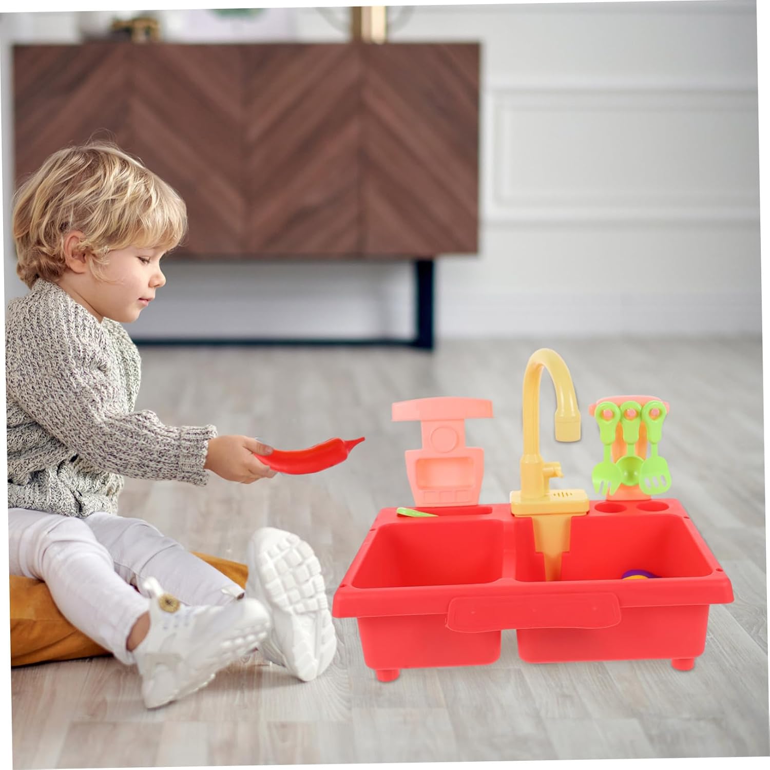 Giocattolo per lavastoviglie: gli accessori includono molti utensili da cucina e verdure, i bambini possono divertirsi di più, giocando a casa giocattolo Set da gioco per la padella: superficie liscia senza bordi taglienti, non c'è bisogno di preoccuparsi di ferire le dei bambini, giocattolo di gioco di finzione Giocattolo educativo: il giocattolo farà sì che i bambini continuino a giocare al computer e al telefono e giochino a cose divertenti, come il giocattolo da lavare. Giocattolo cognitivo: lascia che i bambini tengano il cellulare e il gioco per computer e giochino con questo divertente giocattolo, un elettrodomestico da cucina. Giocattolo per lavello da cucina: i genitori possono anche giocare con questo giocattolo con i bambini per migliorare il rapporto genitore-figlio, giocattolo per il lavaggio in plastica