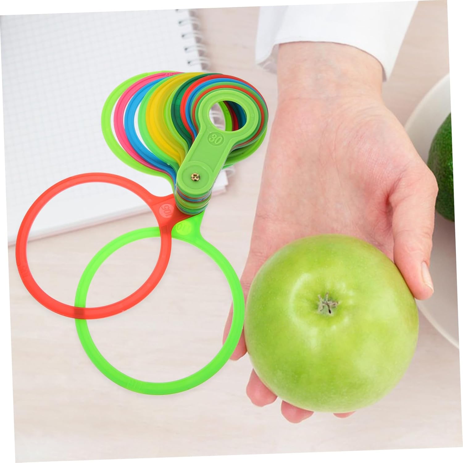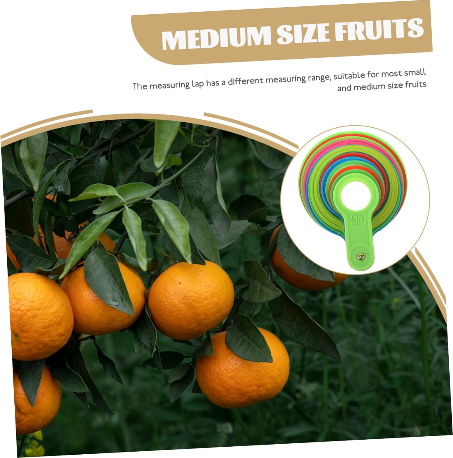 Misuratore di diametro: per i coltivatori di frutta, un pratico set di misurazione del diametro può aiutarli a classificare facilmente i frutti in base al diametro, misurazione del per i frutti Strumento di misurazione del : adatto per misurare diametro di arance, , pesche, agrumi, pere e altri frutti, strumento di misurazione della frutta Misuratore di frutta in plastica: misuratore di frutta è ampiamente utilizzato nelle fattorie, negozi di frutta, mercati ed è un aiuto per i coltivatori di frutta, misuratore di frutta per arance Misuratore di diametro per frutta in plastica: questo set di misuratori è adatto per misurare approssimativamente diametro della frutta, strumento di misurazione del diametro Misuratore del diametro del frutto circolare: in colori vivaci numeri sull'anello, di misurazione del diametro del frutto è facile da usare, per frutta