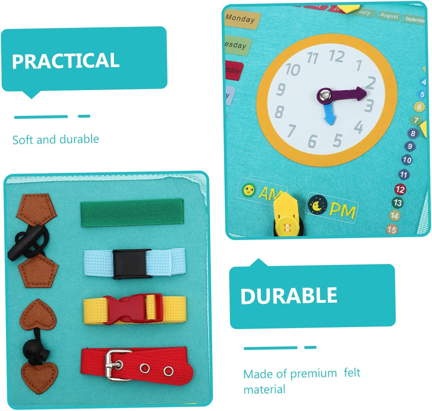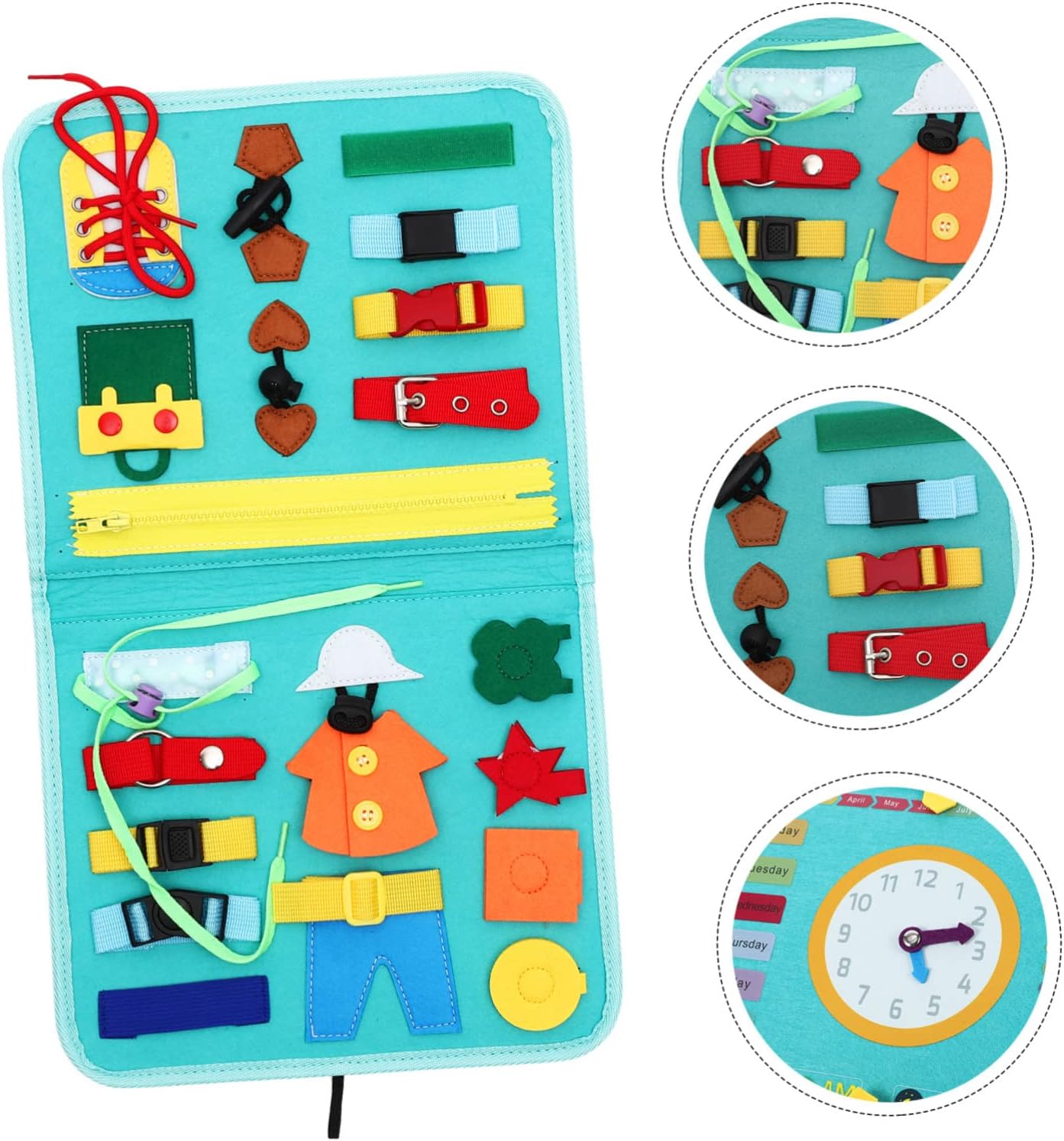 Lavagna in feltro per bambini piccoli - Con un design accurato del modello di orologio, i genitori possono usarlo per insegnare ai bambini a leggere l'ora. Attività di apprendimento per - È un giocattolo per imparare a vestirsi, un giocattolo educativo per sussidi didattici in età prescolare, sussidi didattici per la casa ed è anche per attività genitore-figlio! Tabelloni attività Montessori per bambini Attività di apprendimento per bambini piccoli - i pezzi sono piccoli e facili da maneggiare per le mani dei più piccoli, quello che può Pannelli attività in feltro dei cartoni animati - ti consentono di imparare e praticare importanti abilità di vestizione da solo, rendere più facile vestirsi per i bambini, Tabellone attività Montessori per bambini Attività per bambini - Giocattolo da tavolo multifunzionale per bambini piccoli, con abilità di vita, lettere, orologi e altri blocchi di apprendimento assortiti, attività di apprendimento per bambini in età prescolare