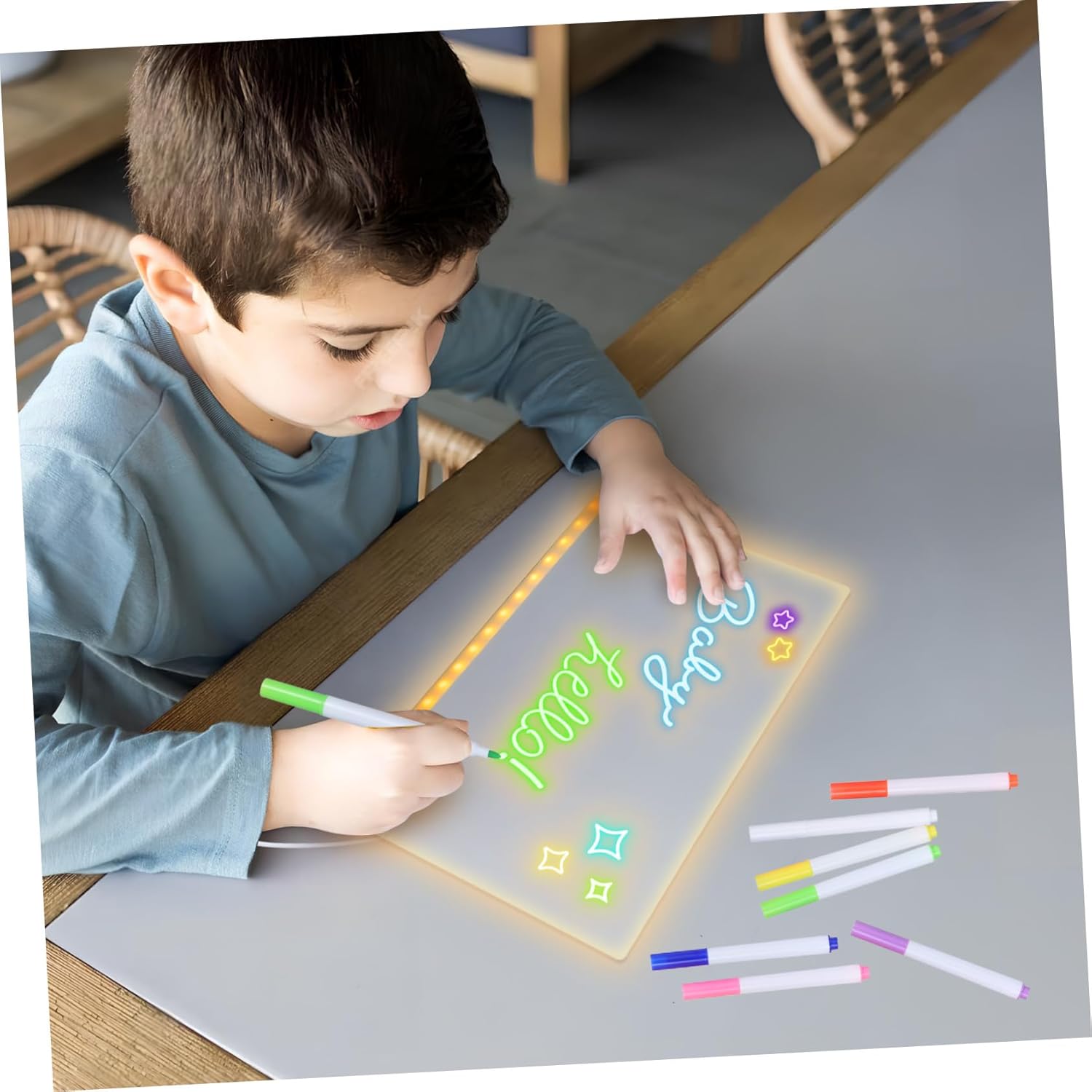 Creatività vibrante: i colorati inclusi invitano a una creatività infinita, consentendo agli utenti di esprimere i propri pensieri e in tonalità vivaci, Apprendimento : la funzione del tavolo da illuminato consente di scarabocchiare da te, promuovendo capacità motorie dei e la percezione dei colori, adatta a scenari interattivi, Facile da pulire: la lavagna cancellabile a secco in acrilico con ha una superficie liscia e facile da pulire, offrendo uno ordinato e organizzato per attività creative dei , Istruzione e intrattenimento: la lavagna cancellabile a secco per unisce divertimento ed educazione, aiutando i ad apprendere la scrittura di base mentre giocano, migliorando sviluppo cognitivo, Set di colorati: caratterizzati da colori diversi, questi inclusi migliorano la creatività e aiutano i tuoi messaggi a distinguersi con design accattivanti,