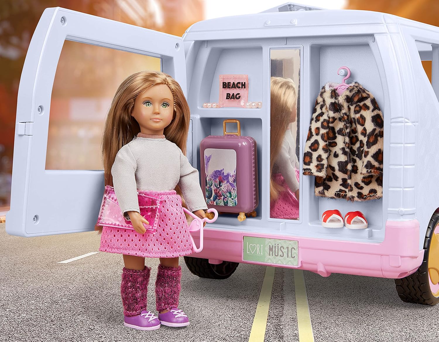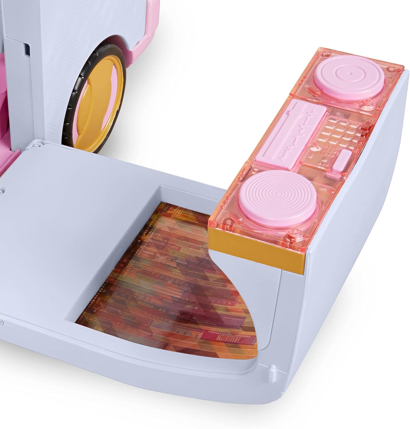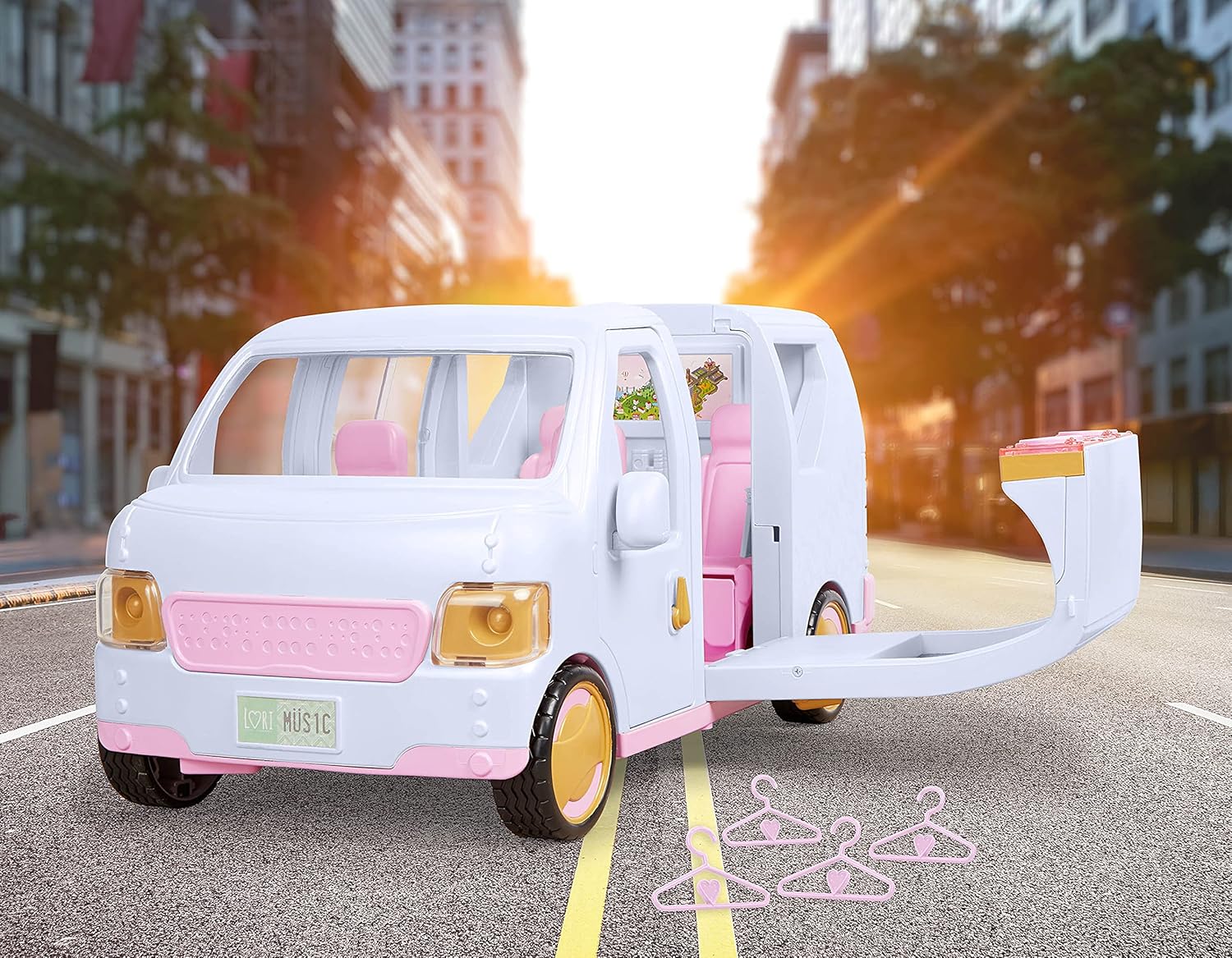 SUV di lusso: porta le tue mini bambole in un viaggio divertente in un veicolo alla moda pieno di funzionalità interattive Funzionalità divertenti: le bambole possono aprire le porte per saltare fuori, riprodurre musica nella cabina del DJ, ruotare i sedili, aprire il finestrino, appendere i loro abiti nell'armadietto sul retro, raggiungere la prossima destinazione e molto altro ancora. (3 batterie AA incluse) Suoni e luci: la cabina musicale funziona e presenta melodie divertenti e luci colorate