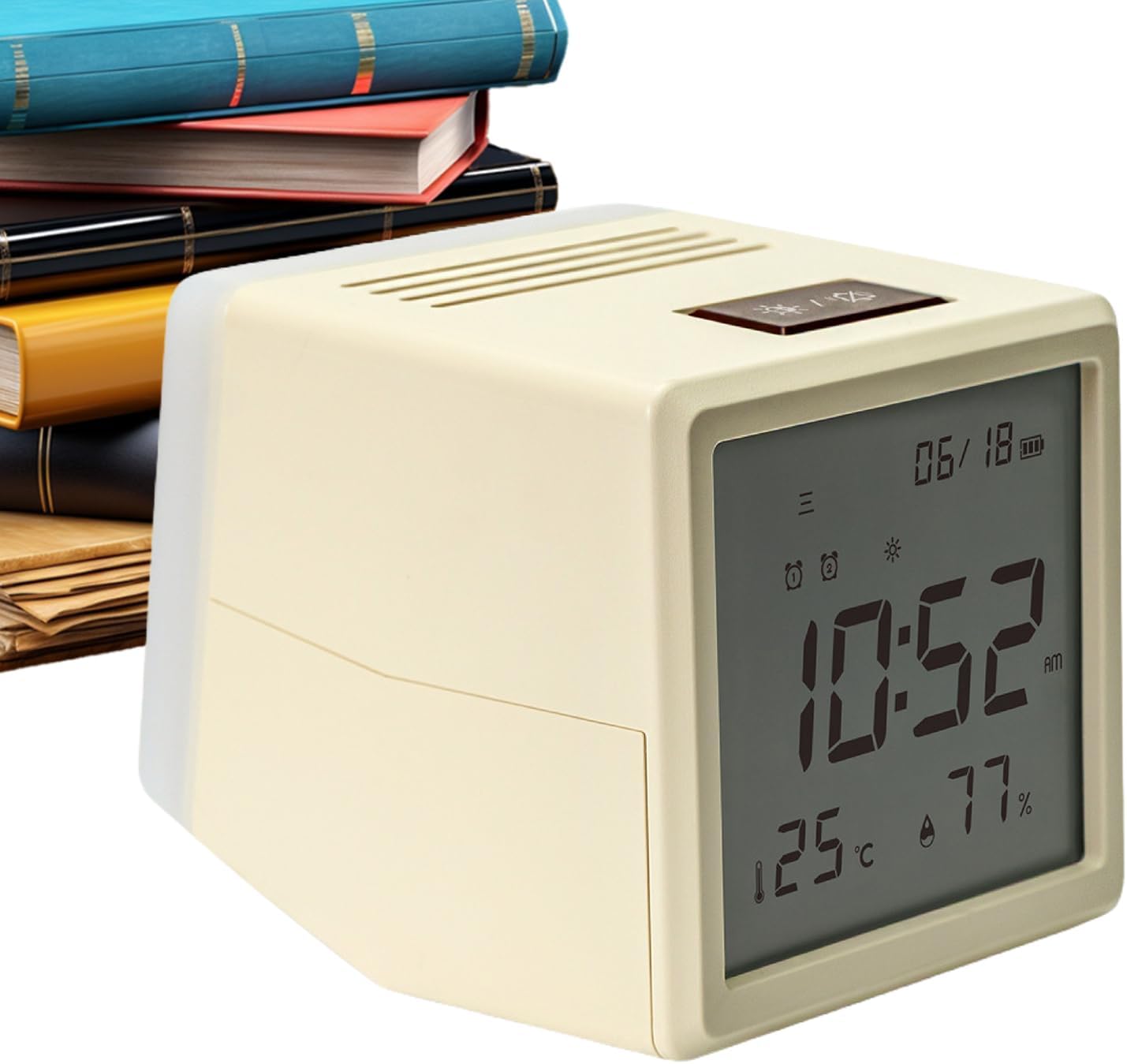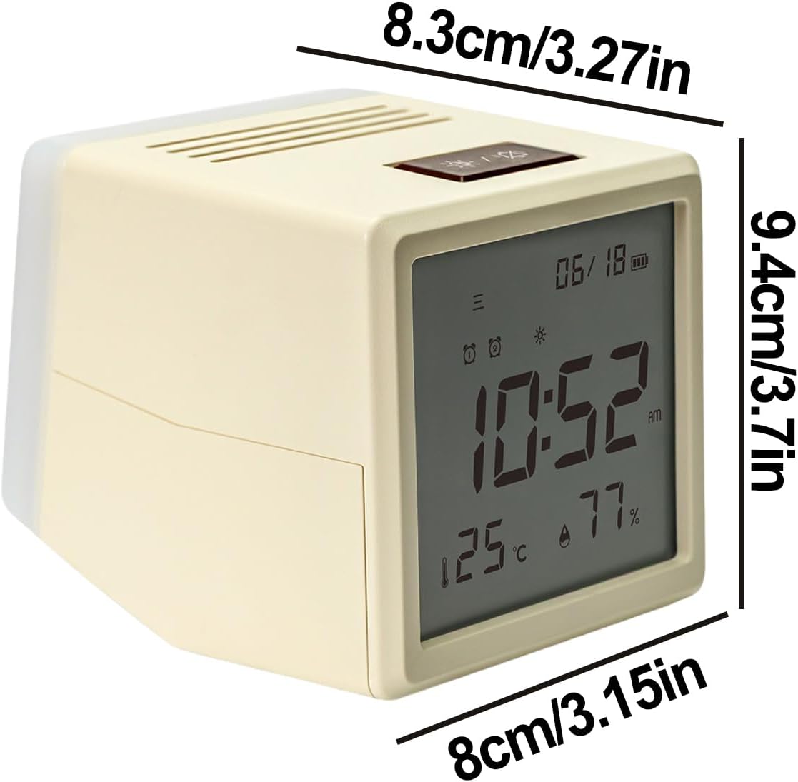 Regalo pratico: dotato di un aspetto carino che cattura l'attenzione dei , questa sveglia è pronta per essere regalata per compleanni o occasioni speciali, aggiungendo anche alle routine quotidiane tramite le sue funzionalità di luce e suono regolabili Sveglia in morbidezza: grazie alla sua comoda modalità snooze, questa sveglia per bambini consente lievi ritardi di allarme, favorendo un sorgere sereno e una mattinata lenita per i giovani utenti. Costruzione rinforzata: questa sveglia per bambini ha una base antiscivolo, una struttura stabile durevole e arrotondata, offrendo superfici resistenti per una maggiore sicurezza e affidabilità, ideale su comodini o scrivanie dove la stabilità è essenziale Design per bambini: la sveglia offre un design interattivo giocoso con una luce basculante che rende le mattine divertenti e accattivanti, aiutandoli a alzarsi felicemente mentre stabilisce una routine mattutina regolare in modo allegro e senza stress. Design adatto: con i suoi pulsanti molto semplici e la guida alle icone visivamente chiara, questa sveglia garantisce un utilizzo senza sforzo per i giovani utenti, e la sua visualizzazione a grandi cifre garantisce un'eccellente leggibilità durante la sveglia o durante la notte