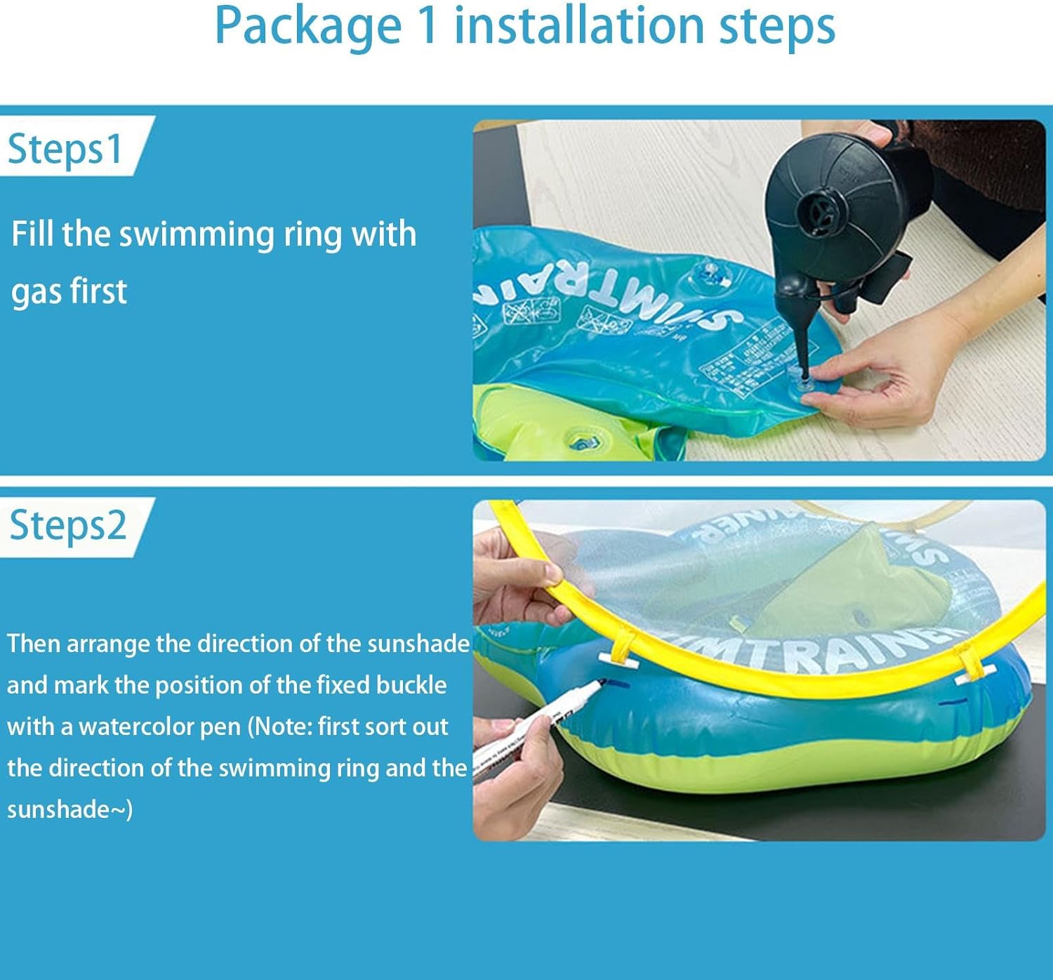 Removable Sun Protection Canopy: Features a detachable UPF50+ sunshade to shield users from harmful UV rays; easily removable for sunbathing or storage; ensures prolonged outdoor enjoyment without sunburn concerns; ideal for both children and adults seeking sun protection Safety Seat Design: Equipped with a secure seating area to prevenent slipping; provides stability for young swimmers; enhances confience in the water; suitable for and young children; promotes safe water play under adult supervision Materiali durevoli e confortevoli: costruiti da alta qualità, puncture-resistente PVC; ensures longevity and repeated use; smooth prevenents skin irritation; comfortable seating for extended play sessions; supporti pesi fino a 150 pounds Easy Inflation and Portability: Includes quick-inflate valve for rapid setup; deflates compactly for convenient storage and transport; lightweight design make it easy to carry to pools, beaches, or lakes; perfect for on-the-go families; compatible with standard air pumps Versatile Water Toy for Various Settings: Ideal for use in swimming pools, garden ponds, or outdoor water bodies; enhances fun during summer gatherings; encourages physical activity and water confidence; suitable for both boy and girls; make a great gift for water-looving families