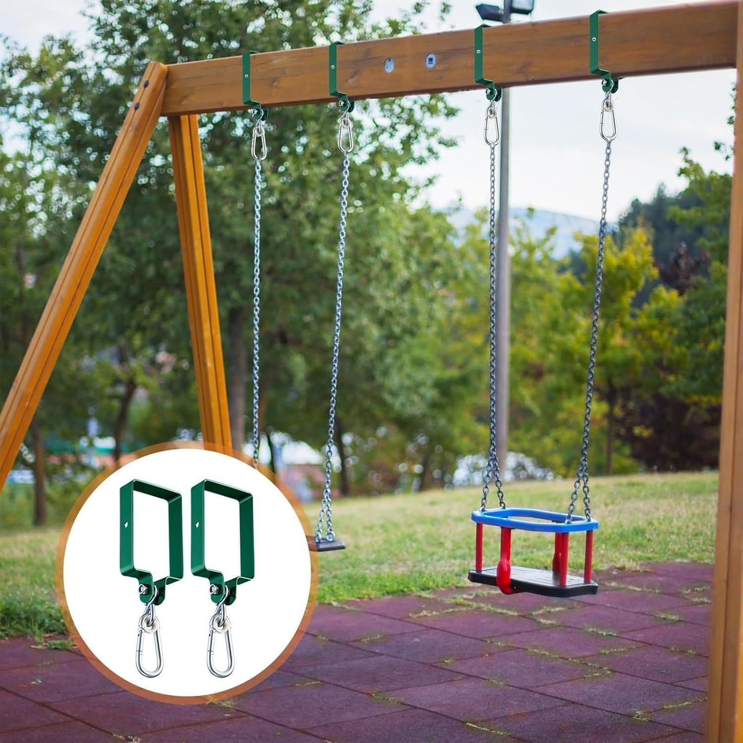 Processo intuitivo: Design user-friendly con elementi numerati e manuale illustrato, include tutti i dispositivi di ancoraggio necessari per un montaggio autonomo in totale sicurezza, per ottenere risultati professionali senza competenze specifiche Compatibilità garantita: Progettati con misure standard di 14,5 x 9,5 cm e 3 cm di spessore, questi supporti si adattano perfettamente alle altalene più comuni, semplificando l'installazione e aumentando la versatilità d'uso Materiale robusto: realizzati in acciaio ad alta resistenza, questi ganci per altalene sono impermeabili e ideali per uso esterno, offrendo durata nel senza compromettere sicurezza o prestazioni Aumenta l'attrattiva del giardino: Il design accattivante ispira i bambini a vivere avventure all'aperto, mentre il versatile colore verde si armonizza perfettamente con l'ambiente circostante, creando un'atmosfera piacevole e invitante Adattabilità Completa: Ganci universali per montaggio su altalene classiche, strutture composite e sospensioni naturali, caratterizzati da design funzionale che massimizza il divertimento in giardino e supporta progetti creativi con performance costante