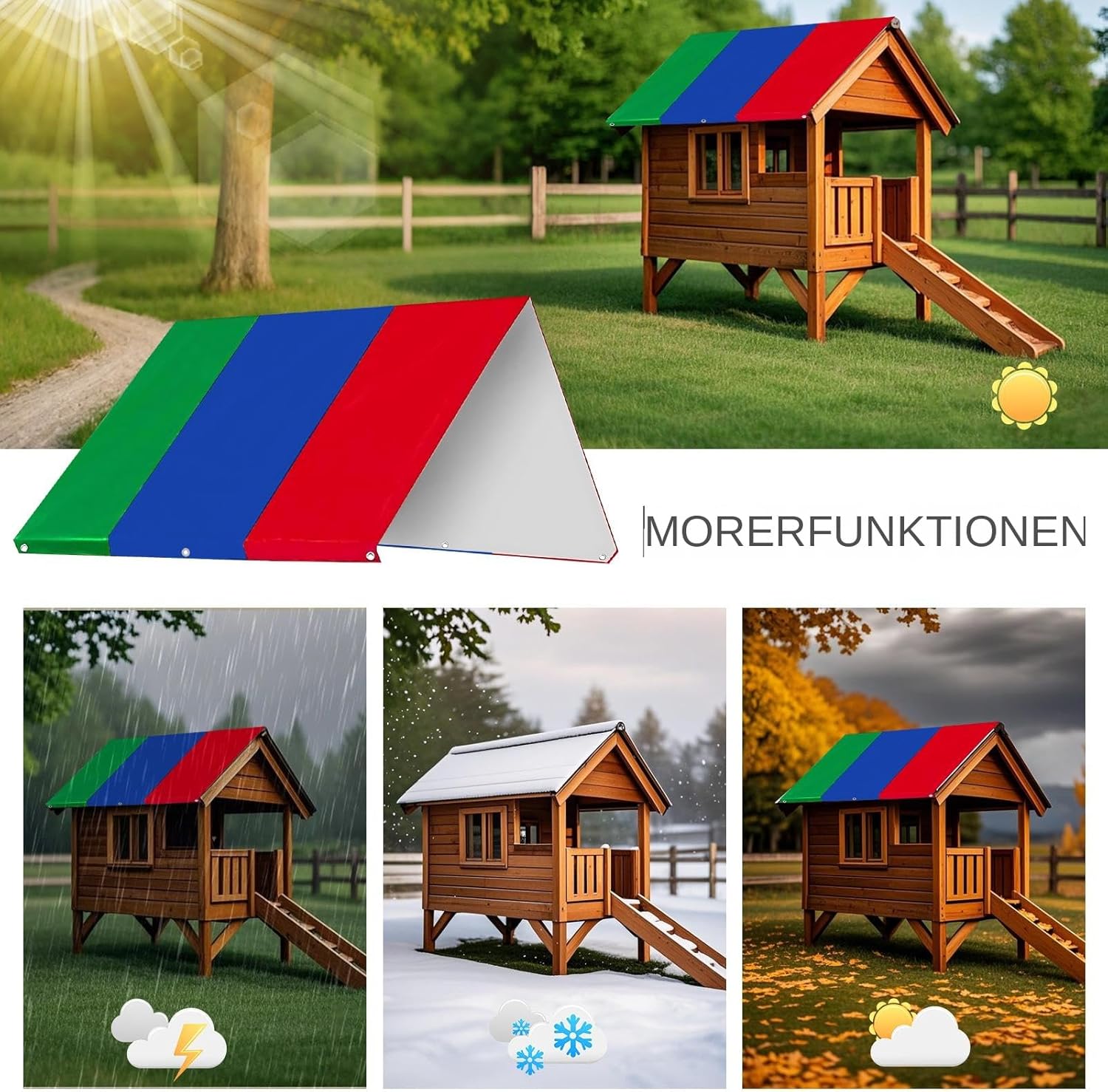 Usura e crepa: questo parco giochi per la protezione a lungo termine dagli elementi duri ha Design resistente alle intemperie tutto l'anno: il rivestimento in tessuto multifunzionale consente una tripla difesa: la neve scivola dalle guarnizioni invernali, dalle foglie che soffiano le coperture autunnali e gli strati riflettenti UV riducono l'accumulo di calore. La costruzione impermeabile soddisfa gli standard di protezione dalla pioggia, mentre i bordi antipolvere mantengono la pulizia Design multi-color: aumenta l'attrazione visiva all'aperto con un baldacchino per parco giochi che offre opzioni di colore versatili. Lo schema multi-estetico garantisce un'integrazione senza soluzione di continuità in terrazza, giardino o cortile, migliorando così l'unità decorativa Installazione rapida: con titoli in metallo rinforzato lungo i bordi, questa configurazione per parco giochi -Canopy con due opzioni di installazione versatili: il fissaggio della puleggia o una corda regolabile. Il giardino robusto migliora l'integrità strutturale uguale Uso diffuso: per un uso versatile per casette da esterno, set swing, panche e vari dispositivi di divertimento, questo parco giochi sostituisce perfettamente soffitti usurati o danneggiati per rinnovare la protezione dai raggi UV e dalle intemperie