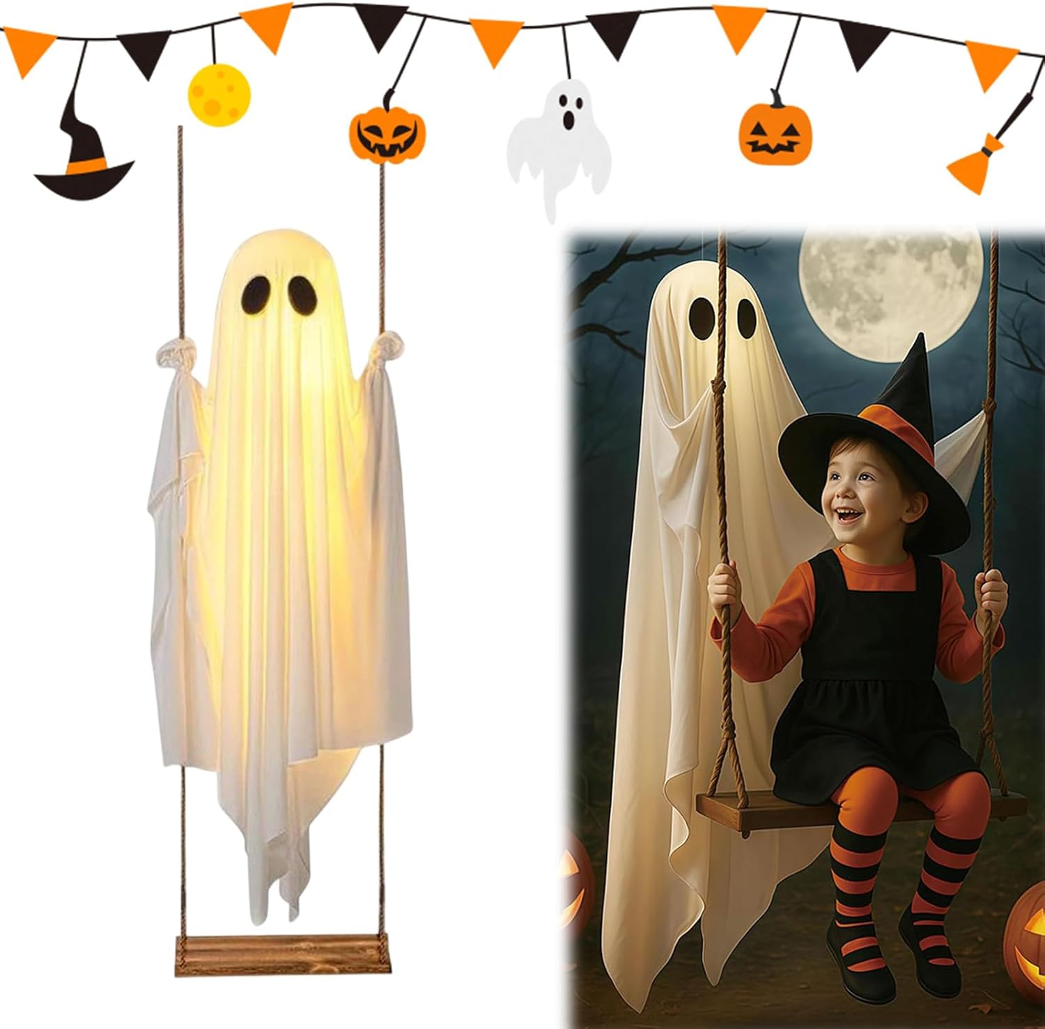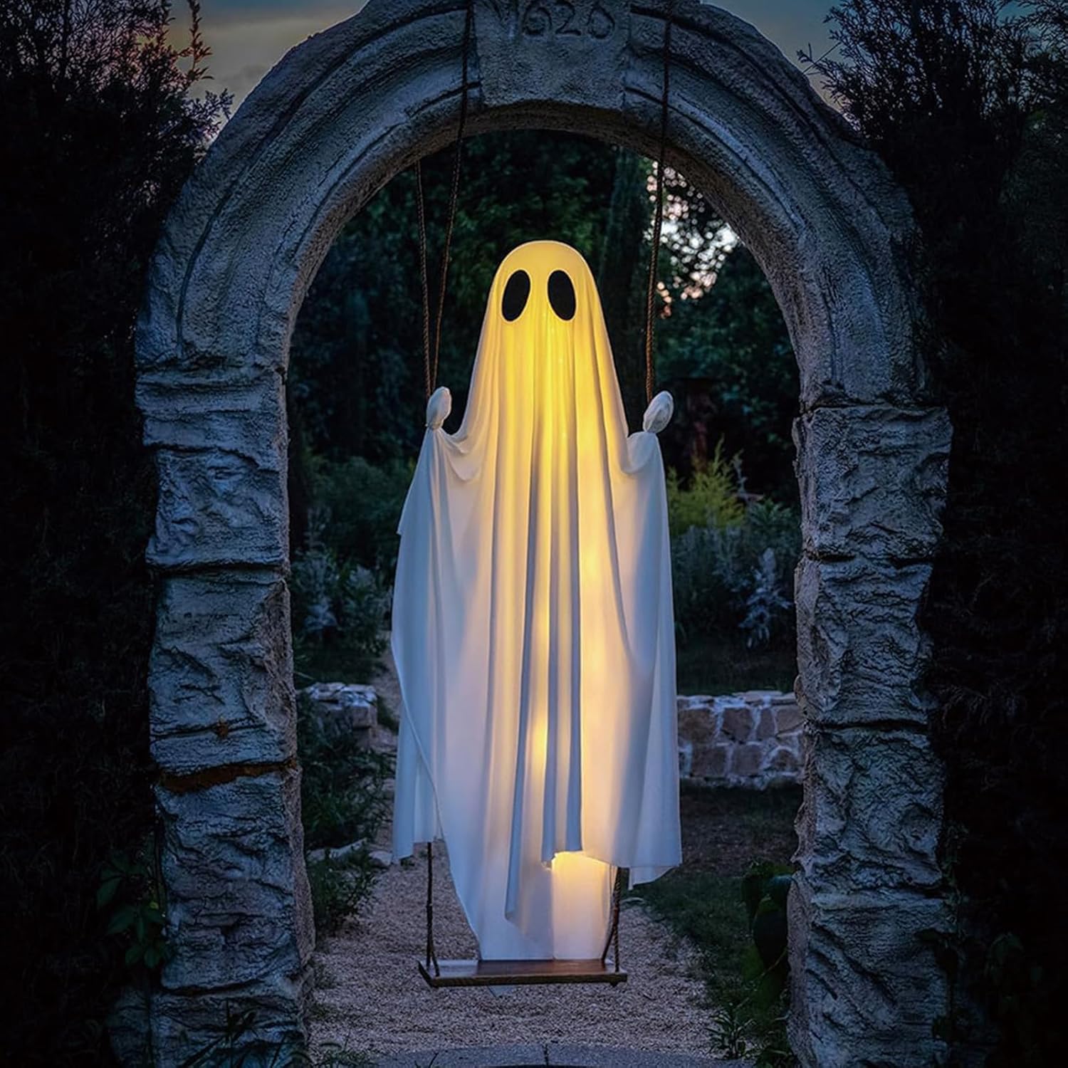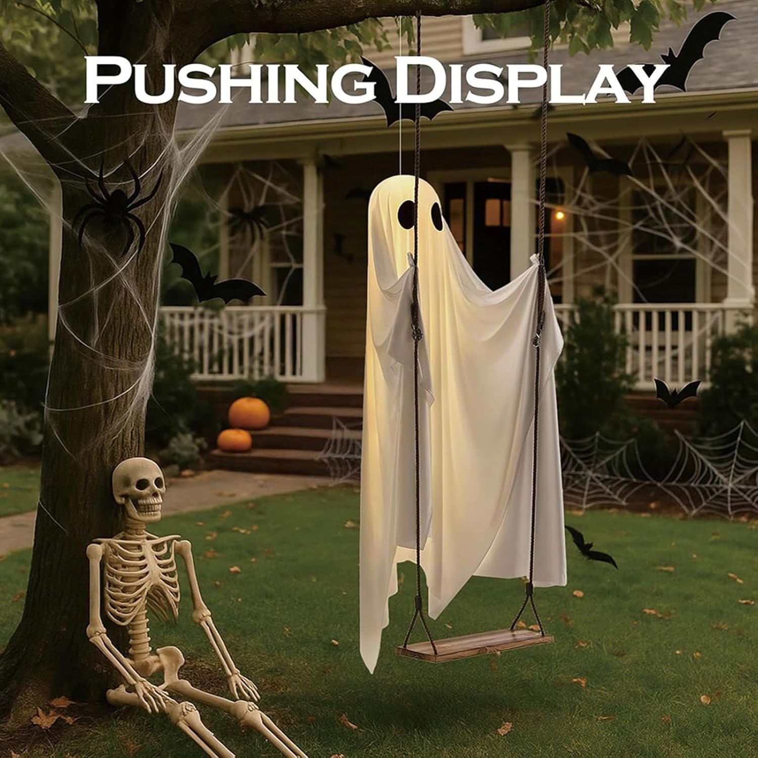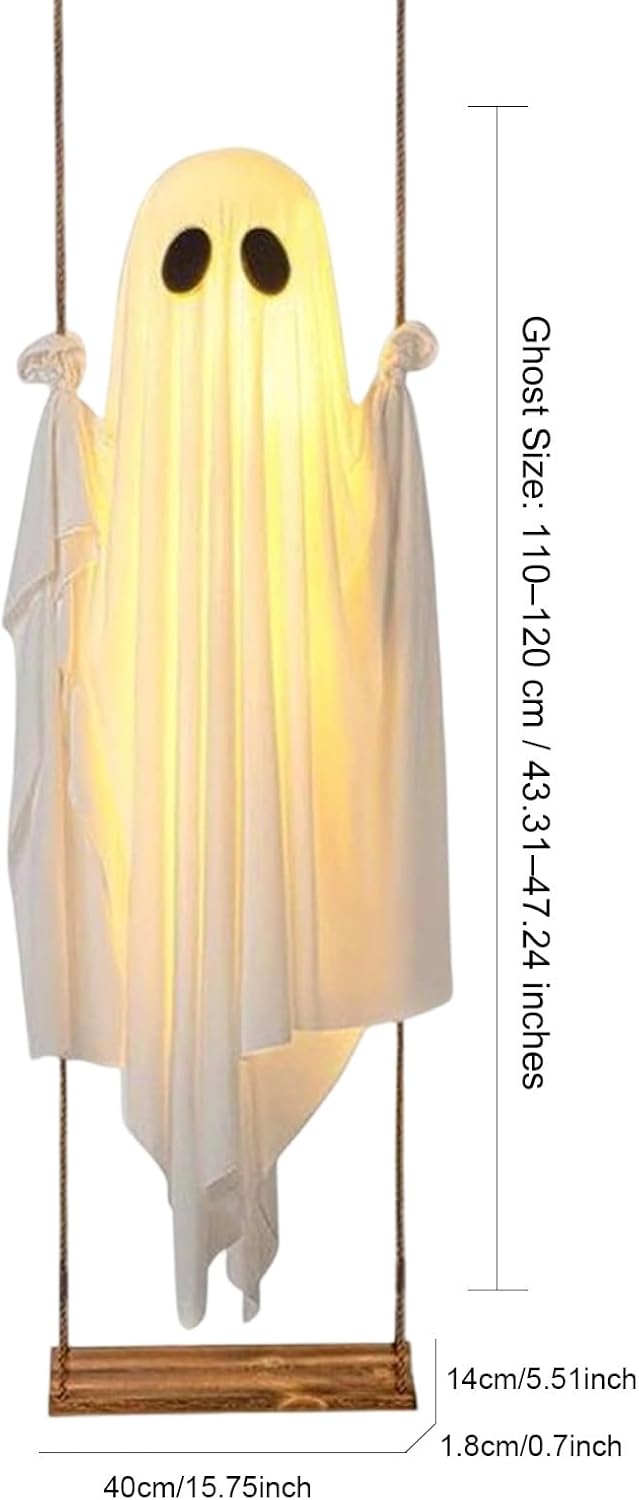 Spettacolare display spettrale da 5,9 piedi: questo fantasma swing sospeso misura un impressionante 5 piedi, ondeggiando delicatamente nella brezza per creare un punto focale inquietante all'aperto. Perfetto per vibrazioni notturne di Halloween indimenticabili e incontri inquietanti. Possibilità di movimento realistiche: progettate per sedersi, stare in piedi o swing, la configurazione flessibile di Swing di Ghost Hanging Ghost ti consente di personalizzare ogni dettaglio. L'altezza di swing regolabile infonde le tue decorazioni con un'azione vivace e inquietante. Foglio di rughe premium: l'arredamento fantasma sospeso presenta un tessuto spesso di recente sviluppo che si muove naturalmente e rimane resistente all'aperto. La sua trama liscia mantiene l'installazione acuta e autenticamente da incubo. Facile controllo remoto e timer: dotato di un telecomando wireless, è possibile passare rapidamente tra otto modalità di illuminazione per effetti di fantasmi bianchi luminosi perfetti. Il timer incorporato consente di risparmiare sforzo e garantisce spettacolo cronometrato inquietante. Decorazione di Halloween Ready-To-Go: include tutto il necessario per l'installazione rapida. Appendi il fantasma ovunque fuori - su rami, portici o ingressi - per spettacolo oscillante a feste, eventi infestati o celebrazioni di Halloween.