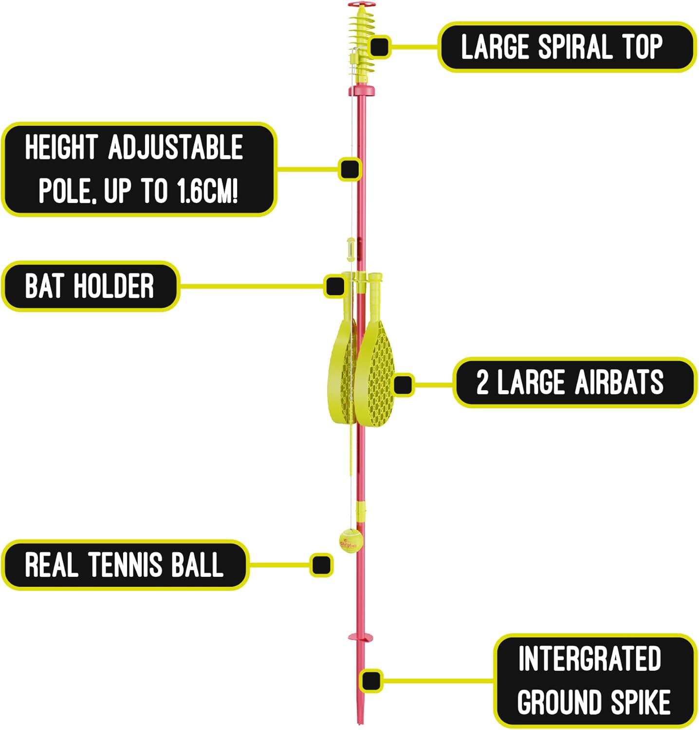 Vera palla da tennis Swingball con picchetto a terra tradizionale 2 racchette da competizione Palo regolabile in altezza (1,65 m di altezza) Sviluppa la coordinazione occhio-mano