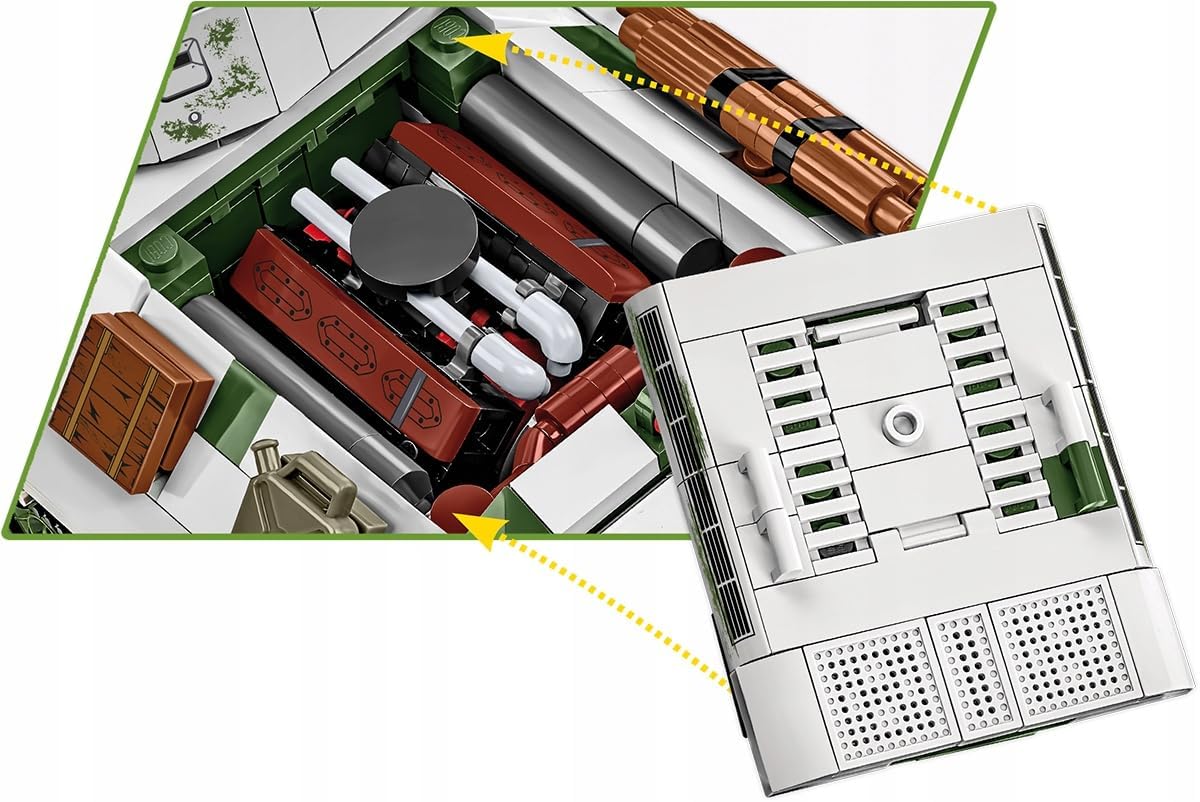 852 elementi I blocchi soddisfano gli standard di sicurezza dei prodotti per bambini; completamente compatibili con le altre marche di blocchi da costruzioni; i blocchi con stampe non si graffiano e non sbiadiscono durante il gioco o sotto l'influenza della temperatura Istruzioni chiare e intuitive basate su illustrazioni e indicazioni passo-passo. 1 figura; targhetta con il nome; modello di mini motore rimovibile; scala 1:28