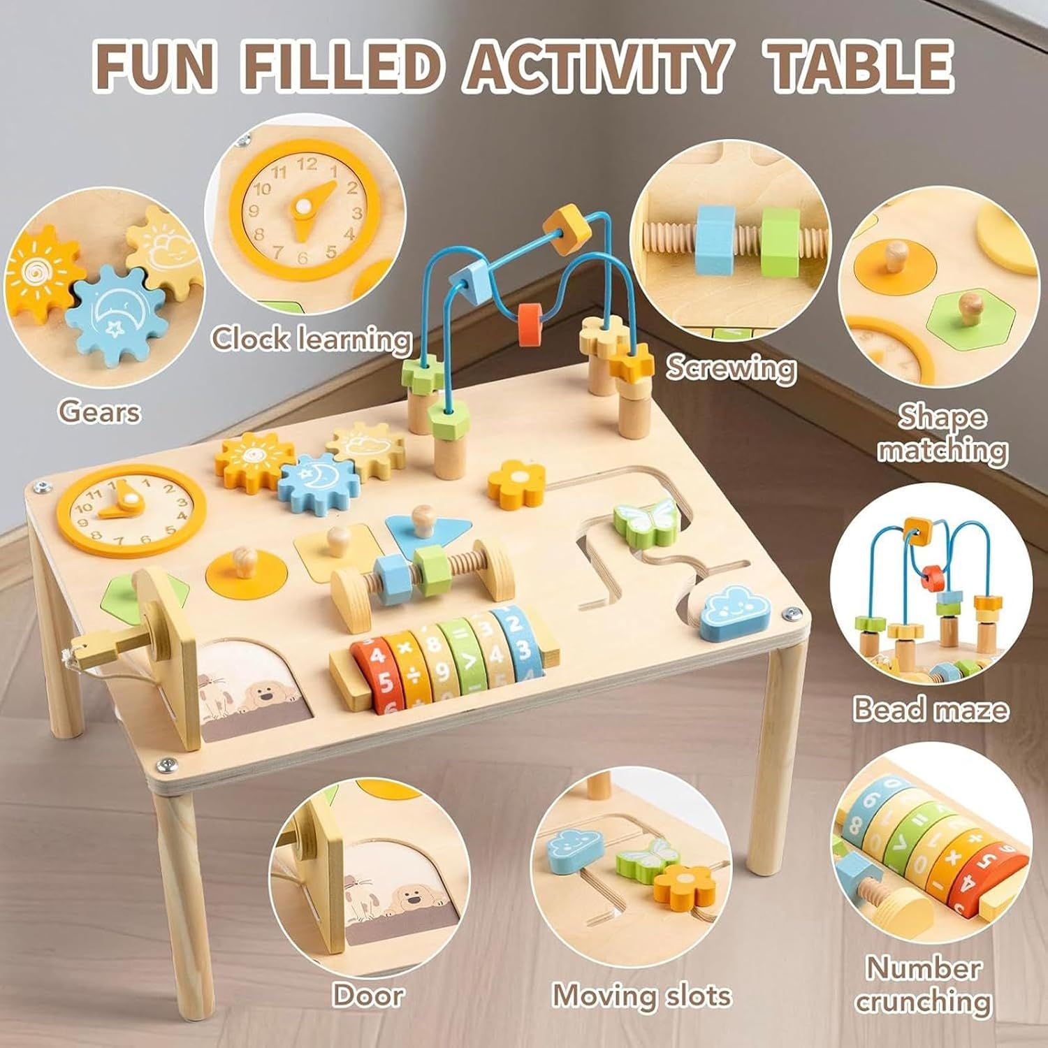 L'uso a lungo termine: presenta un design robusto realizzato con materiali sicuri con una tabella di attività per finitura lucidata migliora la sua robustezza e contribuisce a una lunga durata di servizio Soluzione del gioco dello sviluppo: questo prodotto si concentra sul miglioramento del coordinamento degli occhi e nel nutrizione delle capacità motorie, offrendo un'esperienza educativa dei giocattoli che coinvolge i giovani studenti con attività per supportare i processi di costruzione delle competenze Supporto robusto e costante: dotato di gambe e rinforzato da viti di montaggio, il giocattolo del tavolo di attività assicura una stabilità costante per le attività quotidiane senza interruzioni Ottimo regalo: partecipa a bambini e amici nelle interazioni giocose tavolo da attività per le vacanze e promuovendo connessioni significative all'interno della cerchia familiare Uso multifunzionale: con un meccanismo di marcia e un labirinto perline per scoperta interattiva Questa tabella di attività promuove la comprensione del confronto delle forme insieme alle abilità indispensabili usando un orologio e un calcolatore matematico per coinvolgere opportunità di apprendimento