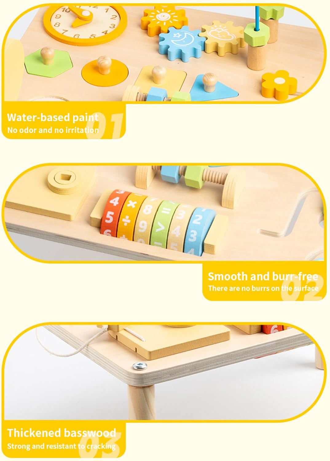Tavolo di apprendimento in legno multi-attività progettata per lo sviluppo della prima infanzia: questo tavolo da gioco interattivo - presenta attività coinvolgenti come un selezionatore a forma, il labirinto di perline, le marce di filatura e le tracce scorrevoli, tutte realizzate in legno naturale per promuovere la crescita cognitiva, la coordinazione occhio-mano e l'esplorazione sensoriale per i bambini e i bambini piccoli. Playset educativo per sviluppare abilità essenziali in età prescolare-appositamente progettate per ragazzi e ragazze di età compresa tra 1 e 5 anni, questa tabella delle attività incoraggia la risoluzione dei problemi, lo sviluppo delle abilità motorie, il riconoscimento di forma e il colore e la consapevolezza spaziale-perfetta per la preparazione dei bambini per l'asilo o gli ambienti in età prescolare attraverso un gioco pratico e divertenti. Materiali sicuri e non tossici e design per bambini-realizzato con bordi lucidati, costruzioni in legno robuste e vernici ecologiche e a base d'acqua, questo tavolo da giocattolo garantisce un'esperienza di gioco sicura per curiosi piccoli studenti, rendendolo ideale per l'uso quotidiano a casa, centri di asilo o angoli di apprendimento. Area giochi compatta ma spaziosa per le abilità di apprendimento e sociale condivise-il layout del tavolo ben organizzato consente a più bambini di giocare simultaneamente, promuovendo il gioco cooperativo, la comunicazione e la condivisione migliorando le esperienze di apprendimento individuali-tutto in un'impronta compatta che si adatta bene a camere da letto, aule o sala giochi. Regalo per i più piccoli, i compleanni e gli ambienti di educazione precoce: che tu stia facendo shopping per un regalo per le vacanze, un regalo di compleanno o rifornendo la tua scuola materna con giocattoli appropriati dallo sviluppo, questo tavolo di apprendimento in legno ben progettato offre valore educativo e intrattenimento duraturo, rendendolo un favorito di fiducia per i genitori e gli insegnanti.