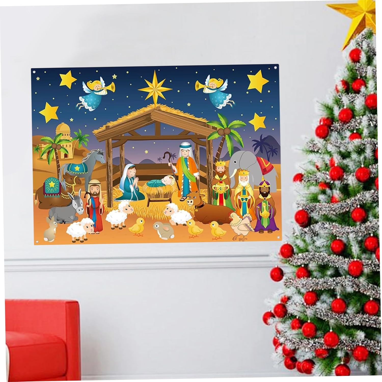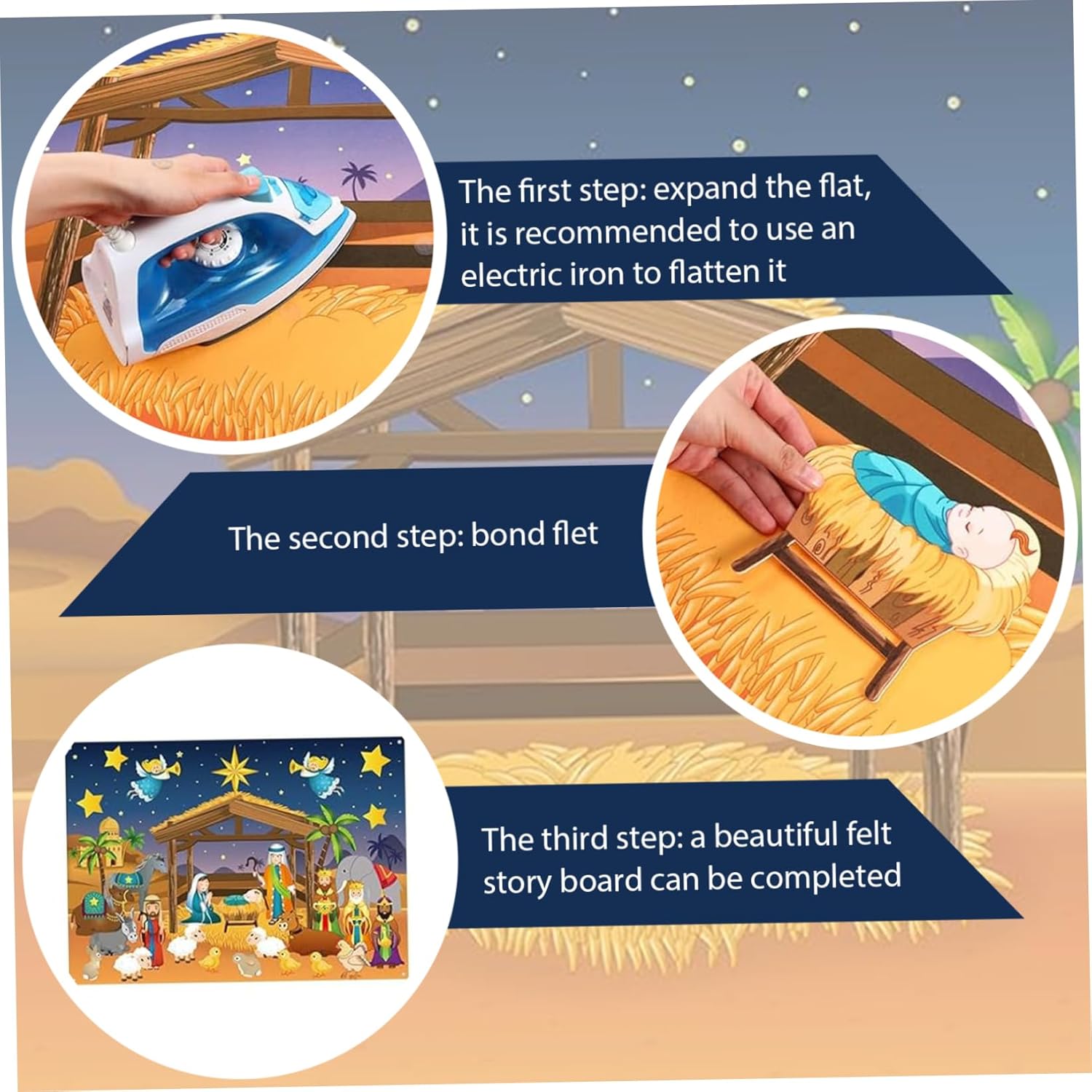 Valore educativo e religioso: aiuta a insegnare ai bambini la storia della nascita di Gesù in modo interattivo e pratico, promuovendo la comprensione spirituale e il legame familiare durante le vacanze Materiale in feltro di alta qualità: realizzato in tessuto di feltro morbido e affidabile, questo tabellone e gli ornamenti sono sicuri e delicati per i bambini, garantendo un uso duraturo e facile da maneggiare Tabellone narrativo interattivo: coinvolge i bambini nel gioco creativo con questo tabellone in feltro che dà vita al presepe, incoraggiando l'immaginazione e incoraggia l'apprendimento Set completo del presepe: include tutte le figure essenziali del presepe ed elementi per un'esperienza artigianale natalizia significativa, ideale per decorazioni natalizie in interni e racconti festivi. Decorazione murale versatile: perfetta come decorazione murale per il presepe di Natale, questo set di tavole in feltro aggiungerà un tocco affascinante e significativo alla tua casa o classe, combinando lo spirito natalizio con il divertimento educativo