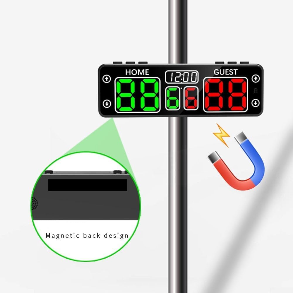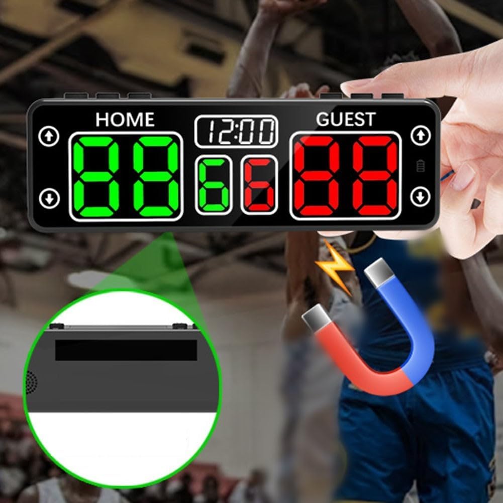 Tabellone segnapunti elettronico: monitora i punteggi senza sforzo con questo tabellone segnapunti ricaricabile a LED dotato di un display super luminoso per una chiara visibilità anche all'aperto. Il retro magnetico consente un facile fissaggio a telai in ferro pareti o tavoli rendendolo di lunga durata e portatile per vari sport Display a LED: goditi un vivido schermo a LED che mostra i punteggi da 0 a 99 e i tempi da 0 a 9 utilizzando 6 pulsanti in gomma e 4 pulsanti touch per regolazioni rapide. Questo design evita confusione durante partite frenetiche come basket calcio o rugby Batteria ricaricabile: fino a 24 ore di uso continuo con una singola carica eliminando la necessità di frequenti cambi di batteria. La leggera struttura in plastica ABS di circa 15,5 x 5 x 2,6 cm garantisce un facile trasporto senza compromettere la durata Uso versatile: adatto per diversi sport con la palla, tra cui pallacanestro, calcio e biliardo, questo tabellone segnapunti può essere appeso posizionato o attaccato tramite magneti. Le sue dimensioni compatte di circa 450 g lo rendono una scelta generale per eventi interni ed esterni Per un funzionamento semplice: con un tocco intuitivo e pulsante aumenta o diminuisce rapidamente i valori per mantenere punteggi accurati La robusta struttura e il display chiaro aiutano a evitare errori fornendo un modo affidabile per gestire i momenti di gioco