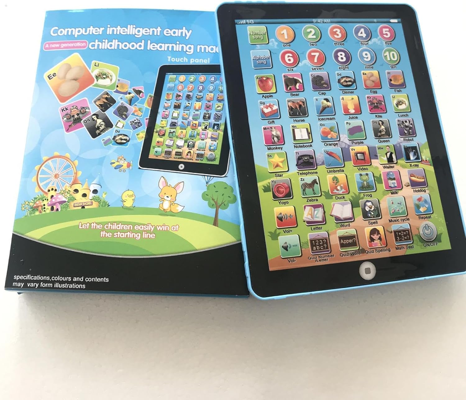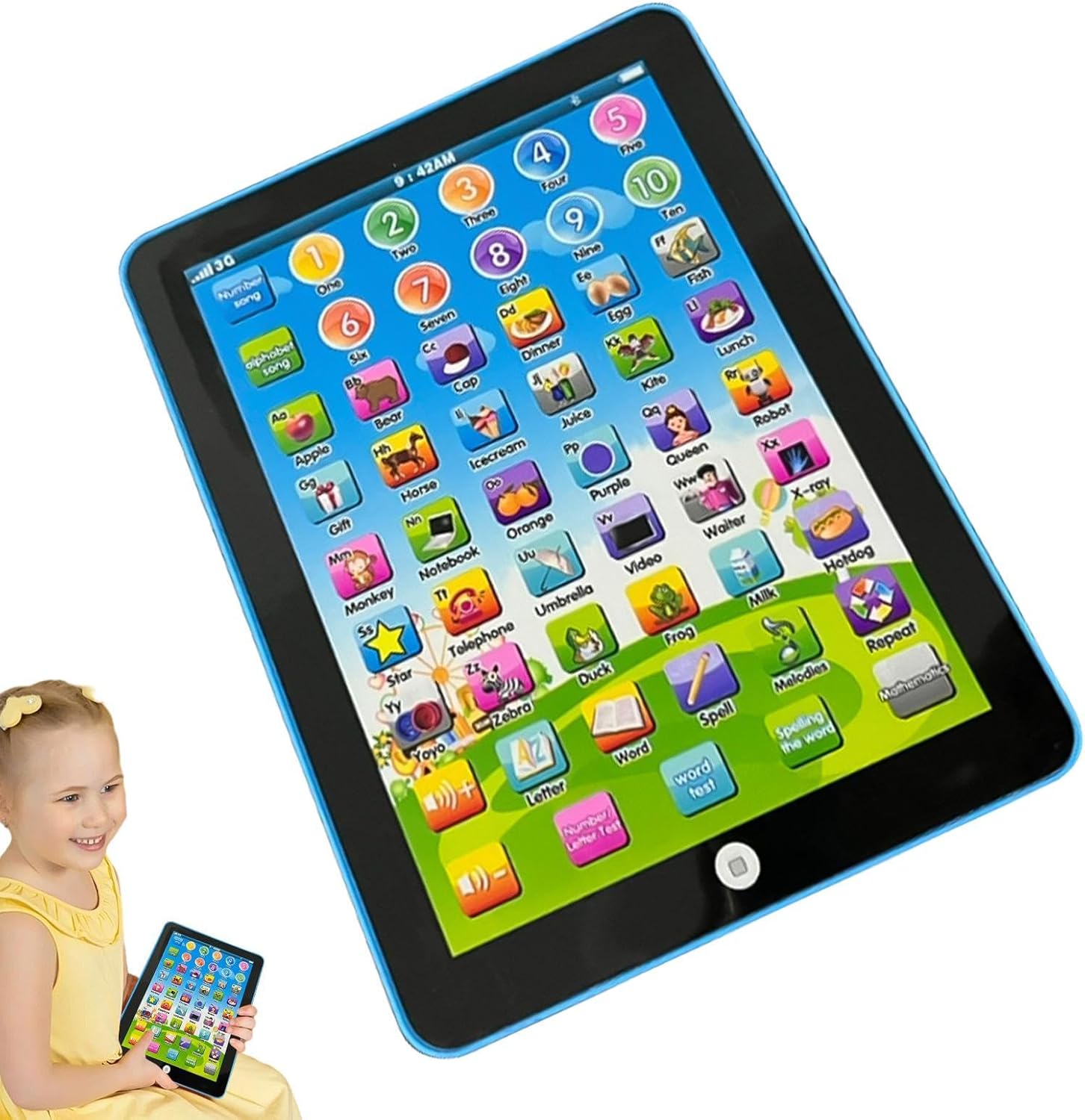 Facilità di trasporto: incoraggia la curiosità e la creatività del tuo bambino con i nostri bambini sul tablet. È un dispositivo educativo portatile che fornisce una varietà di giochi e applicazioni progettate per ammorbidire gli occhi dei bambini mentre si pongono le basi per l'educazione all'asilo. Giudici interattivi: questo giocattolo musicale per bambini piccoli presenta una gamma di melodie e canzoni che portano i giovani a logicamente e risolvere i problemi in modo indipendente. Con il suo stile di apprendimento attivo e le sue domande coinvolgenti, offre un"esperienza educativa divertente. Adatto per fare regali: questo tablet per bambini è un regalo meraviglioso per i bambini di età superiore ai 3 anni che amano imparare e giocare. Viene fornito con app e giochi preinstallati adatti a ragazzi e ragazze. Promuovi l'apprendimento precoce: incoraggia l'apprendimento precoce nel tuo bambino con questo tablet per bambini per bambini. Promuove una pronuncia chiara e standard e mostra immagini intriganti per migliorare il tuo interesse ed energia. Possono praticare parole ortografiche e imparare lettere e vocabolario tramite un pulsante a sfioramento per un'esperienza divertente ed educativa. Design interessante: lascia che tuo figlio impari l'alfabeto con un tablet interattivo per bambini. Può riprodurre canzoni, parole incantesimo e fornire più modalità. La regolazione del volume lo rende perfetto per qualsiasi ambiente. Richiede 3 batterie non incluse.
