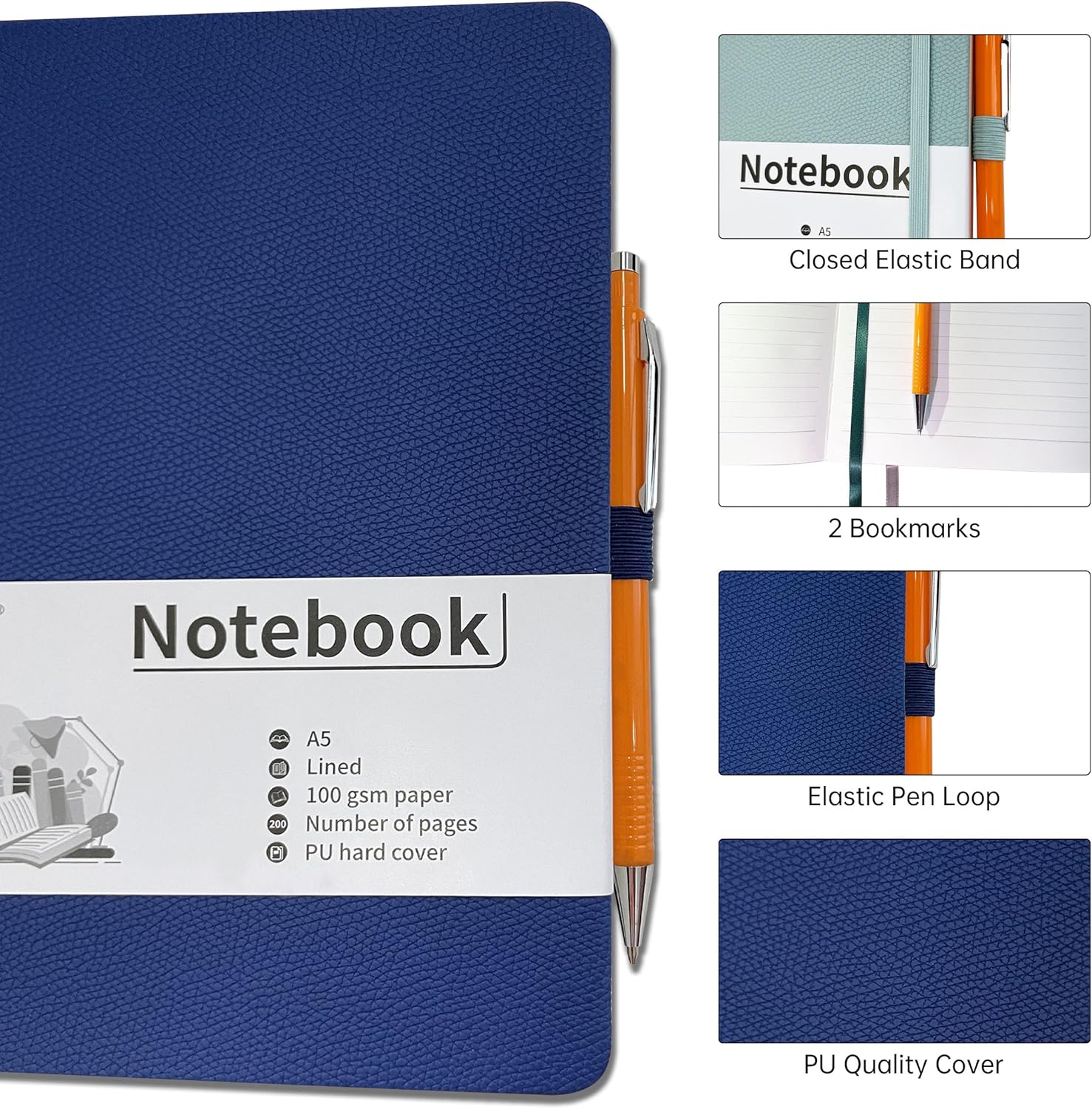 NOTEBOOK CON COPERTURA RIGIDA: Notebook Mlife A5 La custodia squisita è resistente e morbida al tatto; la robusta copertura in pelle PU impedisce che la carta interna venga danneggiata; taccuino con due segnalibri Facile da riporre e una solida fascia elastica con una larghezza di 7 mm impedisce al taccuino di aprirsi costantemente e protegge bene le pagine. DIMENSIONE ADATTA: Il taccuino misura 21,3 × 14,6 cm (5,75 x 8,38 pollici), è realizzato in carta spessa color crema senza acidi da 100 g/m², con 200 pagine e interlinea di 7 mm, la carta ha un alto profilo di inchiostro per evitare sbavature ed è adatta per la maggior parte delle penne. DESIGN PERSONALIZZATO: Sul retro del taccuino c'è uno scomparto organizzativo per carte e appunti oltre ad adesivi per personalizzare la tua agenda, sul lato dei taccuini c'è una cinghia per tenere la penna ed evitare di perdere oggetti, rendendolo molto comodo per trasportare piccoli oggetti. DISPONIBILE NELLA VERSIONE A RIGHE E A PUNTI: Il taccuino è disponibile in 9 colori accuratamente selezionati per soddisfare le tue esigenze in diverse occasioni, anche a righe e a punti. I notebook sono facili da livellare a 180° per facilitare la scrittura e la lettura. AMPIO UTILIZZO: il taccuino A5 è perfetto per diari di viaggio, ricerche, annotazione pensieri, diario e appunti di riunioni, rendendolo ideale per la scuola e l'ufficio. È la scelta migliore per un regalo di Natale, compleanno, Capodanno o laurea.