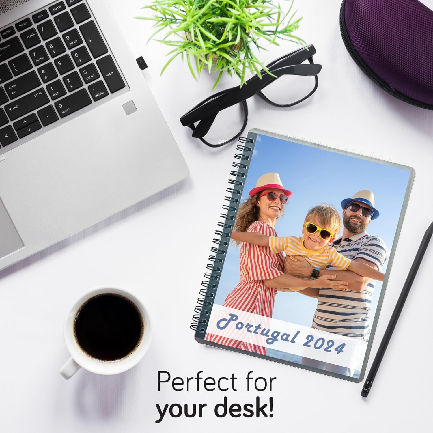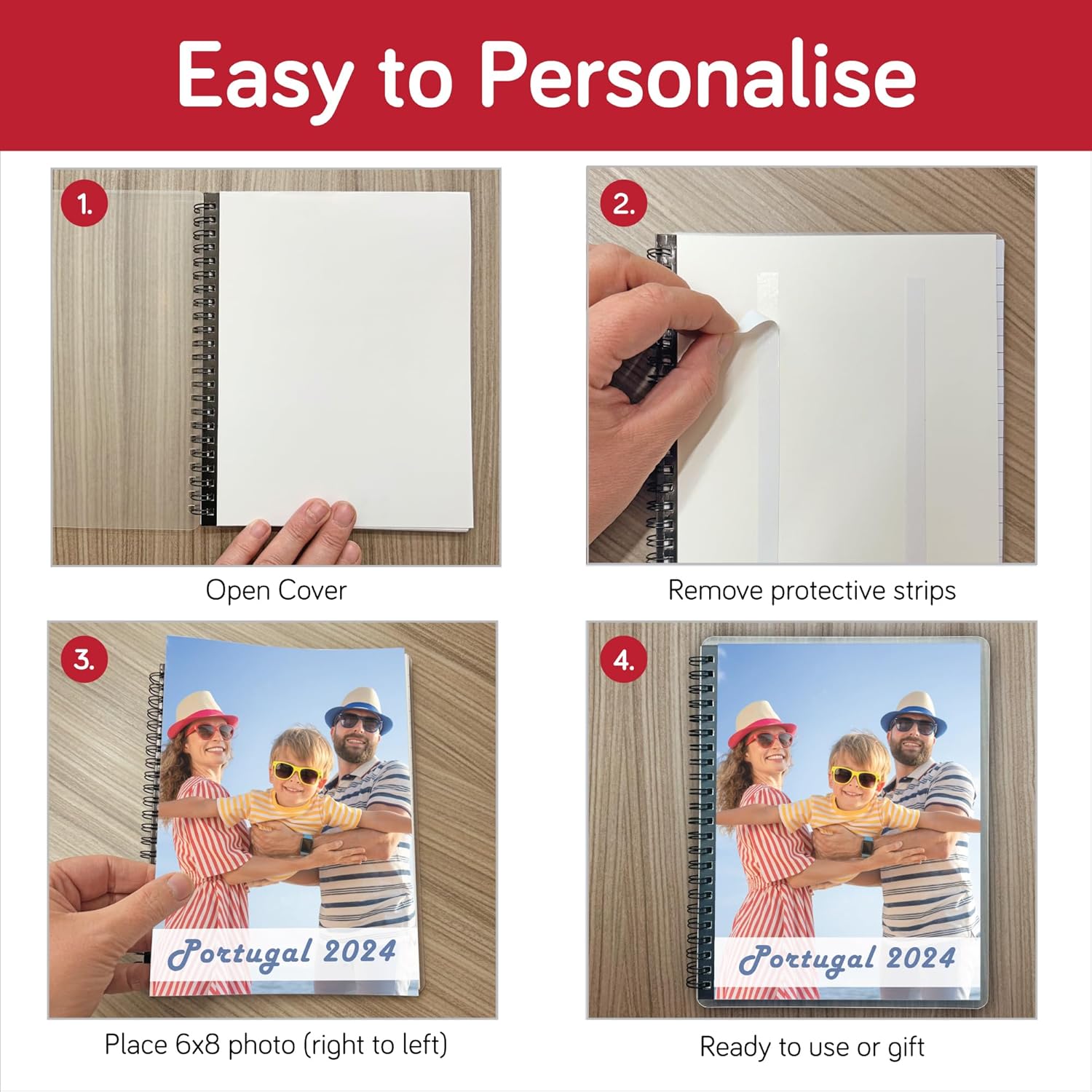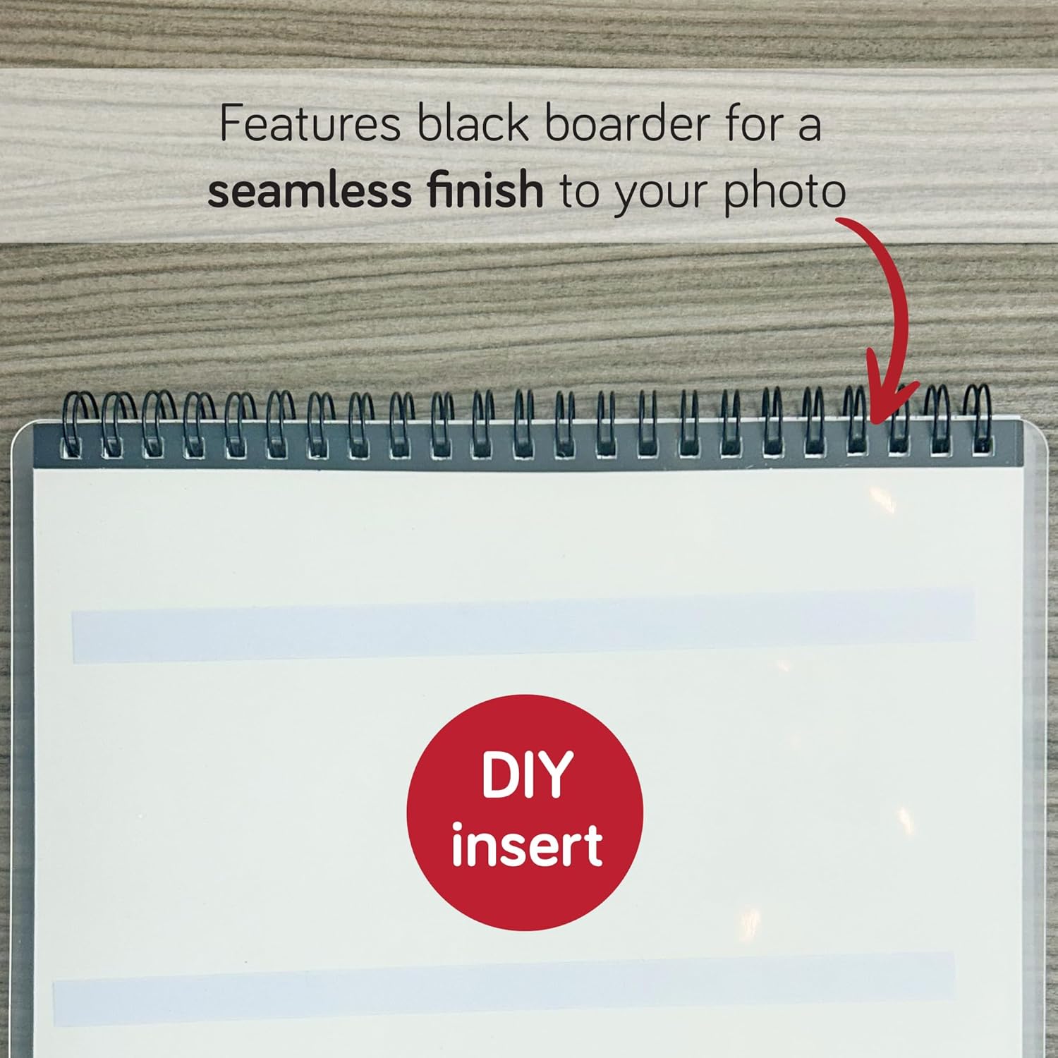 Quaderno personalizzato: il nostro quaderno a spirale A5 può essere personalizzato comodamente a casa tua in soli 10 secondi. Facile da inserire nella tua foto, arte o immagine da 6" x 8", basta staccare le strisce adesive e inserire l'immagine per personalizzare la copertina. Contiene 120 pagine di carta comune e a righe da 100 g/m² di qualità, quaderno a righe con spaziatura di 8 mm, che offre molto spazio per scrivere. Nota: le immagini non possono essere modificate poiché per la personalizzazione viene utilizzato l'adesivo. CARTA PREMIUM: contiene carta comune e a righe da 100 g/m² con 120 pagine morbide al tatto, ideali per scrivere, quaderni di schizzi o quaderni personali. Design pratico: questo diario personalizzato ha molto fascino, con uno stile moderno contemporaneo e pratico. Dispone di coperture protettive per mantenere le tue foto o opere d'arte al sicuro e un bordo nero per una finitura perfetta del tuo inserto. All'interno delle spirali è possibile riporre anche una penna per tenerla al sicuro e prendere appunti velocemente. Coperture protettive: questo notebook è dotato di coperture in plastica morbida con angoli arrotondati sulla parte anteriore e posteriore, che rendono il notebook resistente, pratico e protegge il tuo design personalizzato durante l'uso. La parte anteriore ha una copertura trasparente, mentre la parte posteriore presenta un'elegante copertura smerigliata. È rilegato a spirale e facile da appiattire a 180° per scrivere e leggere comodamente. REGALO PERFETTO: questo quaderno A5 è un regalo personalizzato perfetto per un compleanno, un anniversario, una vacanza o un Natale. Ideale per diari di scrittura personale, diari di viaggio, quaderni aziendali per ufficio, regali promozionali e di marca, quaderni universitari e scolastici, quaderni di diario, diario di proiettili e altro ancora.