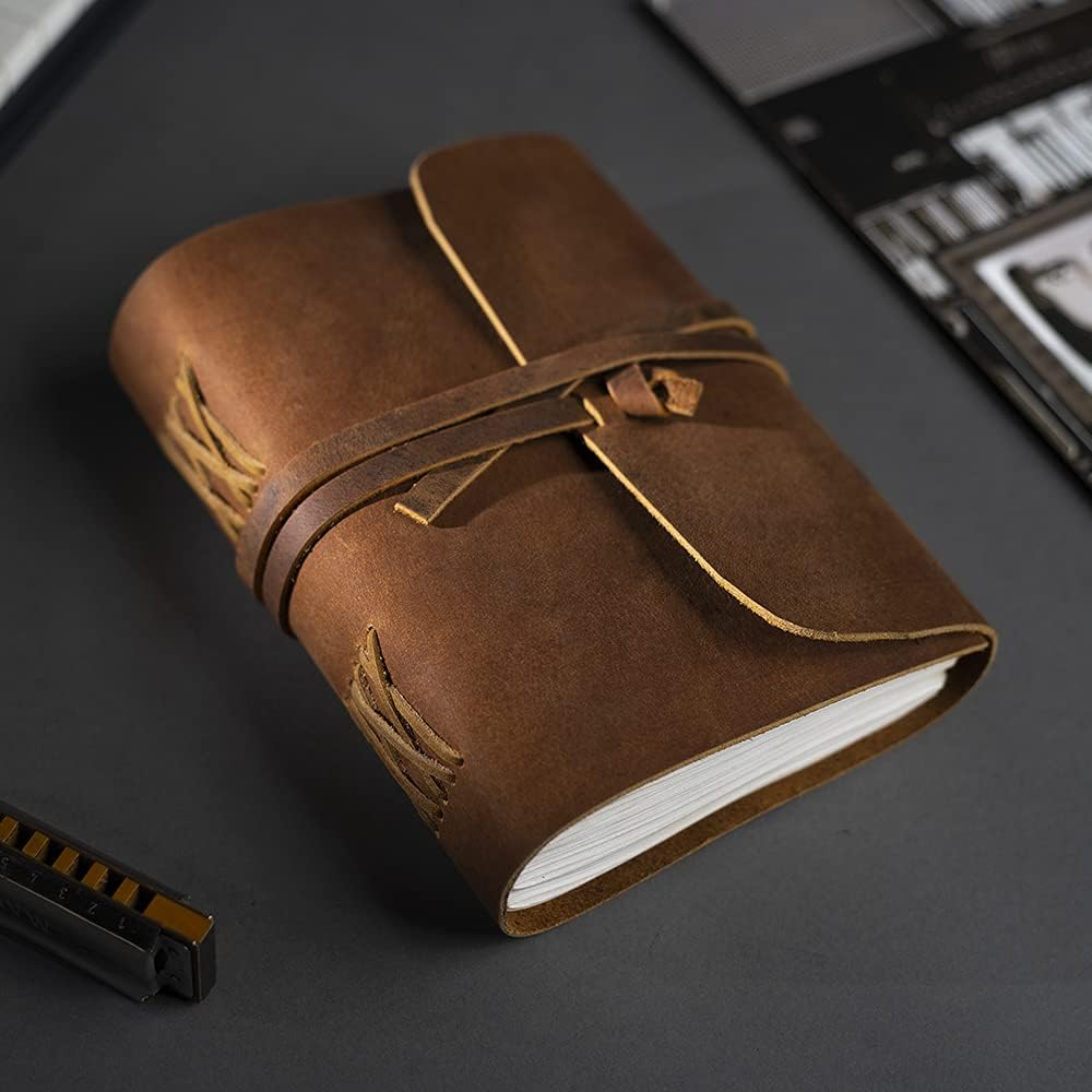 ✔️ MERAVIGLIOSAMENTE FATTO A MANO Quaderno in pelle pieno fiore di alta qualità, spesso, al 100% che ha un bell'aspetto, un profumo e una sensazione fantastica. La pelle di bufalo conciata al vegetale invecchierà con carattere o semplicemente cancellerà i segni, se lo desideri. Un ricordo per tutta la vita dei tuoi pensieri e delle tue espressioni. ✔️ UN REGALO SENZA TEMPO: fai un regalo che potrà essere apprezzato per sempre. Ideale come diario in pelle, quaderno di schizzi, diario di scrittura, diario di poesia: l'unico limite è la tua immaginazione. È un regalo perfetto per donne o uomini. ✔️ LA CARTA DI COTONE RICICLATA PREMIUM è priva di acidi, sostanze chimiche e alberi. Goditi 240 pagine (120 fogli) di carta spessa BIANCA senza righe da 120 g/m². La carta adatta alle penne stilografiche previene le sbavature. (NON RICARICABILE) ✔️ ATTENZIONE AI DETTAGLI I nostri esclusivi quaderni in pelle sono realizzati con cura per la qualità. Amerai l'aspetto, la sensazione e la longevità. ✔️ Disponibile anche su Amazon in Avorio (B07YR3R2W9) e Flower Deckle (B08JD5971K). ✔️ La nostra promessa: se per qualsiasi motivo non ami i tuoi pezzi di Wandering Leathercraft, faccelo sapere e faremo la cosa giusta per te, senza fare domande.