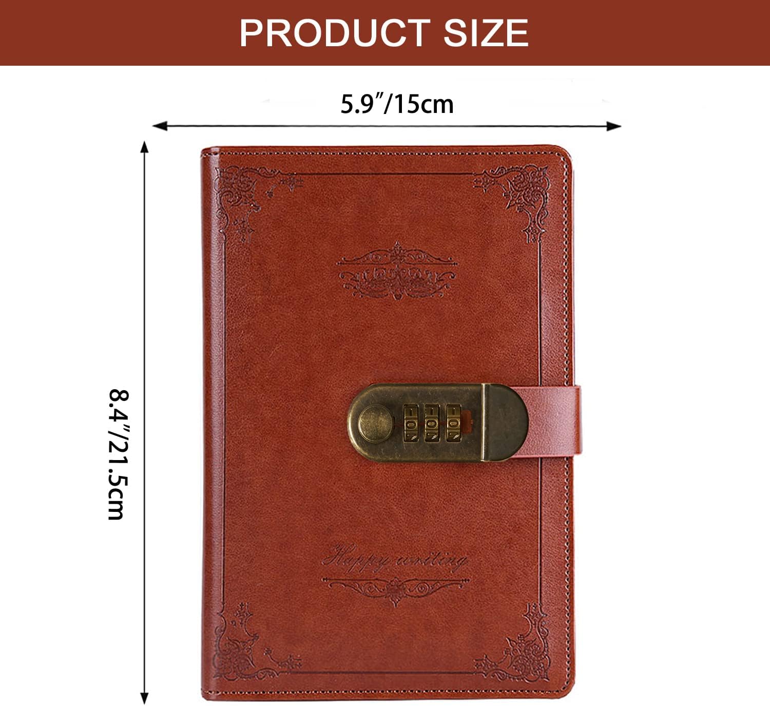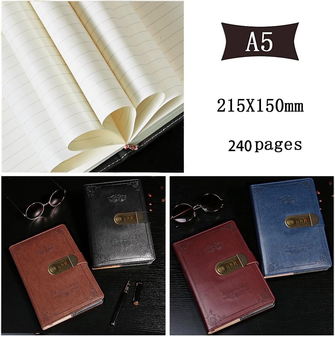 ❤Diario in pelle PU: aumenta la qualità, il tocco gradevole, è un regalo perfetto come diario o quaderno. 120 fogli di carta a righe. Carta ecologica da 100 g/m², consistenza chiara, scrittura fluida, inchiostro impermeabile, danni antirughe, bella e durevole. Ti dà una buona scrittura. ❤Design unico e bellissimo: il lucchetto a combinazione facile da usare mantiene i tuoi segreti al sicuro. Notebook con serratura in metallo antico, aggiunge un tocco di moda retrò: 0-9 tre cifre, funzionamento semplice, buona riservatezza. ❤Diario con codice: perfetto per chi è alla ricerca di un diario con lucchetto, un diario con password o un elegante taccuino ricaricabile. Diario personale con codice: leggere attentamente il manuale utente in inglese. Se hai dimenticato la tua nuova password, contattaci. ❤Design SENZA DATA - non è datato, quindi puoi iniziare a usarlo in qualsiasi momento dell'anno, senza perdere una pagina. Sta a te inserire i mesi e le date. La carta interna può essere rimossa man mano che si riempie e vengono aggiunte delle sostituzioni. Quindi la copertura in pelle può essere utilizzata a lungo. Cerca B0B1ZV9GNY se hai bisogno delle ricariche della pagina interna. ❤Ottimo regalo: qualità lussuosa e premium, ideale per donne e uomini. Questo squisito diario sarà un regalo meraviglioso per i tuoi amici, familiari e persone care. È un fantastico regalo di compleanno o anniversario. Ideale per impiegati, imprenditori, studenti, insegnanti, creativi.