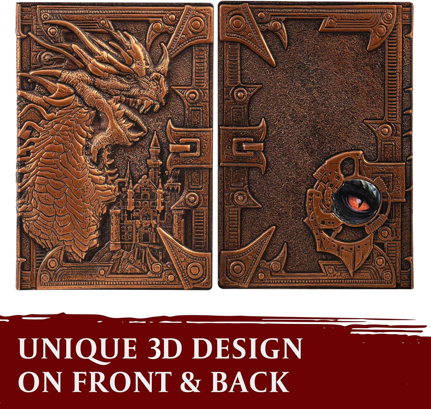 Splendido design 3D: la parte posteriore e anteriore hanno un design in rilievo unico a tua scelta. Stupisci tutti coloro che hanno la possibilità di posare gli occhi su questo diario fatto a mano! VERSATILE E INCLUDE PENNA: usalo come quaderno, diario, quaderno di schizzi, pianificatore alimentare, scrivi i tuoi incantesimi, la lista dei tuoi nemici, la lista delle cose da fare, la lista della spesa. Carta e penna, gli usi sono illimitati! FORMATO A5 COMPATTO: il nostro design da 5,7 x 8,4 pollici è fatto per essere portato in giro, sia per la tua sessione di gioco di ruolo settimanale, durante il viaggio o al lavoro. CARTA SPESSA HQ: 100 fogli/200 pagine di carta spessa che può essere utilizzata su entrambi i lati senza che l'inchiostro fuoriesca dall'altro lato! FANTASTICA IDEA REGALO: regalo perfetto per qualsiasi giocatore DnD o DM o chiunque ami i libri fantasy o le serie DnD, tutti hanno bisogno di un bellissimo taccuino!