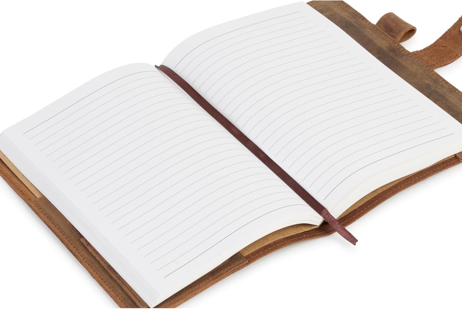 ARTIGIANATO DI ALTA QUALITÀ: sperimenta l'eleganza e la resistenza con il nostro diario di viaggio fatto a mano, rilegato in pelle di bufalo conciata al vegetale. Questo processo di concia al vegetale non solo preserva la robustezza della pelle, ma le conferisce anche una finitura liscia e una consistenza invecchiata che migliora con l'uso. Questo taccuino in pelle è la scelta perfetta per un diario o un taccuino in pelle. SCRITTURA RAFFINATA CON STILE: Proteggi i tuoi pensieri e appunti con stile. Il nostro taccuino in pelle è dotato di 240 pagine di carta a righe di alta qualità, ideale per scrivere senza sforzo. Il suo design compatto garantisce una perfetta portabilità, pur mantenendo un equilibrio tra funzionalità ed estetica. Questo bellissimo taccuino è perfetto per un diario o un taccuino da viaggio in pelle. COMFORT OTTIMIZZATO PER L'USO QUOTIDIANO: Progettata per il comfort di chi scrive, la nostra agenda in pelle include un segnalibro e una chiusura elastica che assicura che rimanga chiusa quando non viene utilizzata. La copertura in pelle flessibile si adatta ai tuoi movimenti, permettendoti di scrivere comodamente per ore. Ideale per un quaderno da viaggio da compilare o un quaderno per l'agenda. CARATTERISTICHE DUREVOLI E REALIZZATE A MANO: Ogni diario in pelle è meticolosamente realizzato a mano utilizzando metodi di produzione sostenibili, evidenziando il nostro impegno per la qualità e l'ambiente. La carta è realizzata con pasta di legno e coloranti naturali, garantendo che ogni pagina sia un piacere su cui scrivere. Questo taccuino vintage o taccuino originale è fatto per durare. ELEGANZA IN OGNI DETTAGLIO: La ricca trama della pelle di bufalo e il design sofisticato delle pagine a righe rendono questo taccuino in pelle non solo uno strumento funzionale ma anche un pezzo di tendenza. Il suo aspetto classico si abbina a qualsiasi outfit, sia per un ufficio che per uno spazio creativo a casa. Questo bellissimo taccuino è anche un fantastico regalo vintage per donne o un diario di viaggio per adulti.