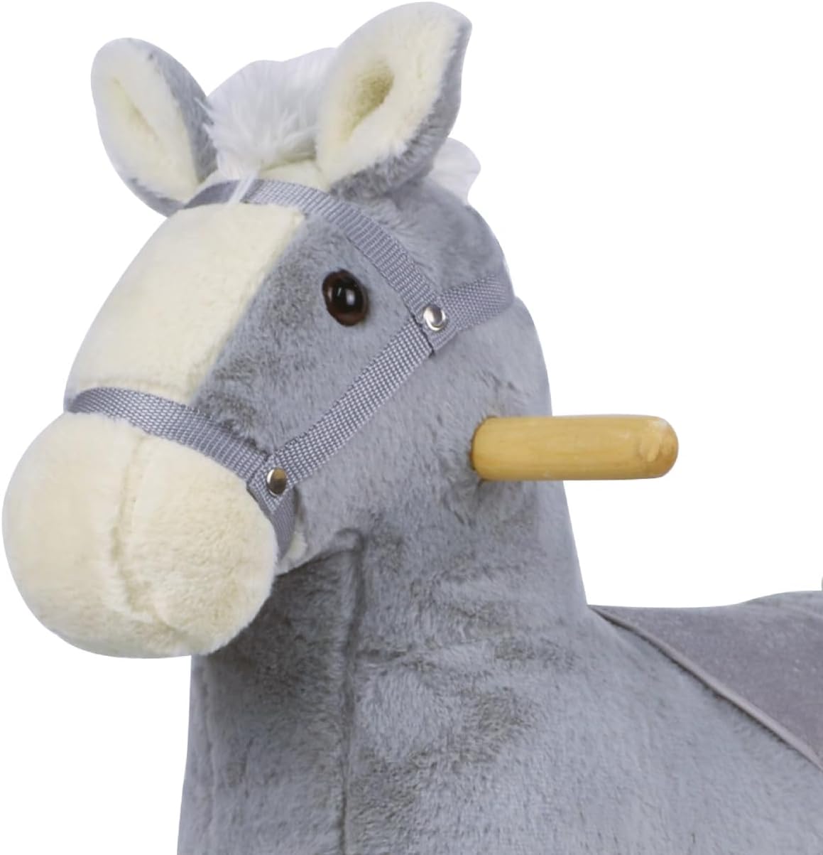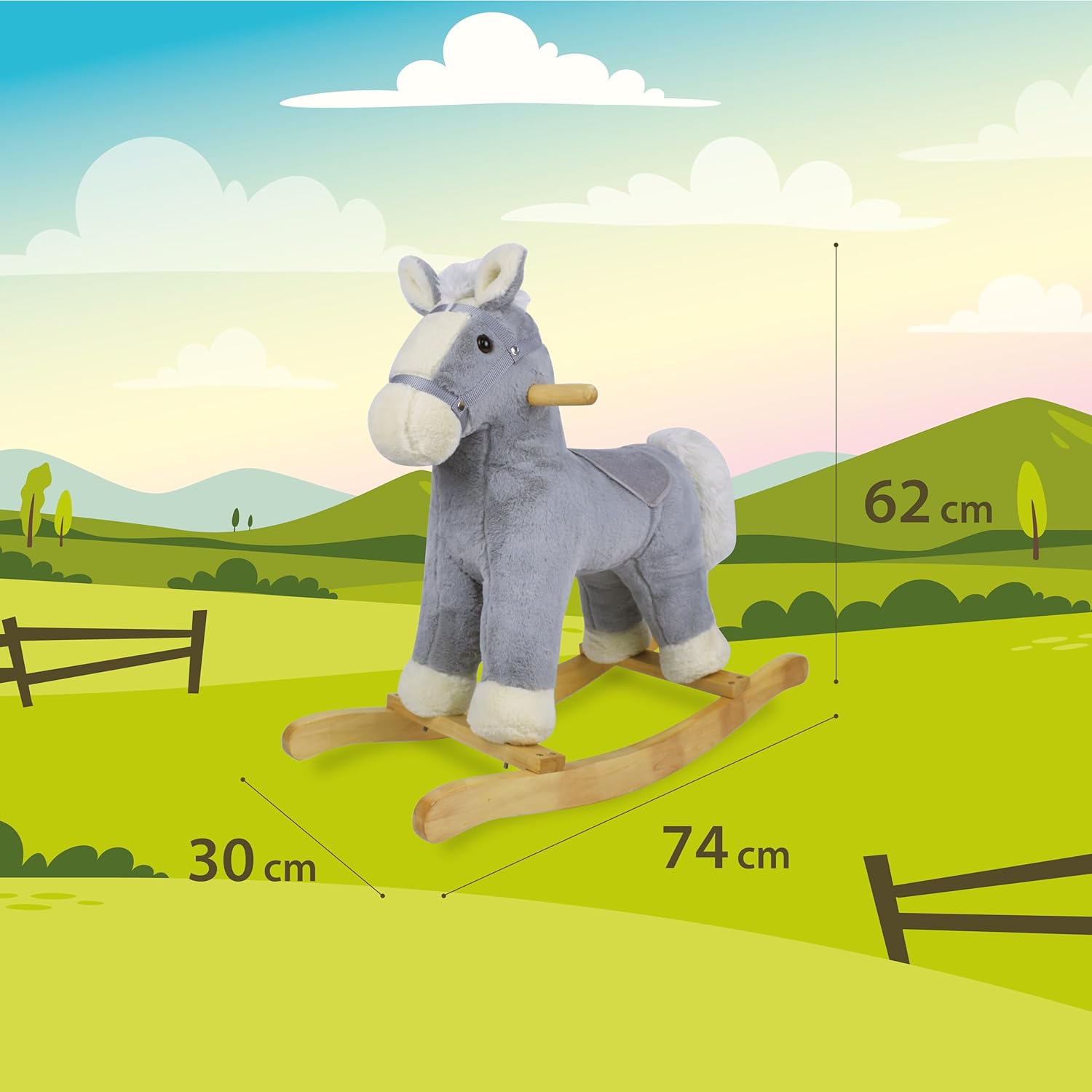 PONY BALANCIN LEGNO. Realizzato in morbido velluto stile peluche. Struttura in legno di alta qualità. Include impugnature su entrambi i lati della testa per una presa sicura del bambino favorendo la sua stabilità durante il gioco Suono Il pony a dondolo risveglierà l'immaginazione dei più piccoli in quanto include suoni di galoppo per dare più realismo al gioco. VANTAGGI DEL GIOCO. Perfetto per stimolare l'equilibrio e rafforzare la schiena. Li aiuterà a imparare a controllare la forza. È un primo passo per sviluppare abilità motorie grazie alle quali sarai in grado di svolgere attività sempre più complesse. Alta qualità e sicurezza. Realizzati pesando sulla sicurezza e sul comfort di ragazzi e ragazze. Tutti gli articoli passano i controlli di sicurezza richiesti dalla legge. Materiali di prima qualità per garantire la durata. DIMENSIONI. Le dimensioni sono 62 cm di altezza, 40 cm di croce, 74 cm di lunghezza e 30 cm di larghezza. Consigliato per ragazzi e ragazze dai 18 mesi in su.