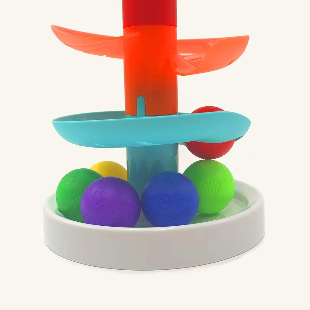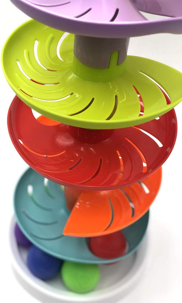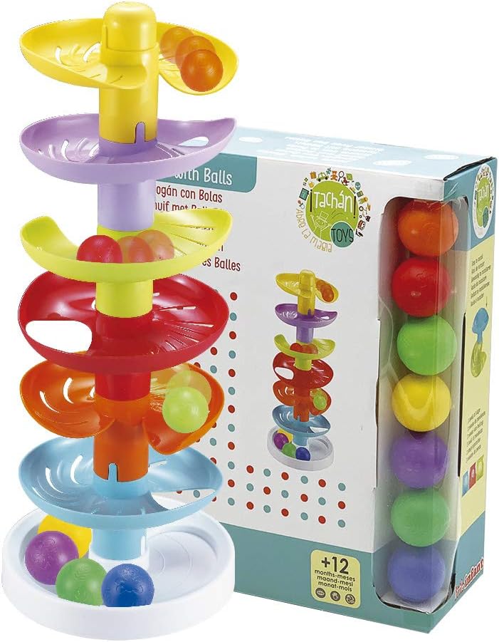Giocattolo orientato al bebè e alla prima età del bambino. In questo scivolo a spirale, colorato e con 7 altezze, il bambino sperimenterà come le palline rotolano e arrivano fino alla fine Con questo gioco il bambino sviluppa manualità con cui facilmente posizionerà le palline nel punto di partenza, ed è molto adatto per la stimolazione visiva nonché per la coordinazione mano e occhio. Facile da installare, lo scivolo dispone di 3 livelli di orecchino che ti danno più emozione. Funzionamento senza batterie.