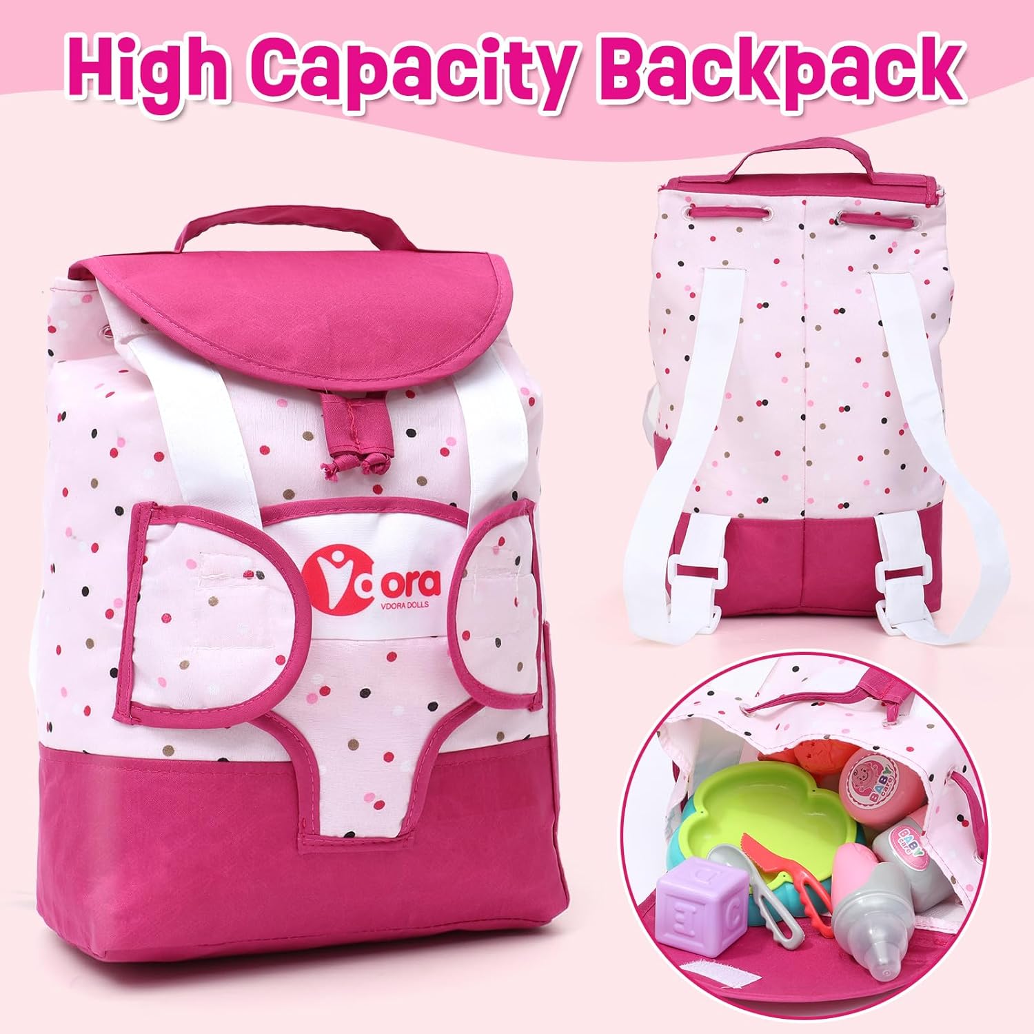 Set Include - Il nostro set di accessori per bambola bambina contiene tutto ciò di cui il tuo piccolo ha bisogno per giocare di ruolo: zaino, vasino, pannolino, bagnoschiuma, bottiglia di crema, talco per bambini, bavaglino, piatto, coltello, cucchiaio, forchetta, pacificatore, biberon, scarpe, alfabeto giocattolo da impilare. Sviluppo Delle Abilità - Accessori per bambole super divertenti, intrattieni i tuoi bambini per ore. Giocare con questi giocattoli bambina 2 3 4 5 6 anni, simulando il processo di cura del bambino, può migliorare l'immaginazione e il pensiero creativo di tuo figlio, oltre a sviluppare capacità di cura di sé, capacità motorie, coordinazione occhio-mano e relazioni sociali. Design Portatile - Lo zaino è progettato con marsupio bambole in modo che i bambini possano trasportare facilmente la loro bambola. La borsa ha una grande capacità e può contenere tutti gli accessori giocattolo per bambolotto bambina. I bambini possono riporre gli giocattoli nella borsa e portarli ovunque per giocare con gli amici. Sicuro e Durevole - Il nostro set di accessori bambole è progettato appositamente per i più piccoli, tutti gli accessori per bambola sono realizzati in plastica di alta qualità. Bordi lisci, atossici e inodore, dal design accattivante e molto resistenti. Ottimo Regalo - Fantastici set di giocattoli per la cura del bambino per bambina bambini, possono essere usati come regali di compleanno, regali di Natale, regali di festa e fantastiche aggiunte per gioco di ruolo. Questo è l'inizio perfetto per la collezione di giocattoli di tuo figlio.