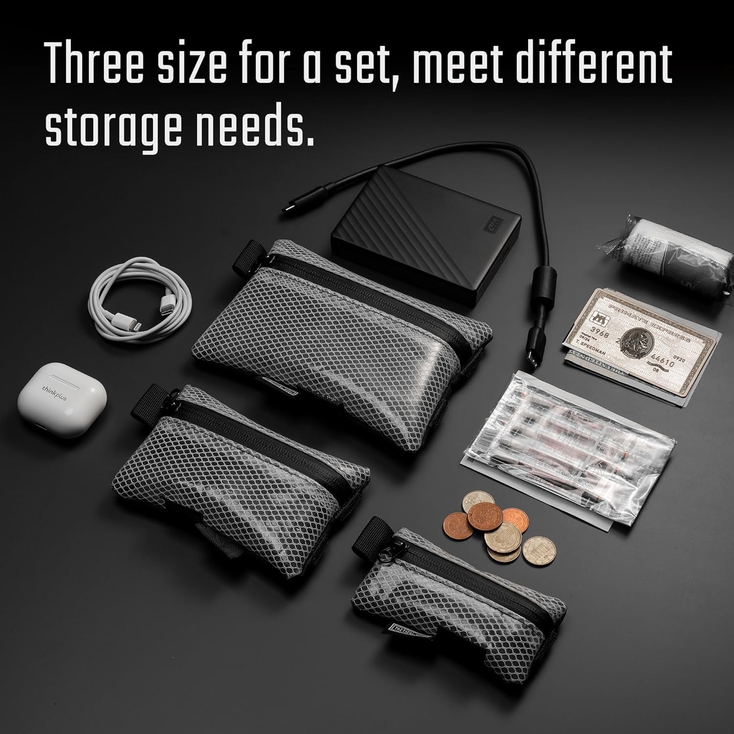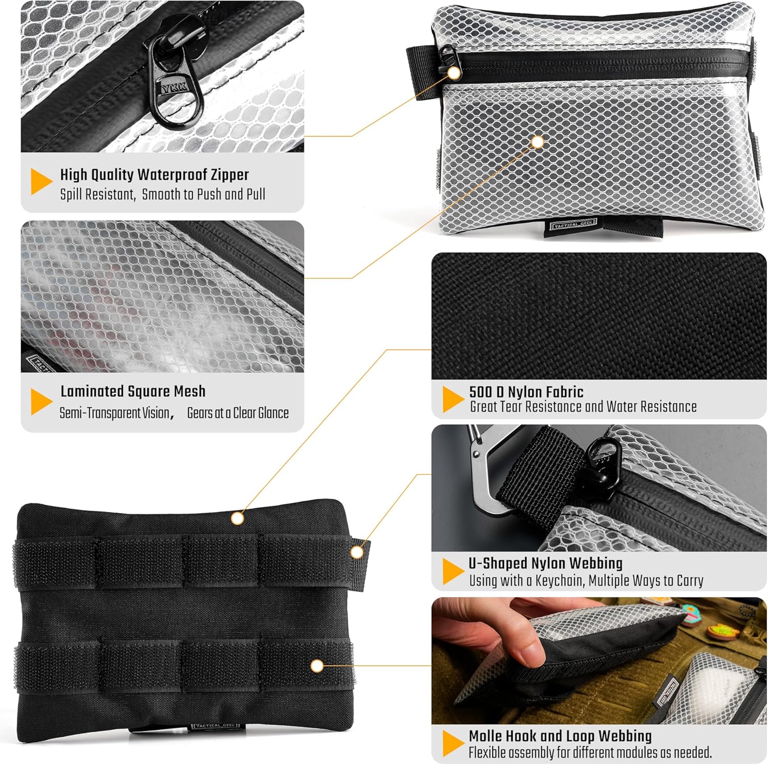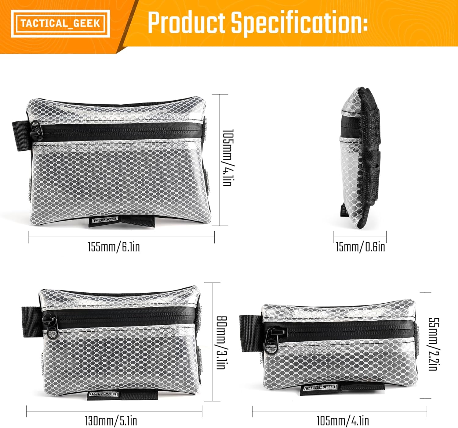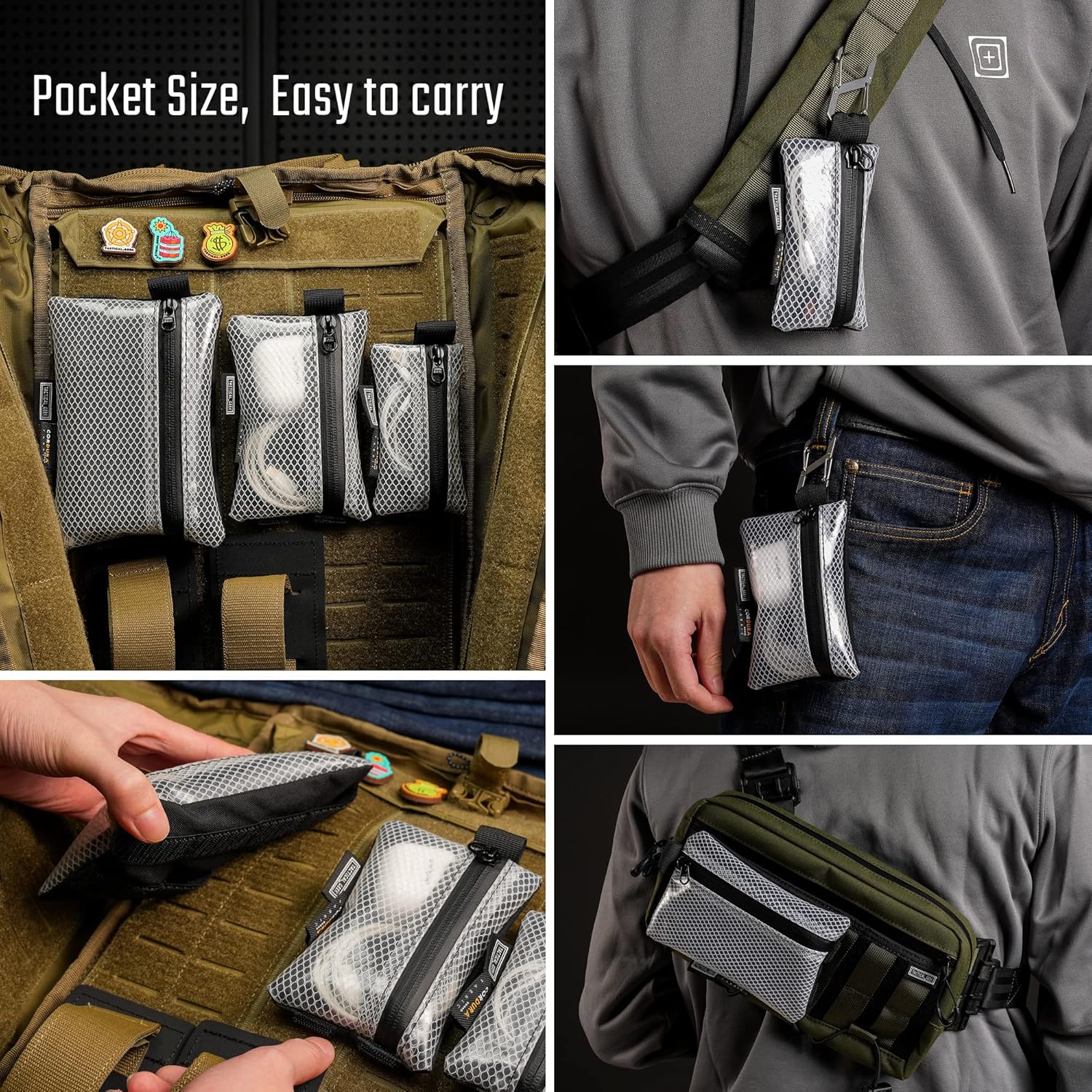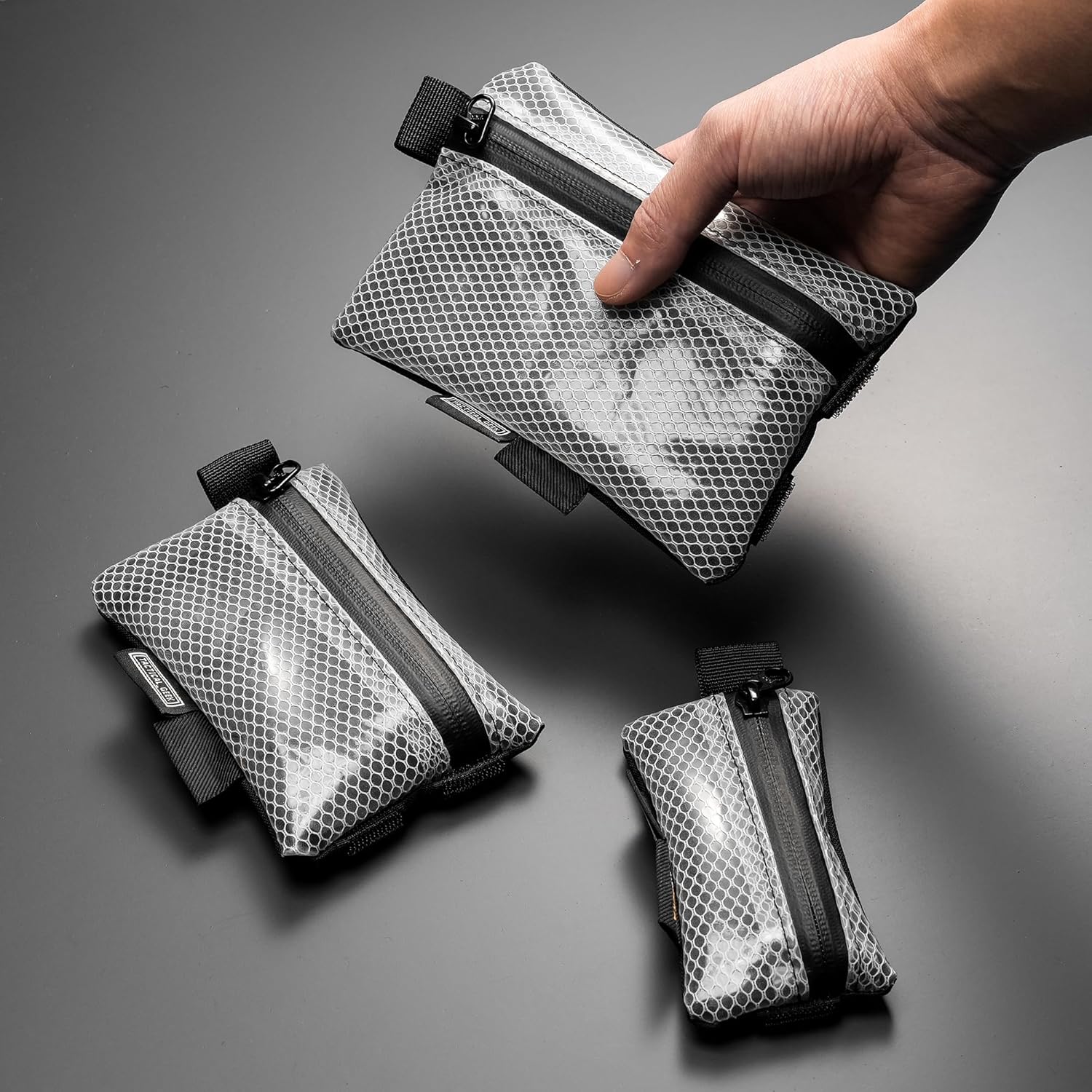 Realizzati in materiale PVC resistente, i sacchetti a rete sono impermeabili e non si strappano facilmente; il materiale PVC superiore rende i sacchetti facili da pulire e riutilizzabili. La chiusura a zip è molto comoda da usare. Con un design trasparente, è possibile trovare e organizzare rapidamente i propri oggetti personali. Tenete gli oggetti ben organizzati e proteggeteli da acqua, polvere e graffi. 3 diverse dimensioni offrono diverse opzioni di imballaggio. Borsa piccola: 10,5 x 5 x 1,5 cm. Dimensioni della borsa: 13 x 8 x 1,5 cm. Borsa grande: 15,5 x 10,5 x 1,5 cm. Zaino, marsupio o qualsiasi altro luogo in cui si possa attaccare il velcro o il sistema Molle (verificare prima di ordinare). La nostra borsa organizer da viaggio può essere utilizzata come piccola borsa portaoggetti a casa, in viaggio, per lavoro, persino come borsa per la cancelleria o per la scuola. Utilizzato da migliaia di clienti felici come organizer, borsa da toilette per esterni, borsa per spugne appesa, dopp kit per bagagli, zaino, campeggio, sport, palestra. Ideale per organizzare i bagagli in valigia, nella borsa da viaggio e nello zaino. Se non siete soddisfatti della borsa a rete, contattateci prima, vi offriremo sicuramente una soluzione perfetta.