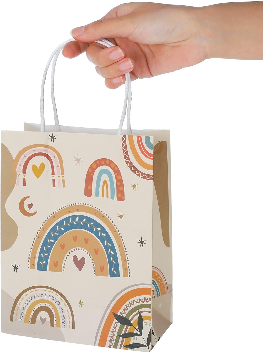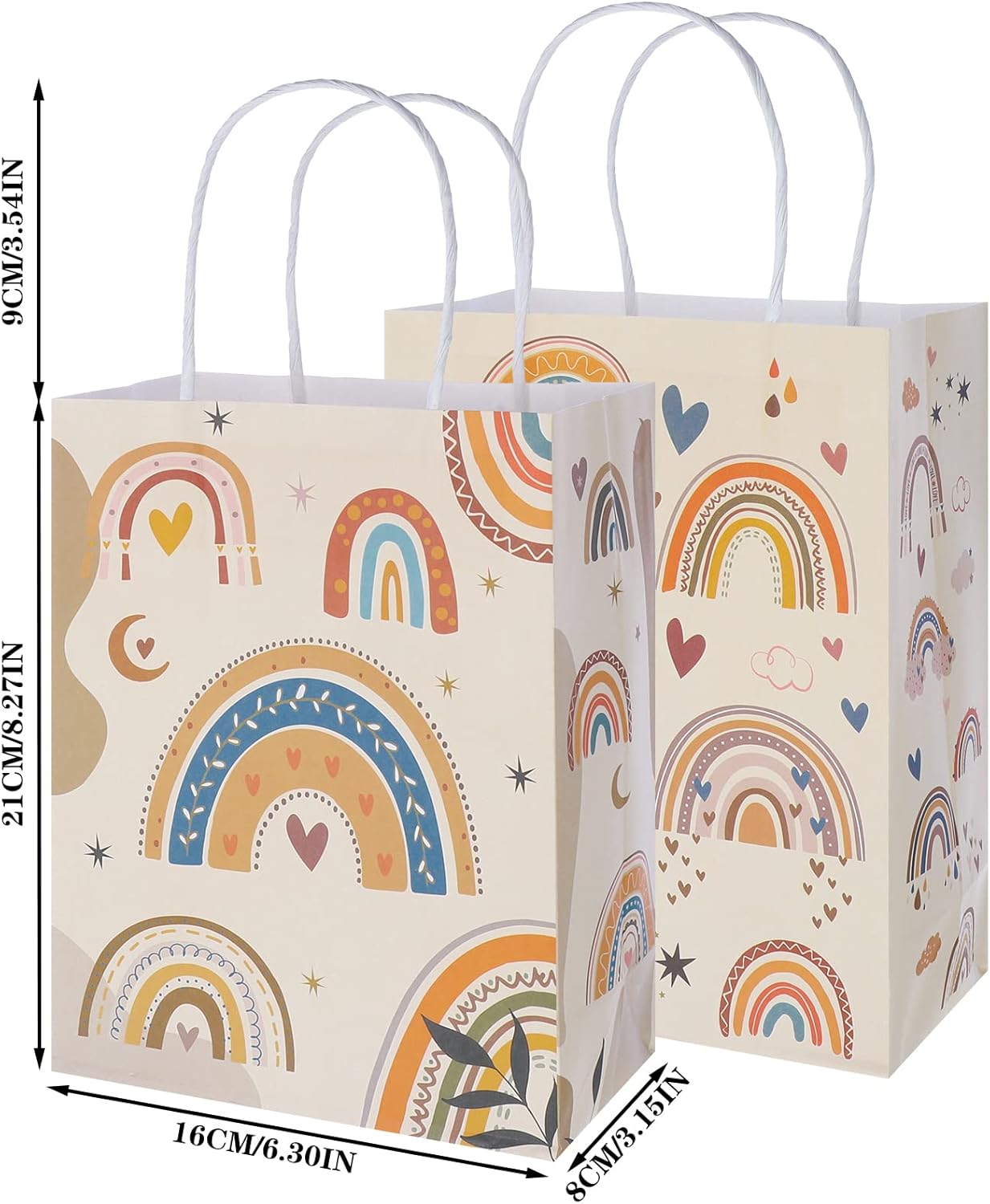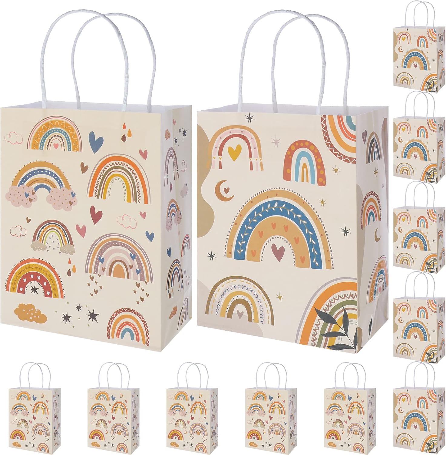 Set di sacchetti regalo - Riceverai 12 sacchetti di carta arcobaleno portatili in 2 tipi di stili e ogni stile ha sacchetti da 6 pezzi; Il design colorato può renderti felice ed entusiasta e puoi condividerlo con i tuoi amici più cari DESIGN ARCOBALENO - Sacchetti regalo personalizzati con design boho arcobaleno, aspetto semplice e design generoso e versatile, che soddisferanno il favore della maggior parte delle ragazze e attireranno facilmente la loro attenzione DIMENSIONE ADATTA - Ogni borsa da festa arcobaleno boho misura circa 21*16 cm, abbastanza spaziosa da contenere bomboniere o piccoli regali come cioccolatini, caramelle, regali, cupcake, biscotti, snack e altre forniture per feste MATERIALE DUREVOLE - La borsa da festa arcobaleno è realizzata di carta resistente con manici resistenti, resistente al colore e di buona qualità. Puoi usarli a lungo e le maniglie possono aiutarti a trasportarli e tenerli facilmente AMPIA APPLICAZIONE - Due diversi design creano una varietà di sacchetti regalo per compleanni, feste, vacanze, Natale, baby shower, anniversari, celebrazioni, San Valentino e altro ancora confezioni regalo