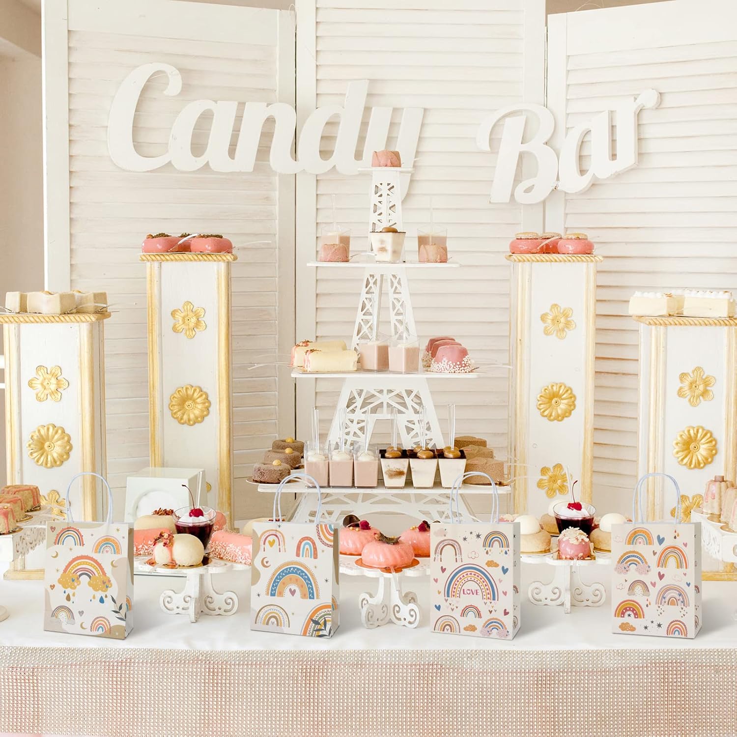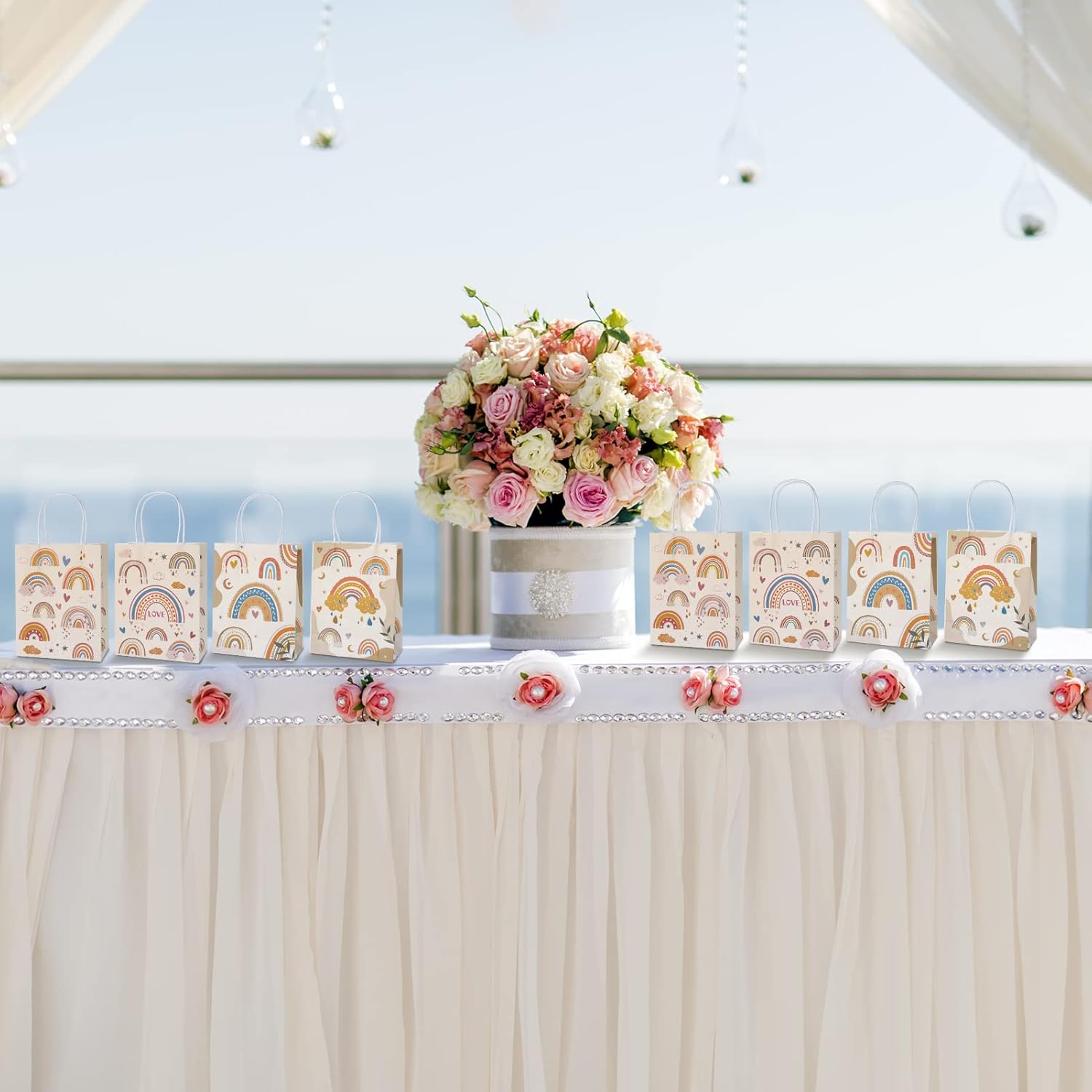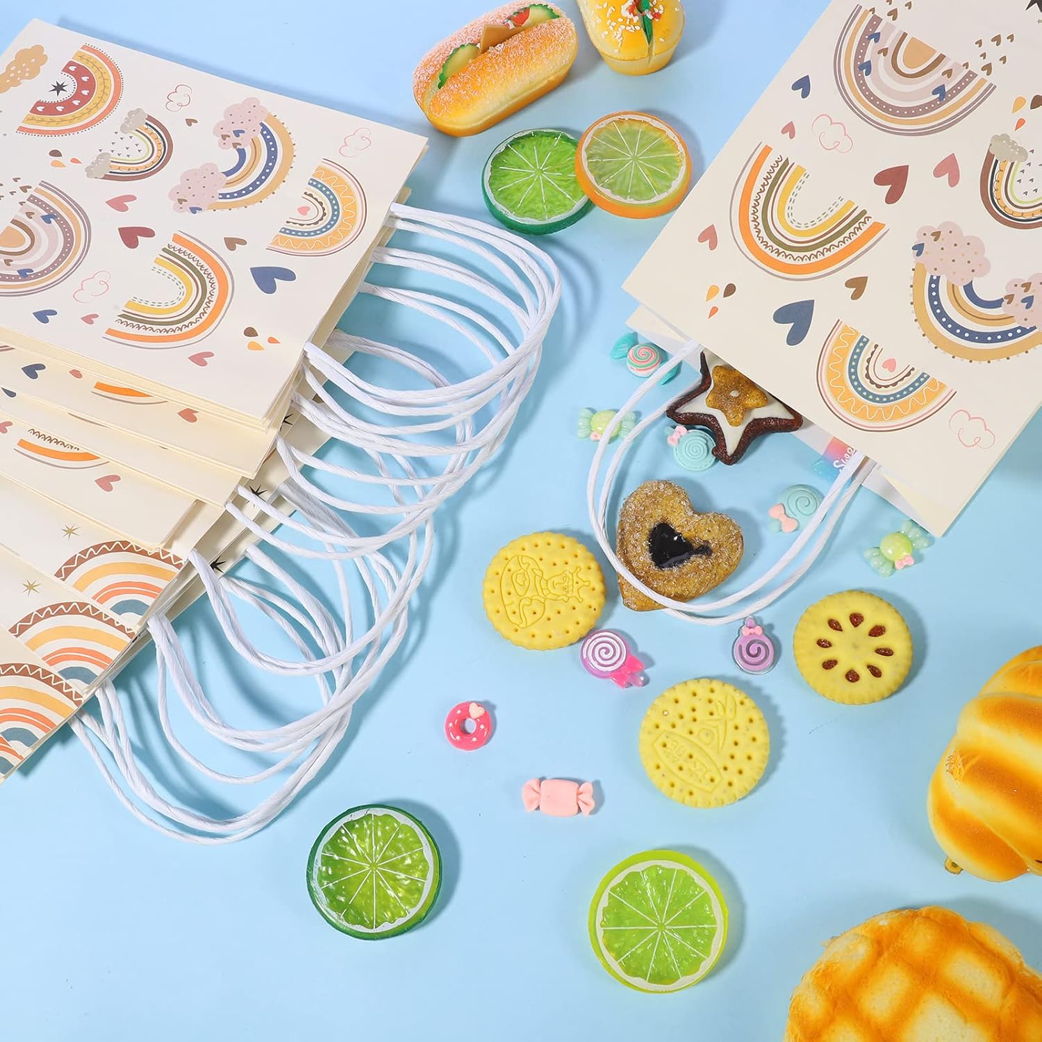 Set di sacchetti regalo - Riceverai 12 sacchetti di carta arcobaleno portatili in 2 tipi di stili e ogni stile ha sacchetti da 6 pezzi; Il design colorato può renderti felice ed entusiasta e puoi condividerlo con i tuoi amici più cari DESIGN ARCOBALENO - Sacchetti regalo personalizzati con design boho arcobaleno, aspetto semplice e design generoso e versatile, che soddisferanno il favore della maggior parte delle ragazze e attireranno facilmente la loro attenzione DIMENSIONE ADATTA - Ogni borsa da festa arcobaleno boho misura circa 21*16 cm, abbastanza spaziosa da contenere bomboniere o piccoli regali come cioccolatini, caramelle, regali, cupcake, biscotti, snack e altre forniture per feste MATERIALE DUREVOLE - La borsa da festa arcobaleno è realizzata di carta resistente con manici resistenti, resistente al colore e di buona qualità. Puoi usarli a lungo e le maniglie possono aiutarti a trasportarli e tenerli facilmente AMPIA APPLICAZIONE - Due diversi design creano una varietà di sacchetti regalo per compleanni, feste, vacanze, Natale, baby shower, anniversari, celebrazioni, San Valentino e altro ancora confezioni regalo
