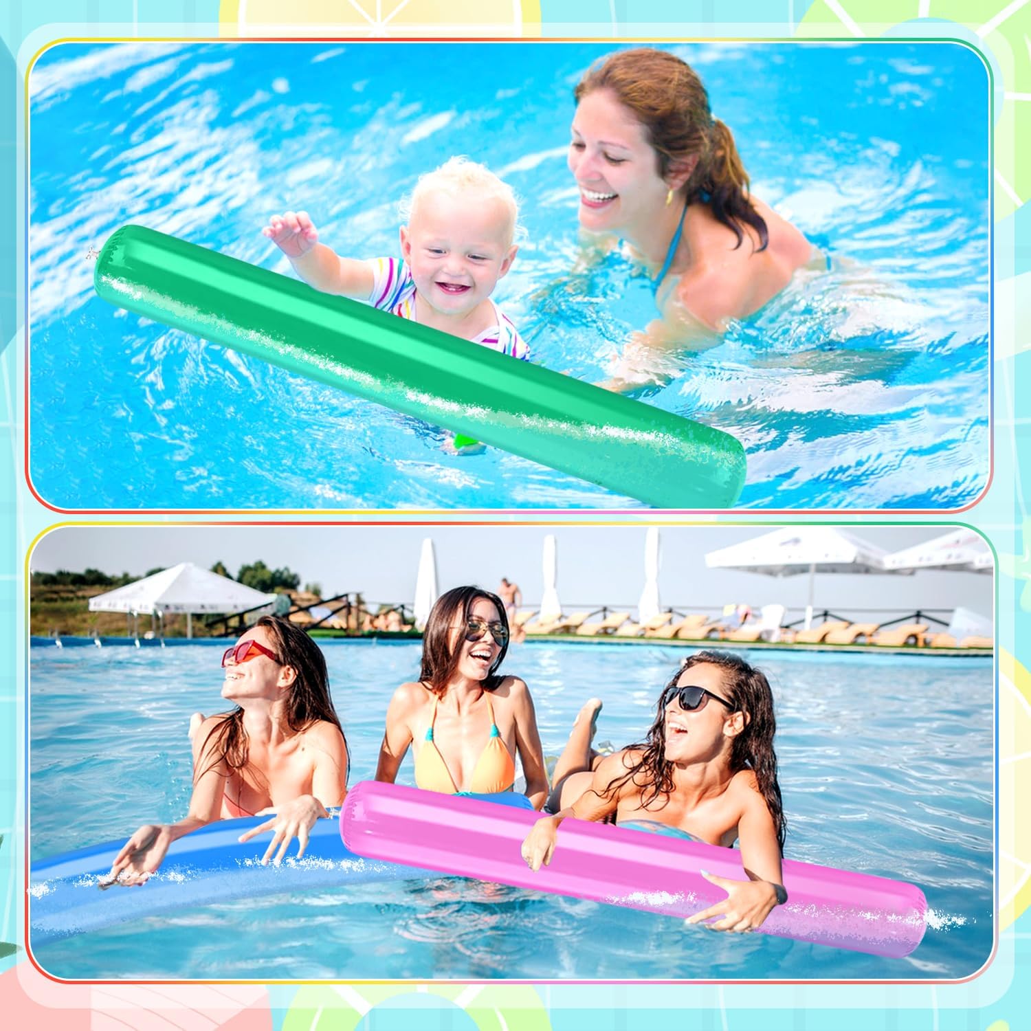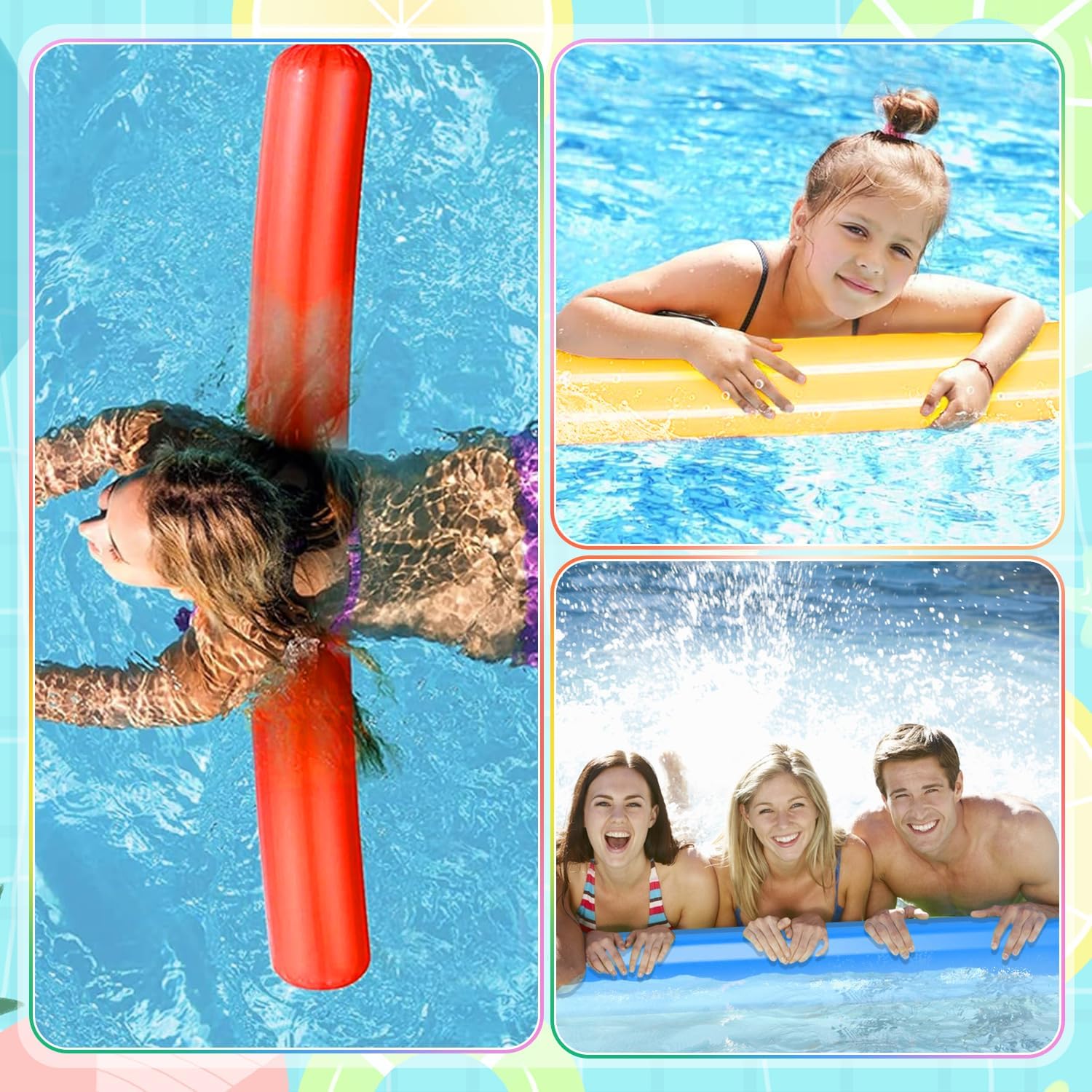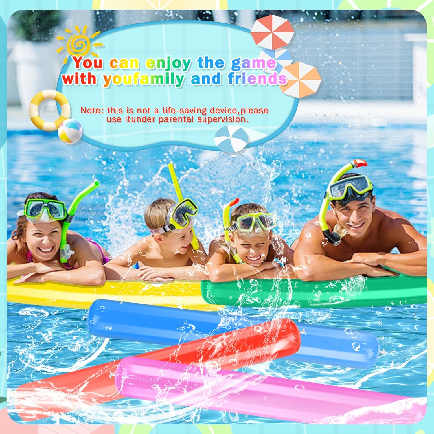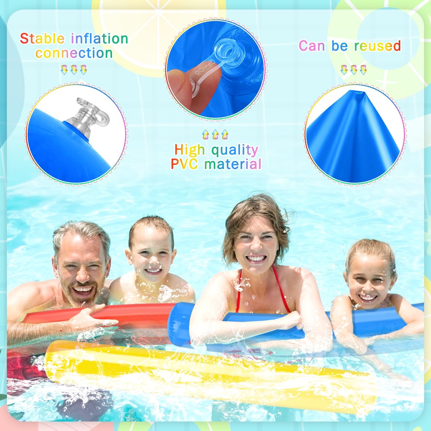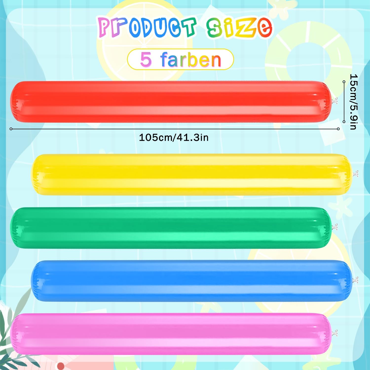【Materiale durevole】Questo Tagliatelle Da Piscina D'acqua realizzato in materiale PVC ad alta densità, che garantisce stabilità e galleggiabilità. Le Noodle Piscina Galleggiante in schiuma sono sigillate con materiale spesso, non facile da rompere o sbiadire, sono gonfiabili e riutilizzabili, il che garantisce un lungo piacere di gioco. 【Giocattolo per acquatiche】Bastone da Nuoto Accessori ottimi per principianti di nuoto, poiché non affondano, Ha una buona galleggiabilità. Bastoncini gonfiabili per piscina non serve solo come ausilio per il nuoto, ma anche come divertente giocattolo in acqua. 【Contenuto della confezione】Quello che riceverai sono 5 pezzi di Bastone Galleggiante per Piscina, ciascuno misura circa 105 x 15 cm. Nei colori rosso, giallo, rosa, blu e verde, la Colori luminosi, quantità è sufficiente per la tua vita quotidiana. 【Facile da usare】Il Gonfiabile Tubo Galleggiante per Piscina può essere gonfiato e sgonfiato rapidamente, scaricare l'aria all'interno, piegarla e inserirla il tuo zaino, non occupare troppo spazio, sarà comodo da usare la prossima volta, facile e consente di risparmiare tempo e fatica. 【Ampiamente usato】Tubo Galleggiante Piscina sono perfetti per piscine, spiagge, feste di compleanno, feste in acqua, parchi acquatici, spiagge. Offrono un'esperienza di gioco piacevole e appagante per te e i tuoi famiglia.