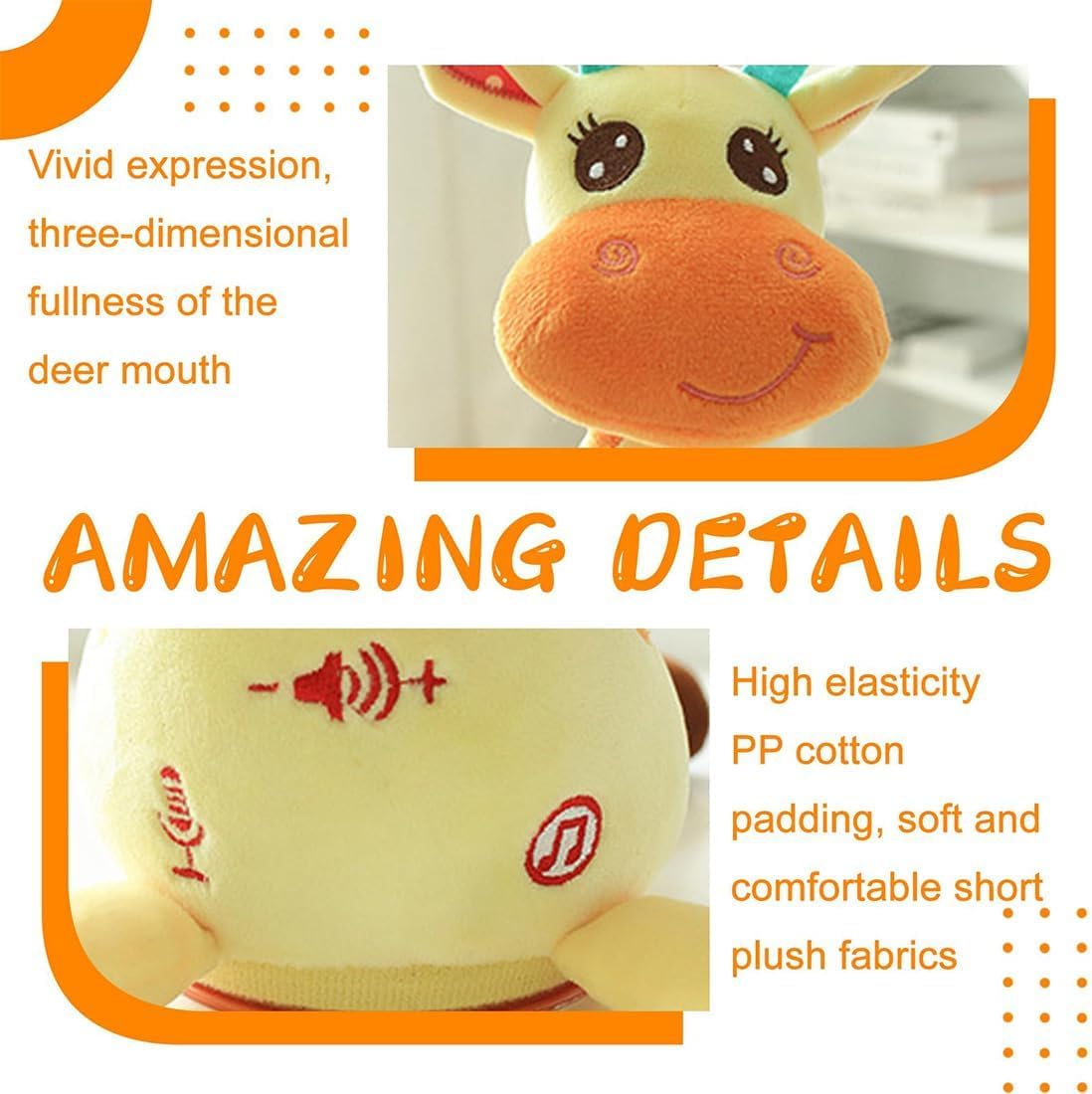 【Design per bambini e portatili】 realizzato in peluche ultra-morbide con le caratteristiche annesse in modo sicuro, questo giocattolo leggero è ideale per divertimento in movimento a casa durante i viaggi o durante le riunioni sociali 【Funzione registrabile personalizzata】 Registra fino a 15 secondi di messaggi o canzoni personalizzati con semplici controlli a pulsanti che creano un giocattolo unico per regalo che porta risate e momenti gioiosi 【Giraffa per balli di volume regolabile】 Il nostro giocattolo peluche giraffe aggiornato presenta livelli di volume personalizzabili, permettendoti di controllare il suono per adattarsi a qualsiasi ambiente mantenendo l'affascinante movimento danzante che delizia i bambini. 【INTERATTIVE DANCING E SANGGI FUNIC】 Questo coinvolgente giocattolo giraffe si delizia con movimenti di danza ritmica canzoni allegre e frasi giocose parlanti che incoraggiano i bambini a imitare e muoversi 【Compagno di divertimento portatile】 Lightweight e facile da trasportare, il giocattolo di peluche giraffe ballando è l'ideale per picnic, date di gioco o intrattenimento da tavolo, tenendo i bambini impegnati ovunque vadano.