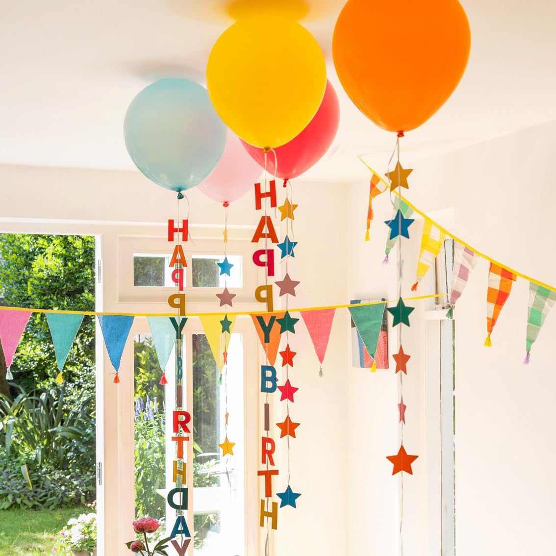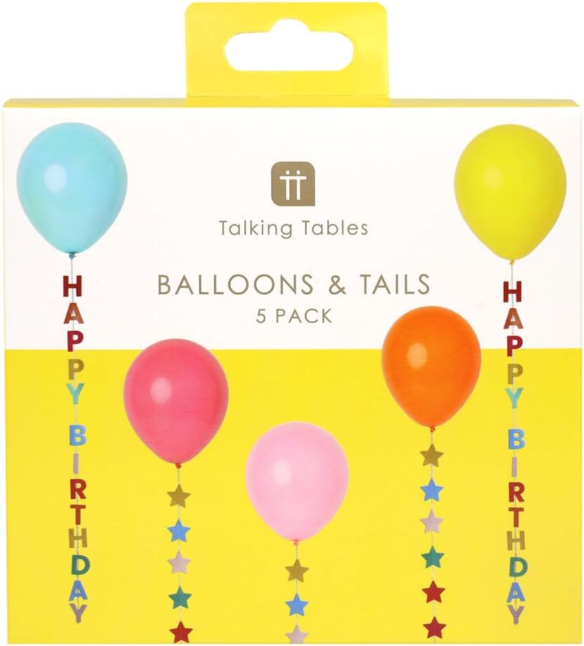 Talking Tables 5 palloncini compleanno con stelle colorate 30 cm con filo da 1 m decorazioni pendenti colori pastello giallo rosa blu arancione palloncino da soffitto confezione da 5, le code sono lunghe 1 metro. Questi palloncini dai colori vivaci sono perfetti per qualsiasi festa, a casa, in un ingresso, in un parco o in una sala da pranzo. Disponibili in confezioni da cinque, sono caratterizzati da colori allegri: giallo, fucsia, rosa pastello, arancione e blu con code che formano la parola "Happy Birthday" o a forma di stella. ECO: TUTTI i prodotti Talking Tables sono progettati per essere riutilizzabili o riciclabili a casa, compreso il prodotto e l'imballaggio! QUALITÀ - I nostri prodotti sono realizzati secondo i più alti standard di qualità e sono venduti in molti negozi premium nel Regno Unito e all'estero.