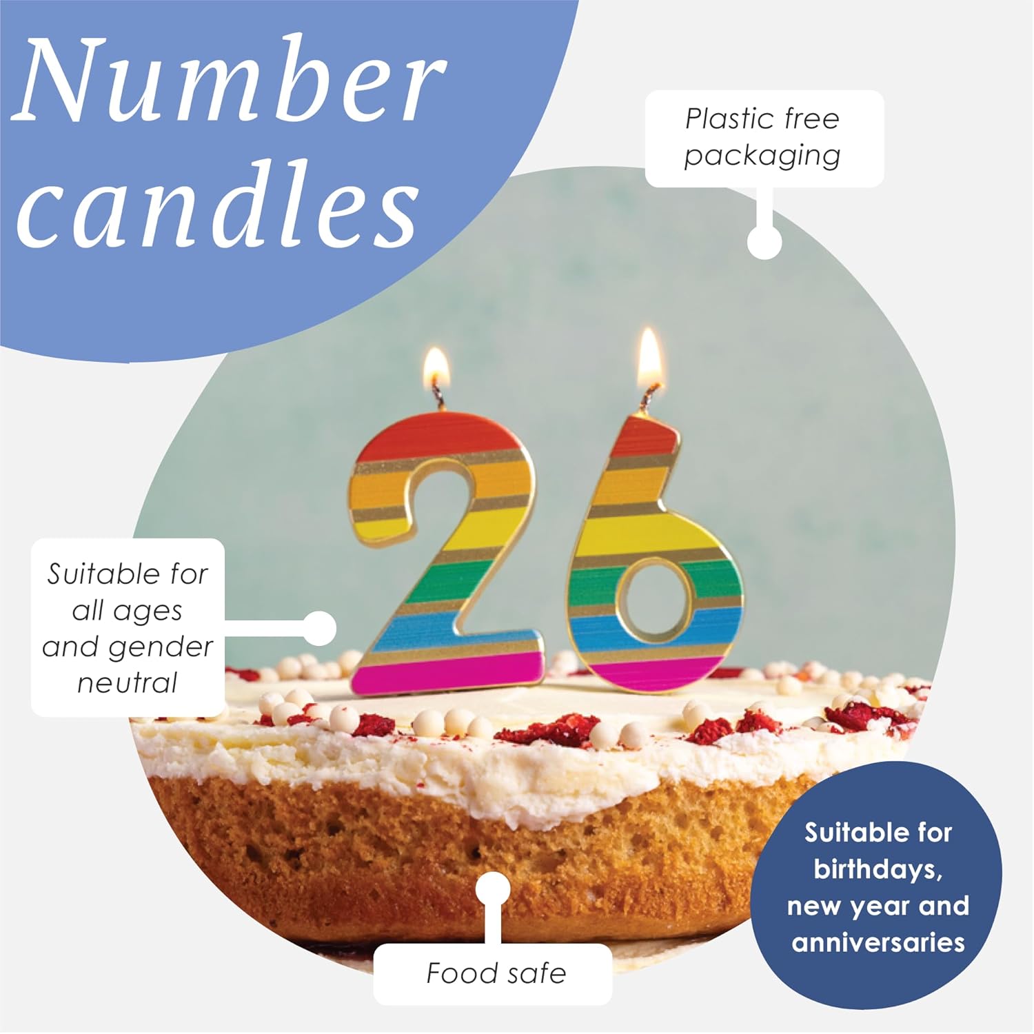 Talking Tables Rainbow Number 2 Candela di compleanno per decorazione torta Candele digitali di qualità premium Festa di compleanno Età traguardo Altezza 5,5 cm Imballaggio riciclato Aggiungi un tocco luminoso alle torte di compleanno dei tuoi ospiti con la nostra nuova candela arcobaleno numero 2. Progettata per portare colore ed entusiasmo a qualsiasi festa di compleanno, è perfetta per rendere i momenti speciali ancora più memorabili. I numeri multicolori e il design a strisce lo rendono adatto a torte di compleanno per persone di tutte le età e di tutti i sessi. Set da 1 - Altezza 5,5 cm ECO: TUTTI i prodotti Talking Tables sono progettati per essere riutilizzabili o riciclabili in casa, compresi il prodotto e l'imballaggio! QUALITÀ - I nostri prodotti sono realizzati secondo i più elevati standard qualitativi e sono venduti in molti negozi di lusso nel Regno Unito e all'estero.
