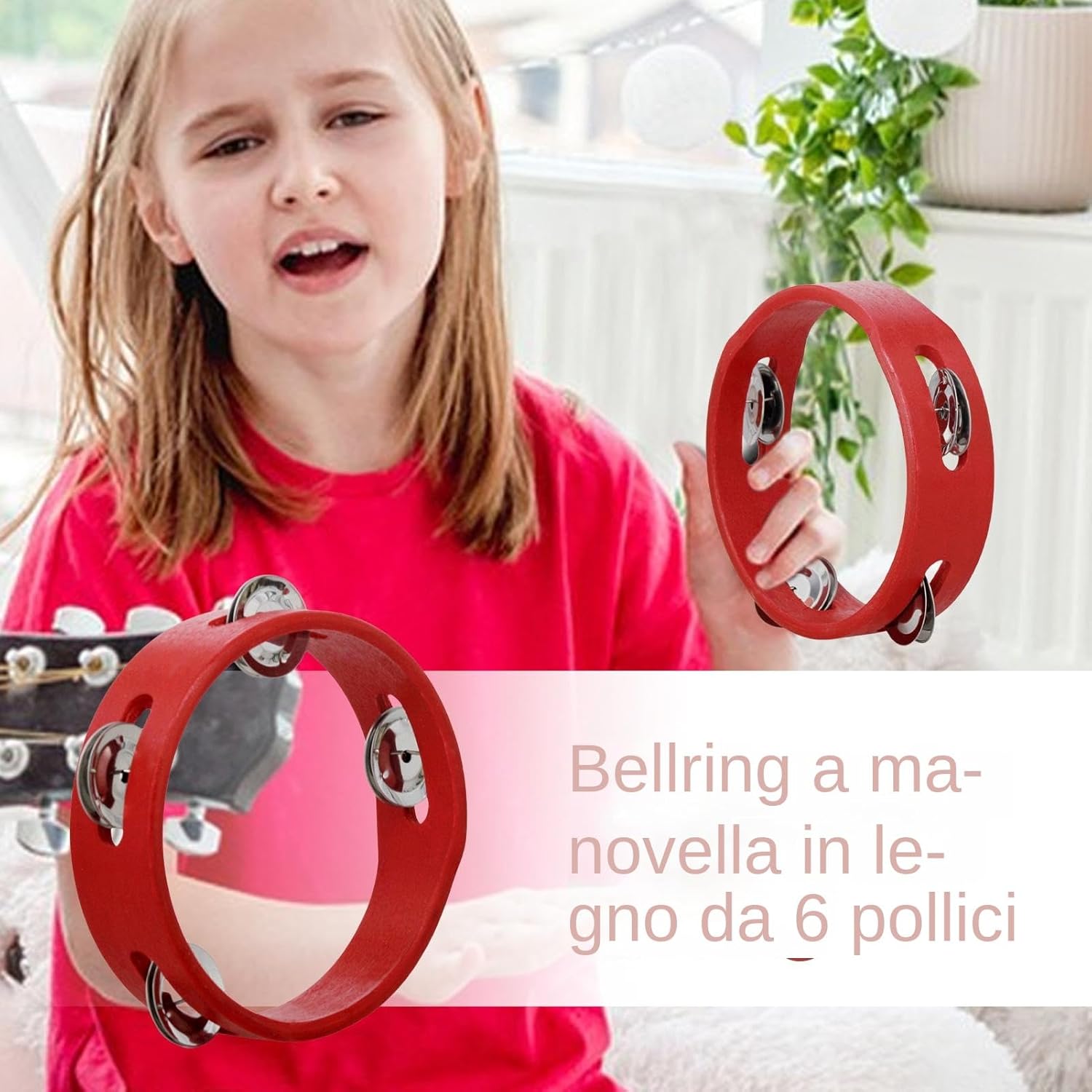 Divertimento musicale: questo tamburello in metallo, con il suo design divertente, produce un suono tintinnante melodioso che può aggiungere suoni ricchi alle tue scene musicali, migliorando ogni performance. Ampia gamma di usi: incorporando questo tamburello in concerti, giocattoli e altro ancora, i bambini possono migliorare la loro esperienza musicale aggiungendo divertimento giocoso a feste e balli. Realizzato con perizia: il nostro tamburello per bambini è realizzato artigianalmente con legno di qualità e presenta campanelle in metallo liscio, creando un suono chiaro e piacevole che catturerà l'immaginazione musicale di ogni bambino. Leggero e portatile: con un diametro di circa 6 pollici, questo tamburello è facile da tenere e trasportare, consentendo ai bambini di creare musica ovunque vadano. Multiuso: accendi l'amore di tuo figlio per la musica con il nostro tamburello colorato. per i bambini dai 3 anni in su, è un eccellente supporto didattico per lezioni di musica e momenti di gioco a casa o a scuola.