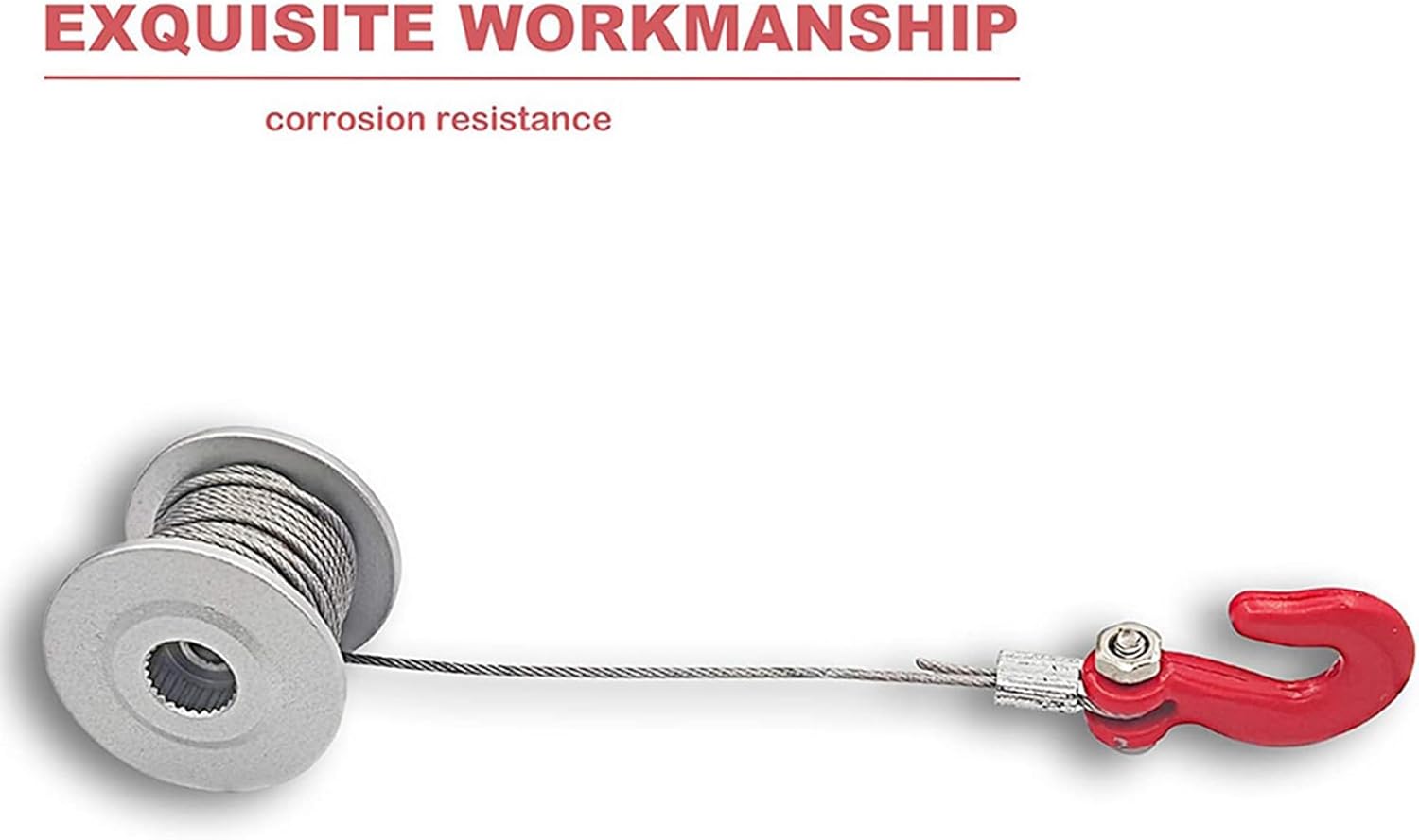 [Compatibile con] Adatto per auto cingolata 1/10 RC TRX4 SCX10 90046 D90 D110 MST. [Materiale Premium] Realizzato in lega di alluminio (bobina) e acciaio (filo da 2 m), elevata tenacità, non facile da deformare. [Facile da usare] Il verricello RC è leggero, comodo da trasportare e facile da installare, senza deformazioni dopo un uso a lungo termine. [Prestazioni perfette] La lavorazione squisita e i dettagli di simulazione rendono il tuo crawler RC più realistico.