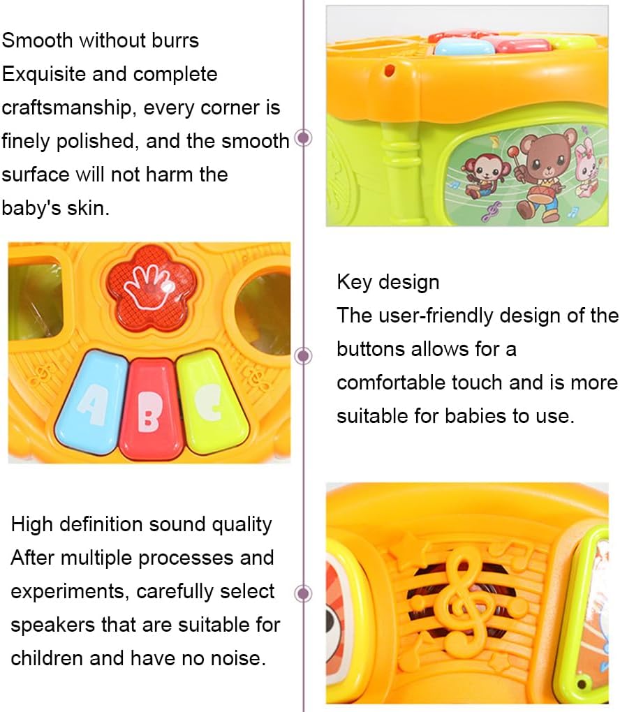 Ingredienti sicuri: realizzati con ABS atossico e inodore, garantendo la sicurezza del tuo bambino durante il gioco Artigianato squisito: realizzato con cura con linee morbide e bordi arrotondati, prevenendo qualsiasi danno alla pelle delicata del tuo bambino Giocattolo multifunzionale: questo selezionatore di forme con funzionamento wireless funge anche da strumento musicale, offrendo ore di intrattenimento educativo per il tuo piccolo Coordinazione -mano: aiuta il tuo bambino a sviluppare le capacità di coordinazione -mano con questo giocattolo educativo per selezionare le forme del bambino Educazione precoce: questo giocattolo a tamburo alimentato a batteria introduce il tuo bambino a varie forme, stimolando il suo percorso di apprendimento precoce