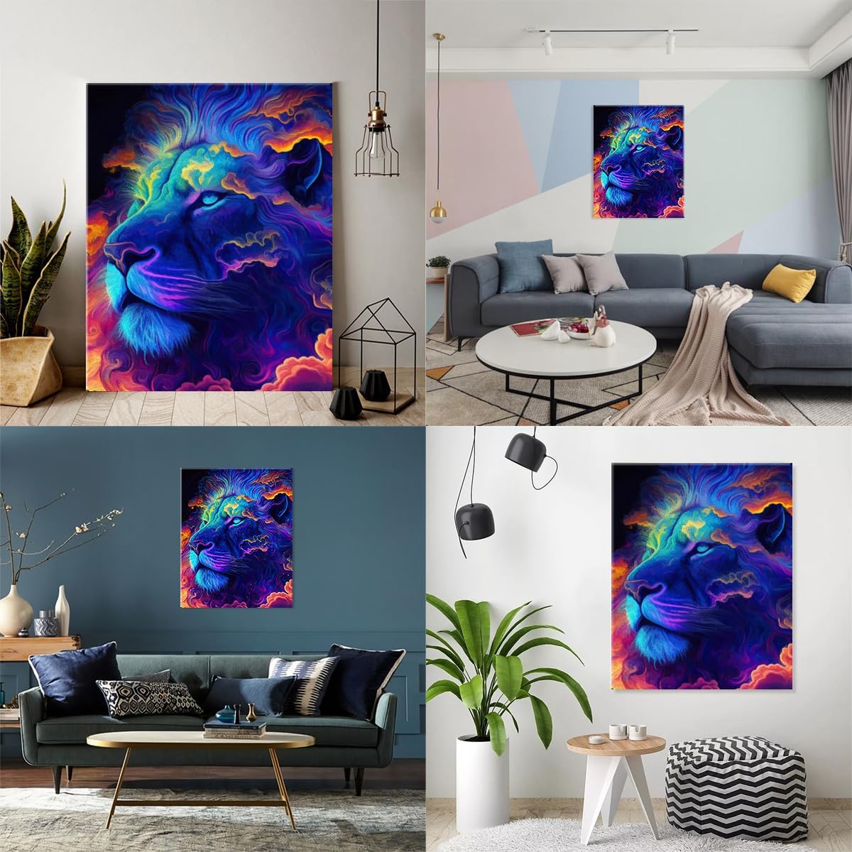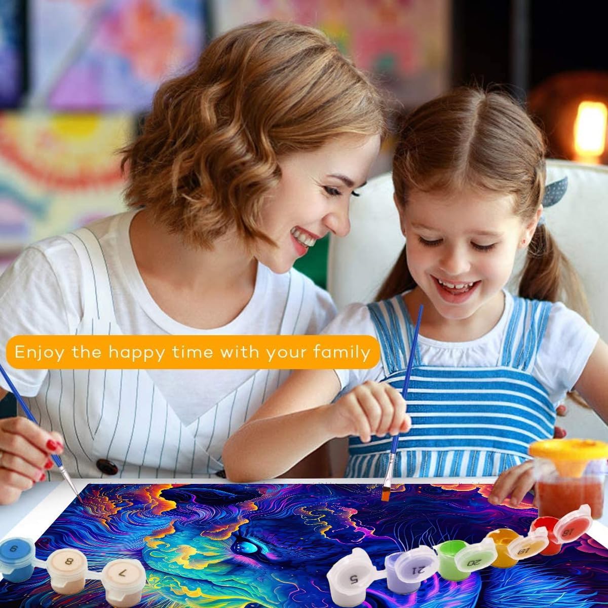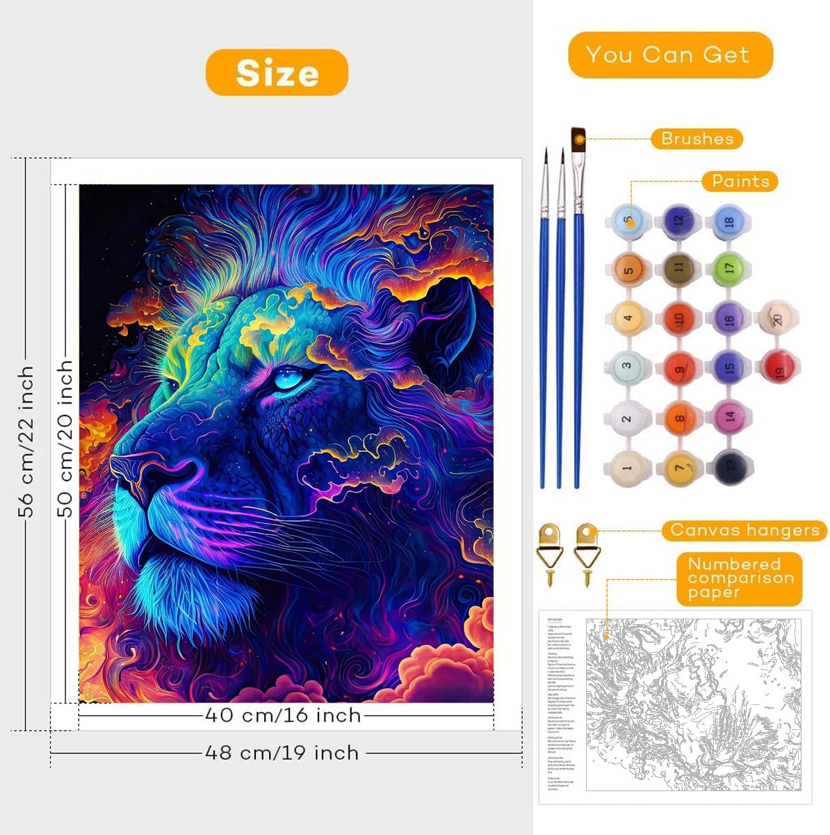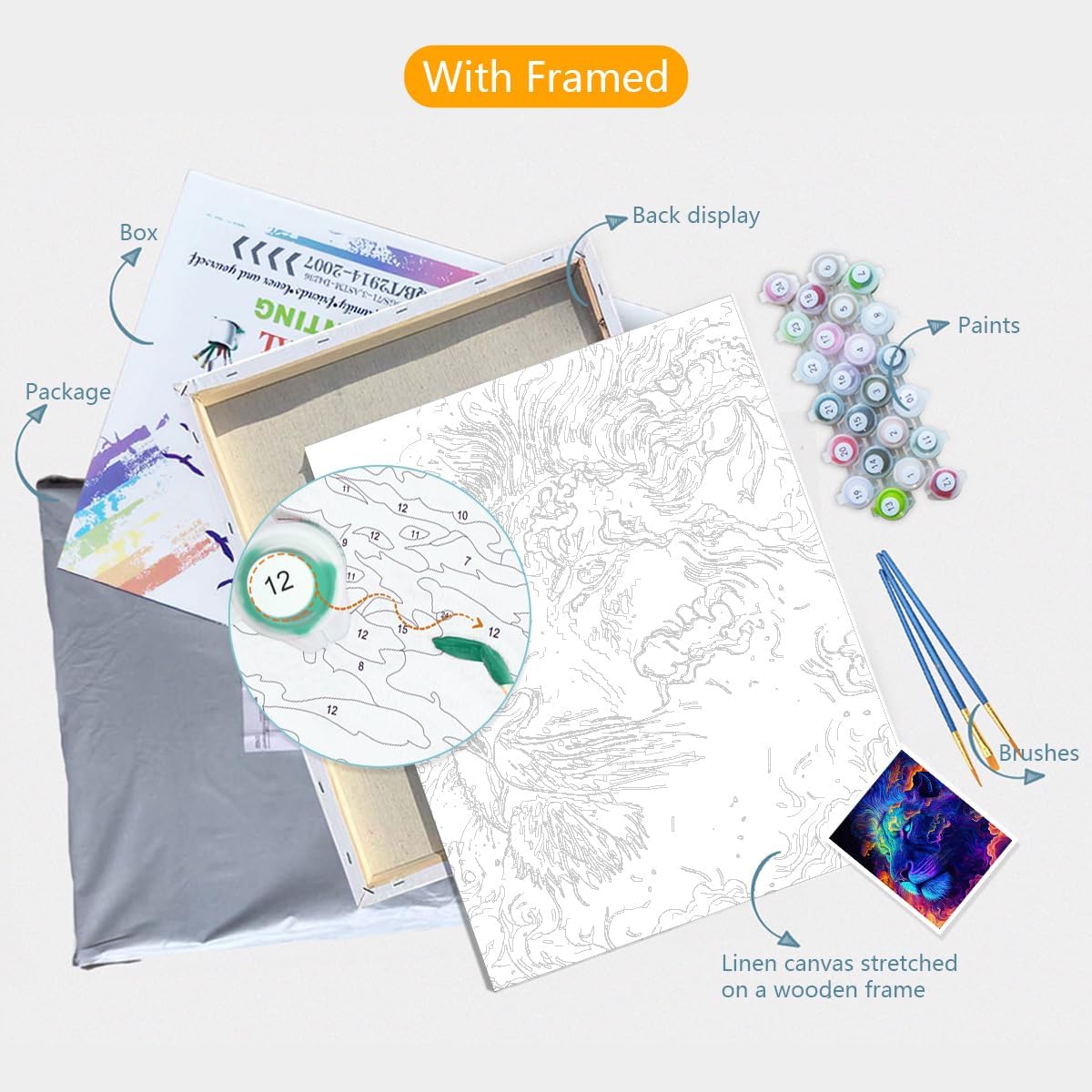 TANGFEIY Dipinto ad olio, kit di pittura con numeri, leone neon, pittura con numeri, fai da te per adulti e bambini, con pennelli e vernice acrilica su tela, progetto artigianale, cornice fai da te