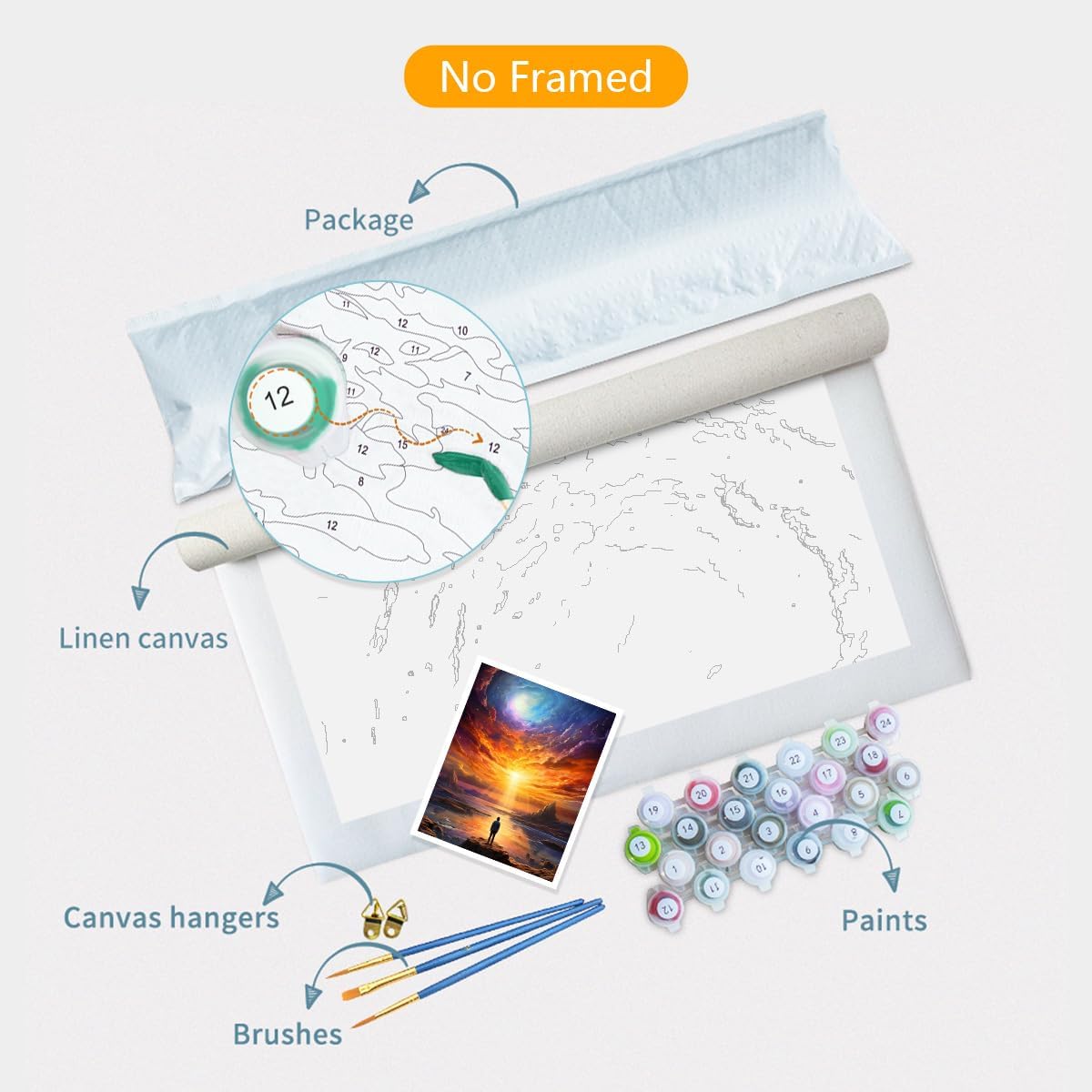 Set di pittura a olio con i numeri: include una tela 16 x 12 (senza cornice), 3 pennelli, 1 set di colori acrilici e un'immagine campione. Abbiamo preparato tutto, aspettando solo che tu dipinga la tela. Materiali sani: i nostri colori a olio con numeri sono colori acrilici, atossici e innocui, sicuri per bambini o adulti. La tela è realizzata in puro cotone, con un buon assorbimento d'acqua e traspirabilità, facile da riporre a lungo. Fondamento zero: la pittura a olio con numeri è adatta a tutti i livelli di abilità, sia che tu sia un adulto, bambino o un principiante. Non hai bisogno di alcuna abilità pittorica per riempire il colore in base al numero. Libera la tua creatività interiore e divertiti. Non c'è bisogno di mescolare pigmenti: questo dipinto a olio con numeri per adulti utilizza pigmenti acrilici sicuri, che possono essere colorati direttamente senza aggiungere acqua per mescolare. Quando si utilizza accidentalmente il colore sbagliato, basta coprirlo con il pigmento di colore corretto. Servizio post-vendita: Se avete problemi con l'opera d'arte della pittura a olio che avete ricevuto, vi preghiamo di contattarci via e-mail in tempo, risolveremo il vostro problema entro 24 ore, quindi vi preghiamo di essere certi di acquistare.
