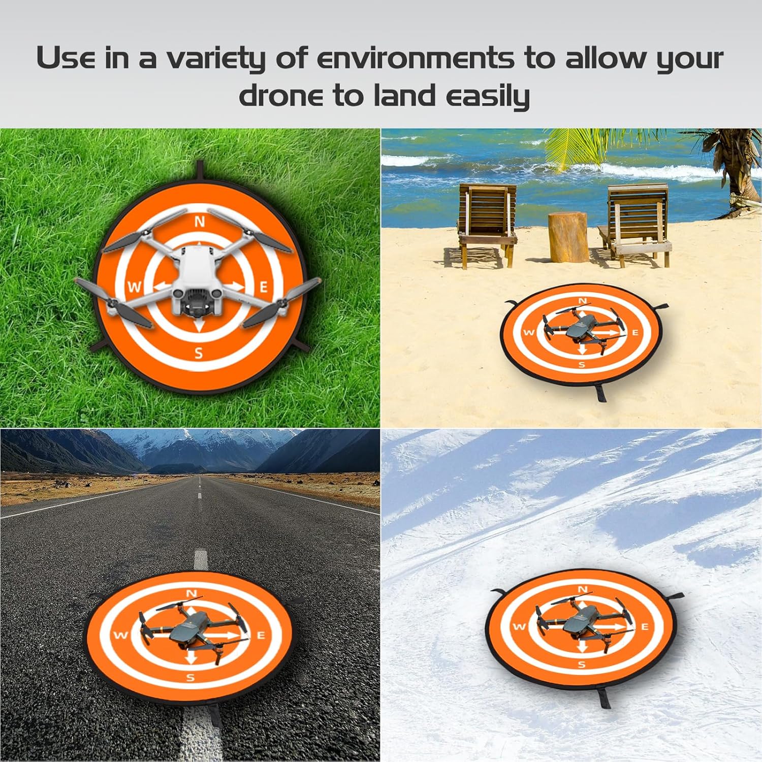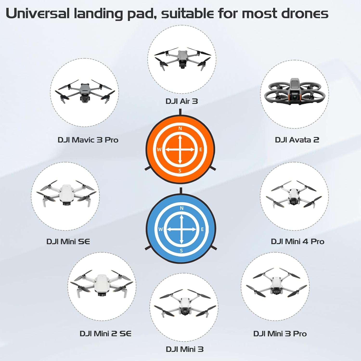 🎯【Compatibilità Universale】 Adatto alla maggior parte dei droni sul mercato, inclusi DJI Mini 2/2 SE/4K/FPV/Avata 2/Air 2S/Mavic 3 Pro/Mavic Air 2/Spark/Mavic Air/Mavic 2 Pro/Mavic Mini/Mavic 2/Zoom/Mavic 3, Parrot, Holy Stone e altre marche di droni. 🎯【Design Pieghevole e Portatile】 La piattaforma di atterraggio del drone è quadrata, leggera e pieghevole, dimensioni aperte 55 cm, piegata solo 20 cm. I quattro angoli sono dotati di sacchetti per la polvere e possono essere appesi allo zaino o alla parete per un comodo trasporto. 🎯【Sicuro e Stabile】 La piattaforma di atterraggio UAV è ideale per volare su superfici speciali per prevenire interferenze esterne durante il decollo o l'atterraggio. Può atterrare e decollare in sicurezza su spiagge, neve, erba, rocce, ovunque. 🎯【Materiali di Alta Qualità】 Realizzato in pelle PU, offre una lavorazione artigianale, una durata e una protezione solare uniche, con caratteristiche impermeabili e antipolvere particolarmente adatte all'uso esterno. 🎯【Bifacciale e Due Colori】 La piattaforma di atterraggio del drone ha due facce di colori diversi (arancione e blu) per evidenziare la posizione della piattaforma di atterraggio, potendo essere utilizzata anche di notte per l'individuazione rapida della posizione di decollo o atterraggio del drone.
