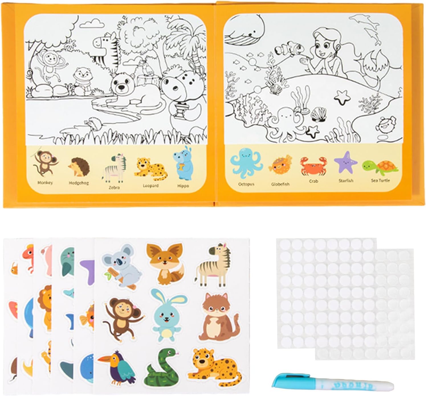 Tappetino Sviluppo Sensoriale: Progettato per stimolare la creatività, il tappetino magico ad acqua utilizza accattivanti inclusi animali e veicoli, promuovendo l'immaginazione e la crescita cognitiva nella prima infanzia, offrendo un modo divertente per i bambini di imparare attraverso l'esplorazione pratica e il gioco sensoriale, adatto per uso domestico o scolastico. Intrattenimento di Lunga Durata: Combinando materiali durevoli e adesivi riposizionabili, il tappetino per disegnare con acqua offre un intrattenimento prolungato fornendo infinite opportunità per il gioco immaginativo, ideale per i viaggi, i momenti di quiete o le attività di familiare interattive a casa, assicurando ore di divertimento sicuro e coinvolgente per i bambini. Facile e Intuitivo da Usare: Progettato con materiale in morbido velluto e bordi a strappo sicuri, questo tappeto magico acqua incoraggia la creatività a base d'acqua attraverso effetti di rivelazione incantevoli, asciugandosi rapidamente per un riuso continuo mentre coinvolge le giovani menti durante i viaggi in macchina o le pause di studio, garantendo un'esperienza di gioco educativa e piacevole per bambini. Esperienza di Gioco Coinvolgente: Il tappetino da disegno ad acqua supporta la coordinazione occhio-mano e affina la percezione dei colori integrando lezioni giocose su animali e trasporti, che catturano l'attenzione e un'atmosfera di apprendimento rilassante durante l'uso ricreativo, offrendo un'esperienza educativa e calmante per i bambini in diverse situazioni. Design per Bambini: Con una penna ad acqua progettata specificamente per le mani dei bambini, facile da tenere e operare, questo tappeto da disegno ad acqua permette ai piccoli di riempire la punta, aggiungere acqua e richiudere con semplicità, garantendo ore di divertimento artistico senza versamenti o macchie in qualsiasi setting, come a casa, in giardino o durante le attività ricreative.